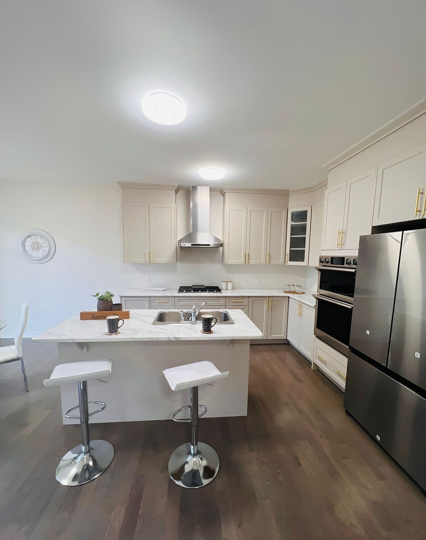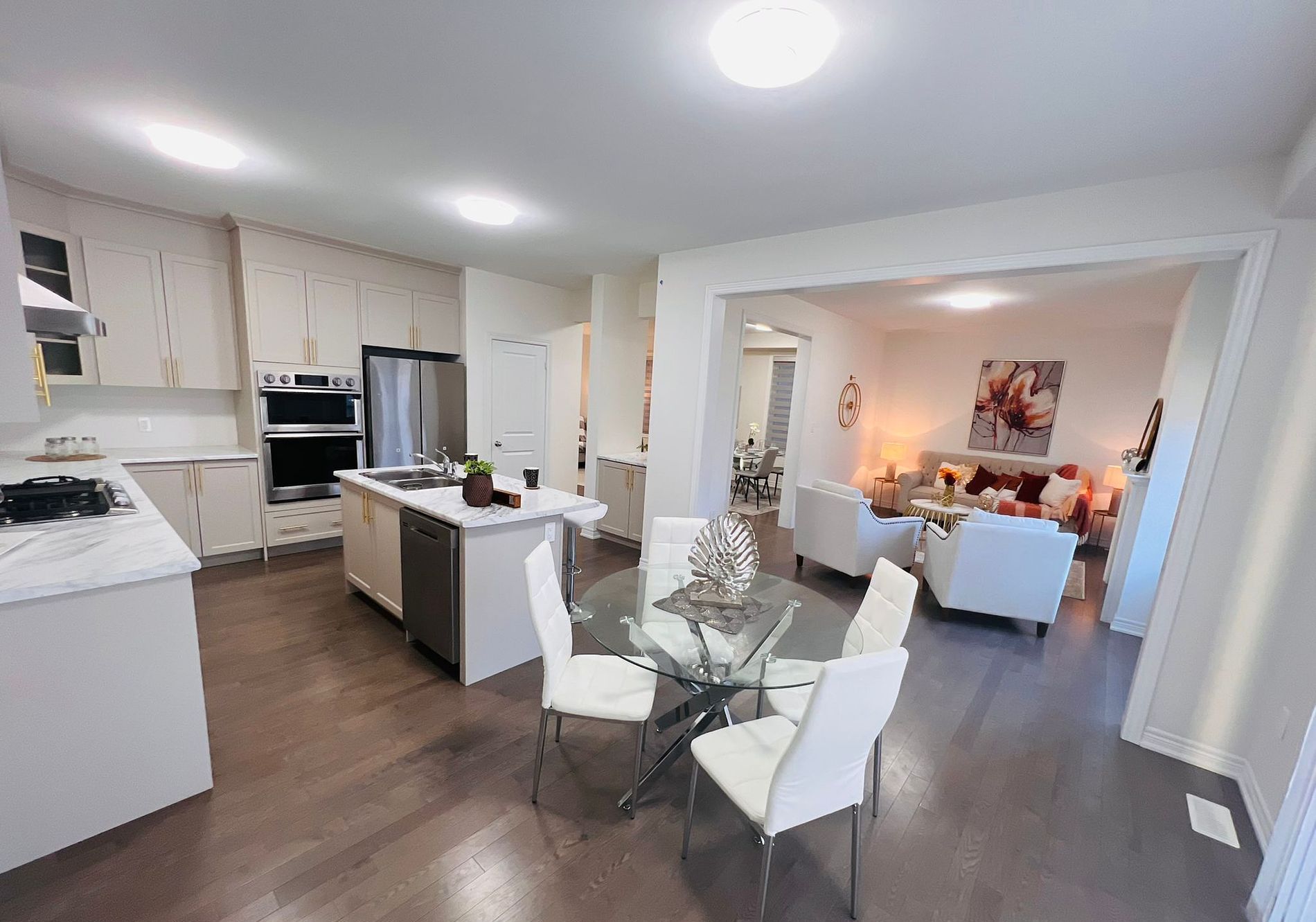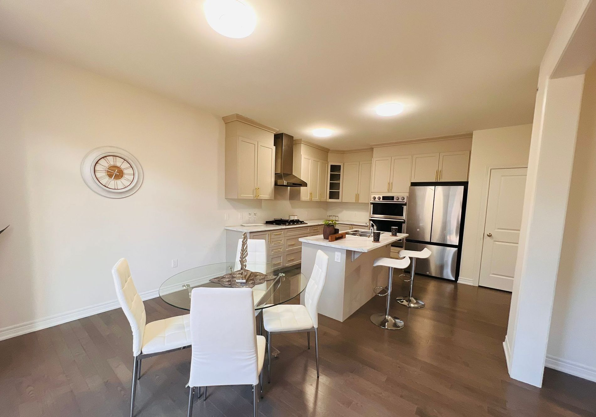 • Modern kitchen with stainless steel appliances and a functional island.