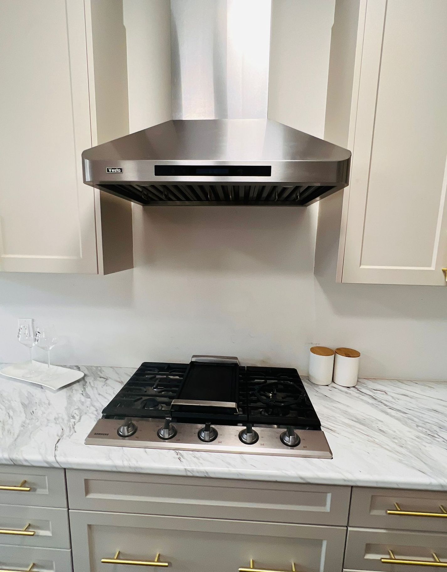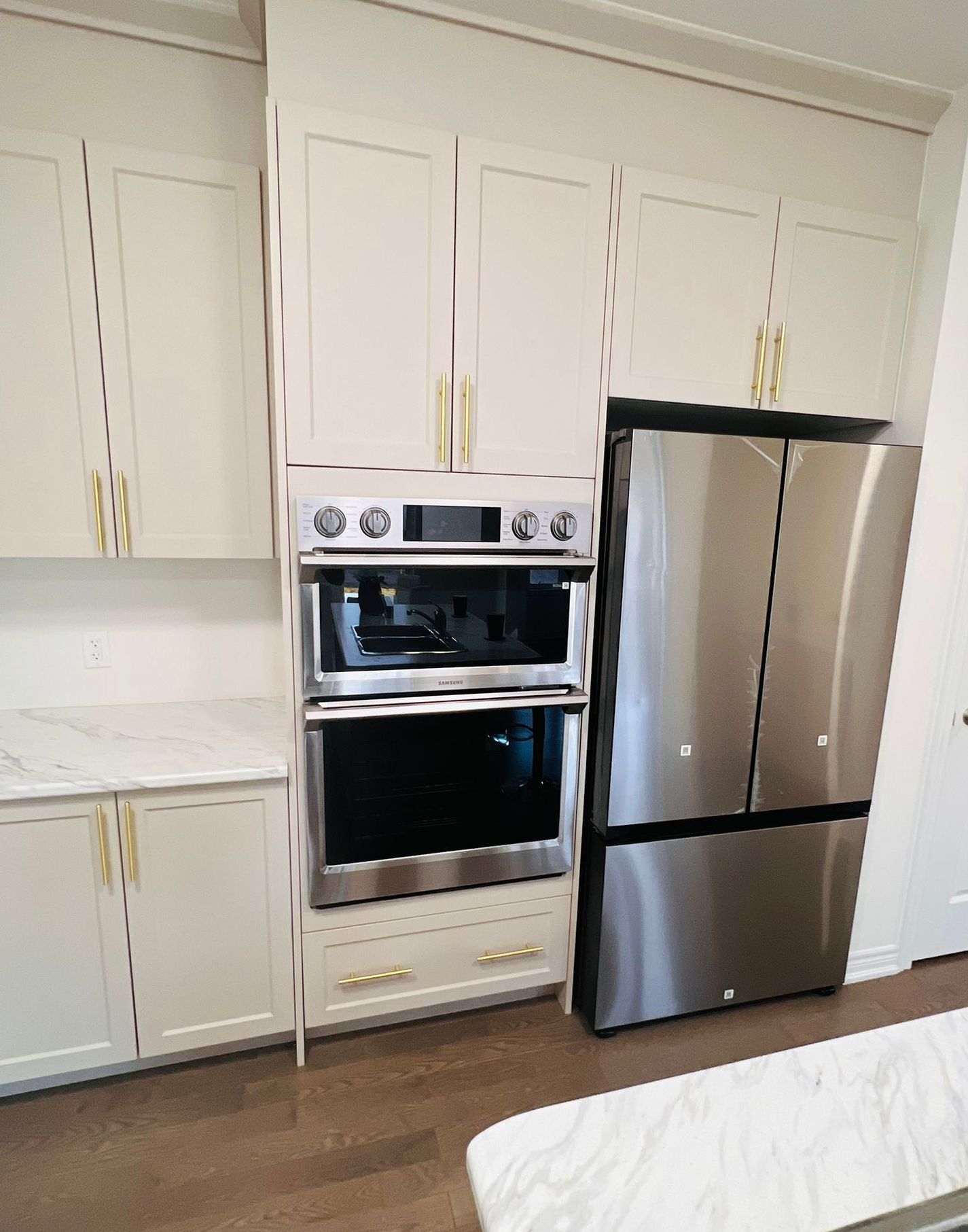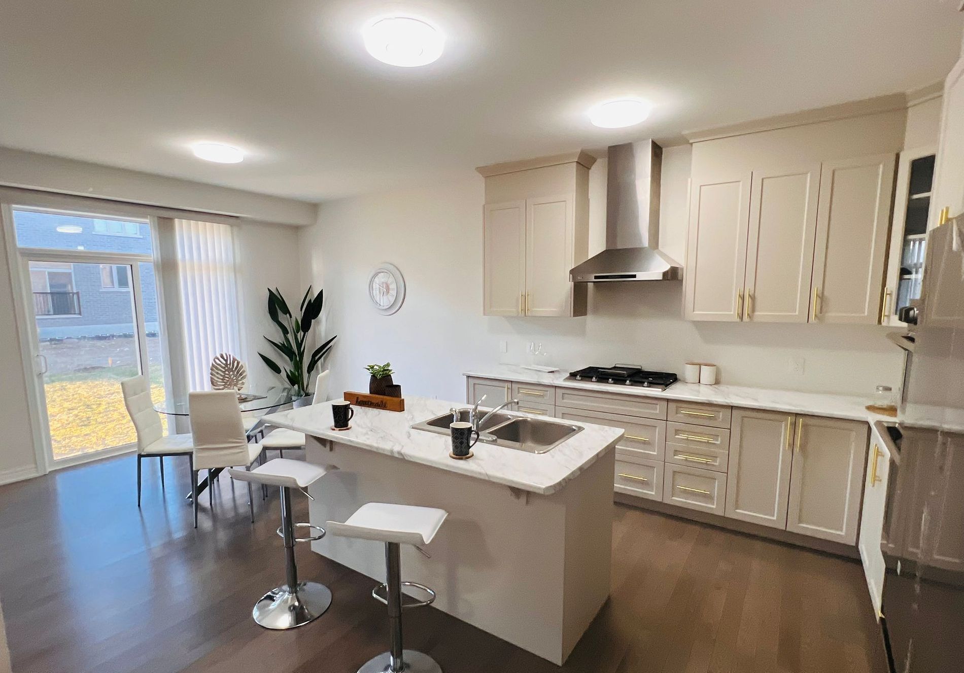 • Modern kitchen with stainless steel appliances and a functional island.