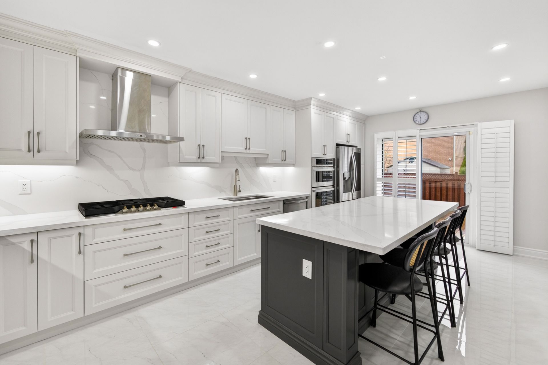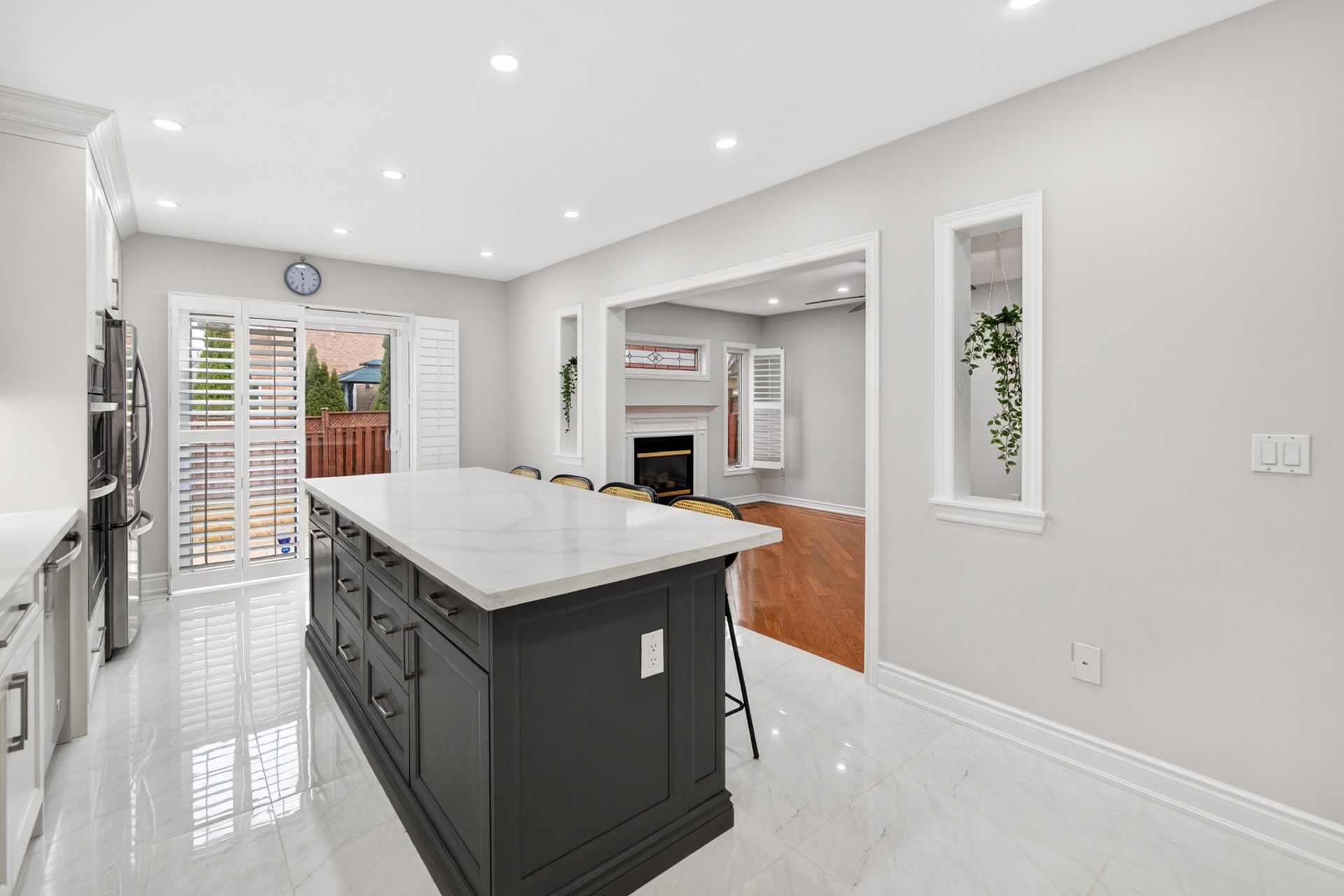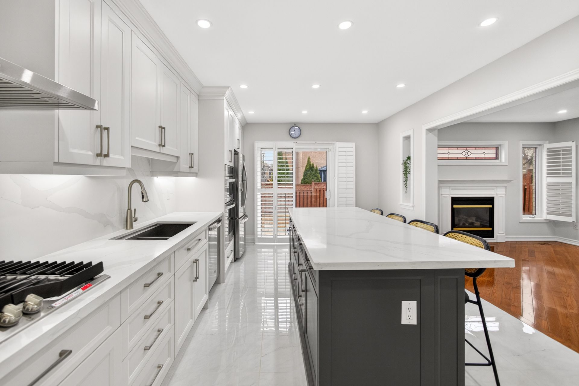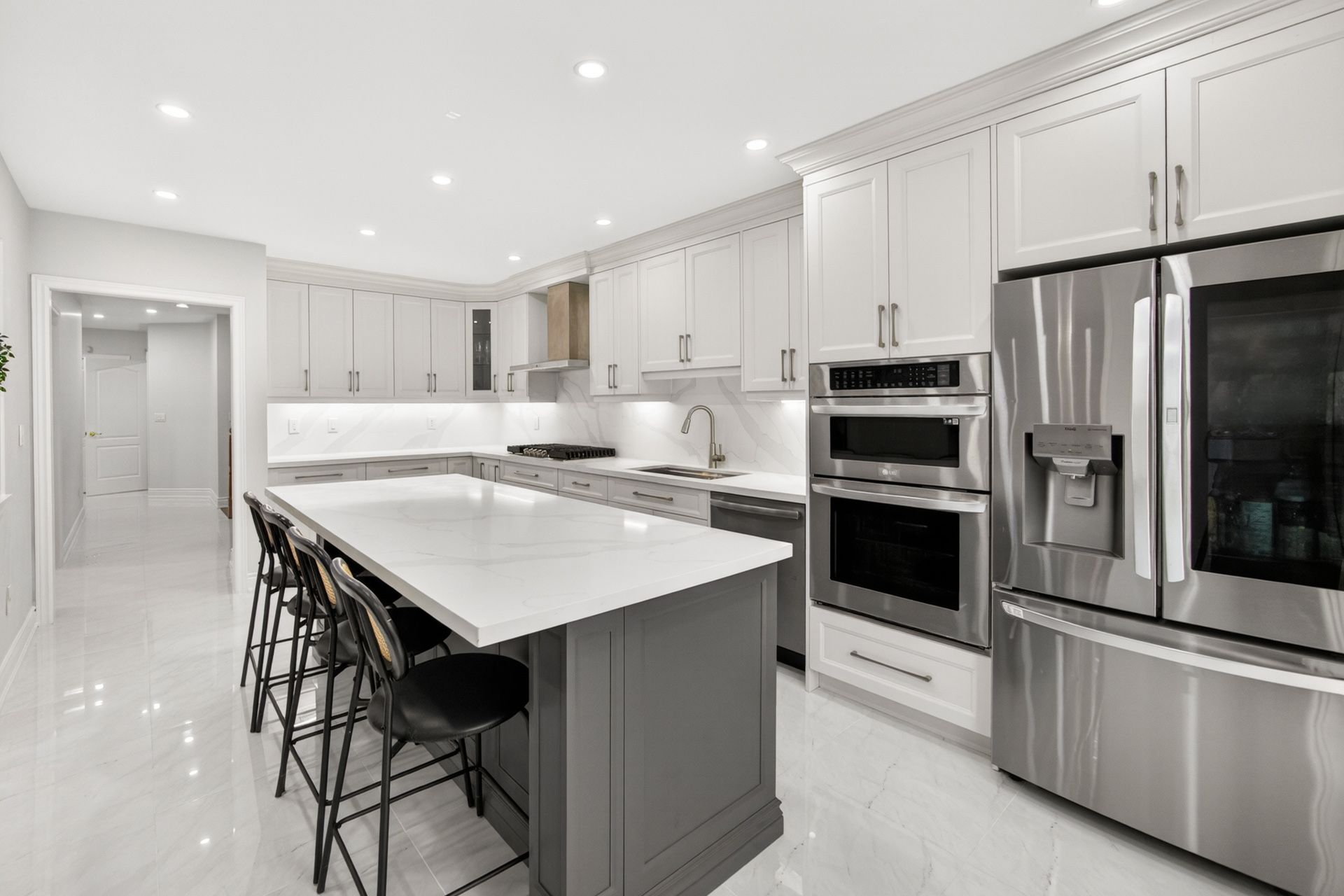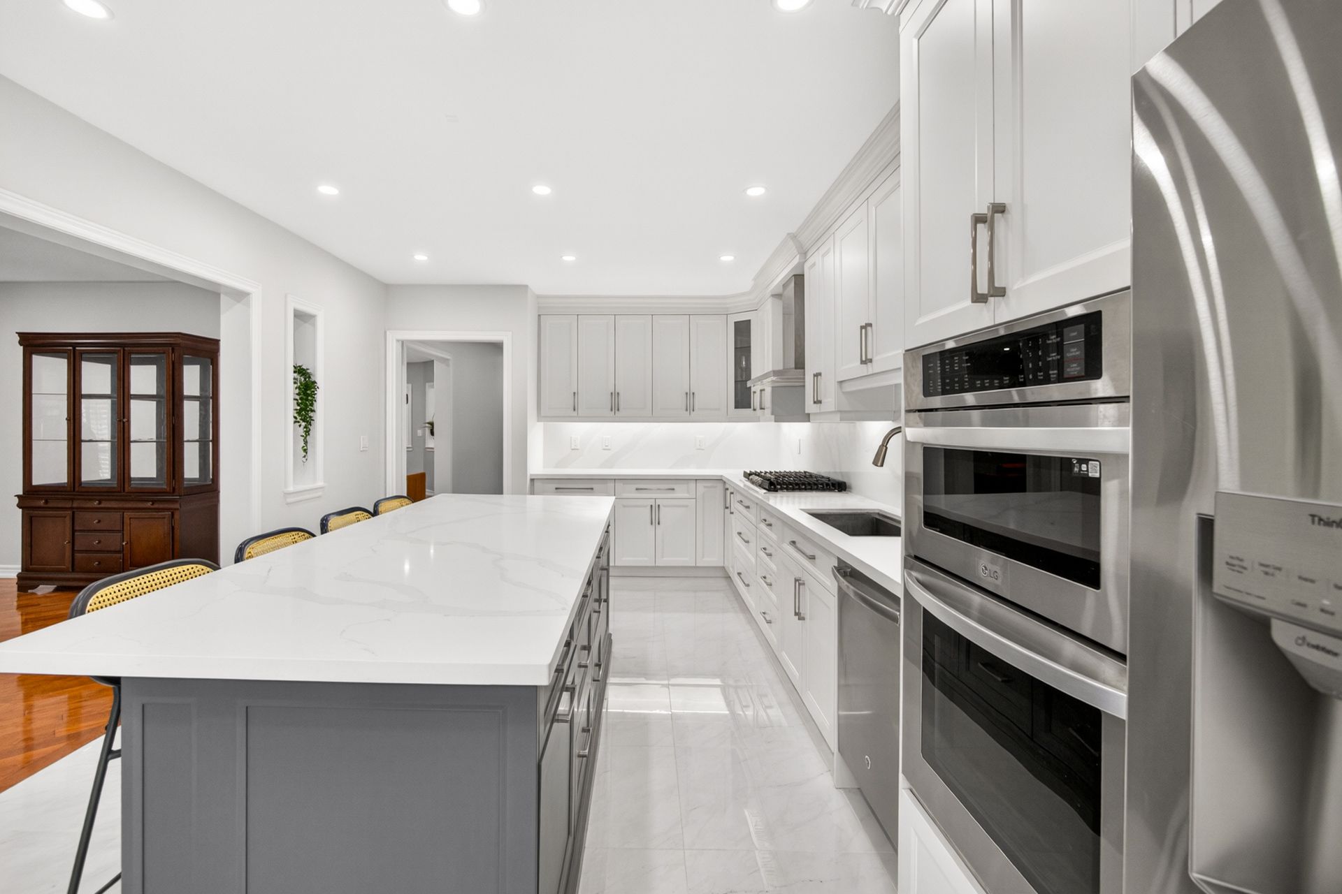 • Bright and spacious kitchen features modern appliances and a generous island.
