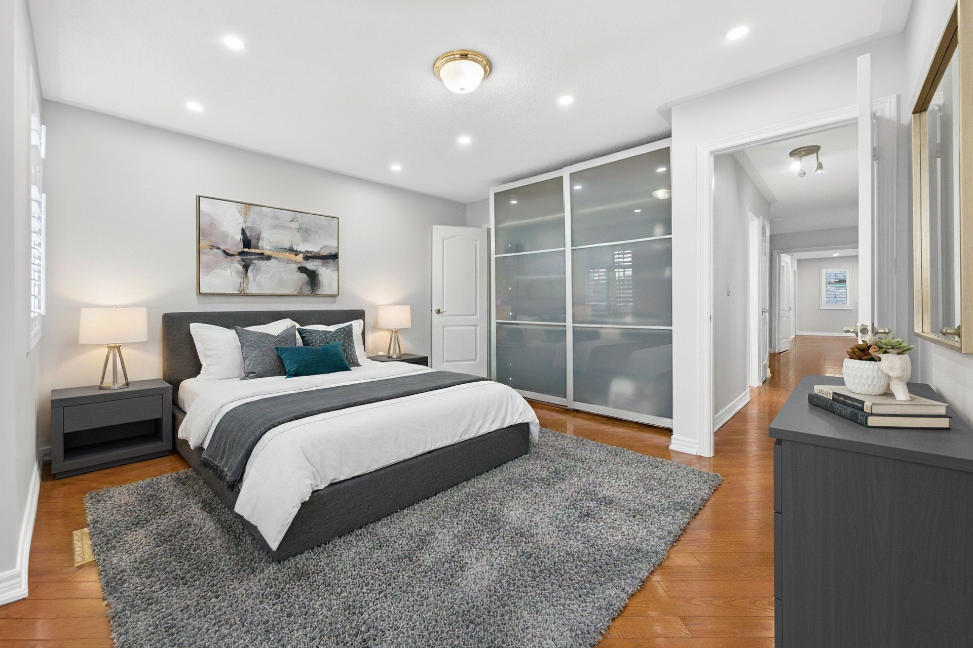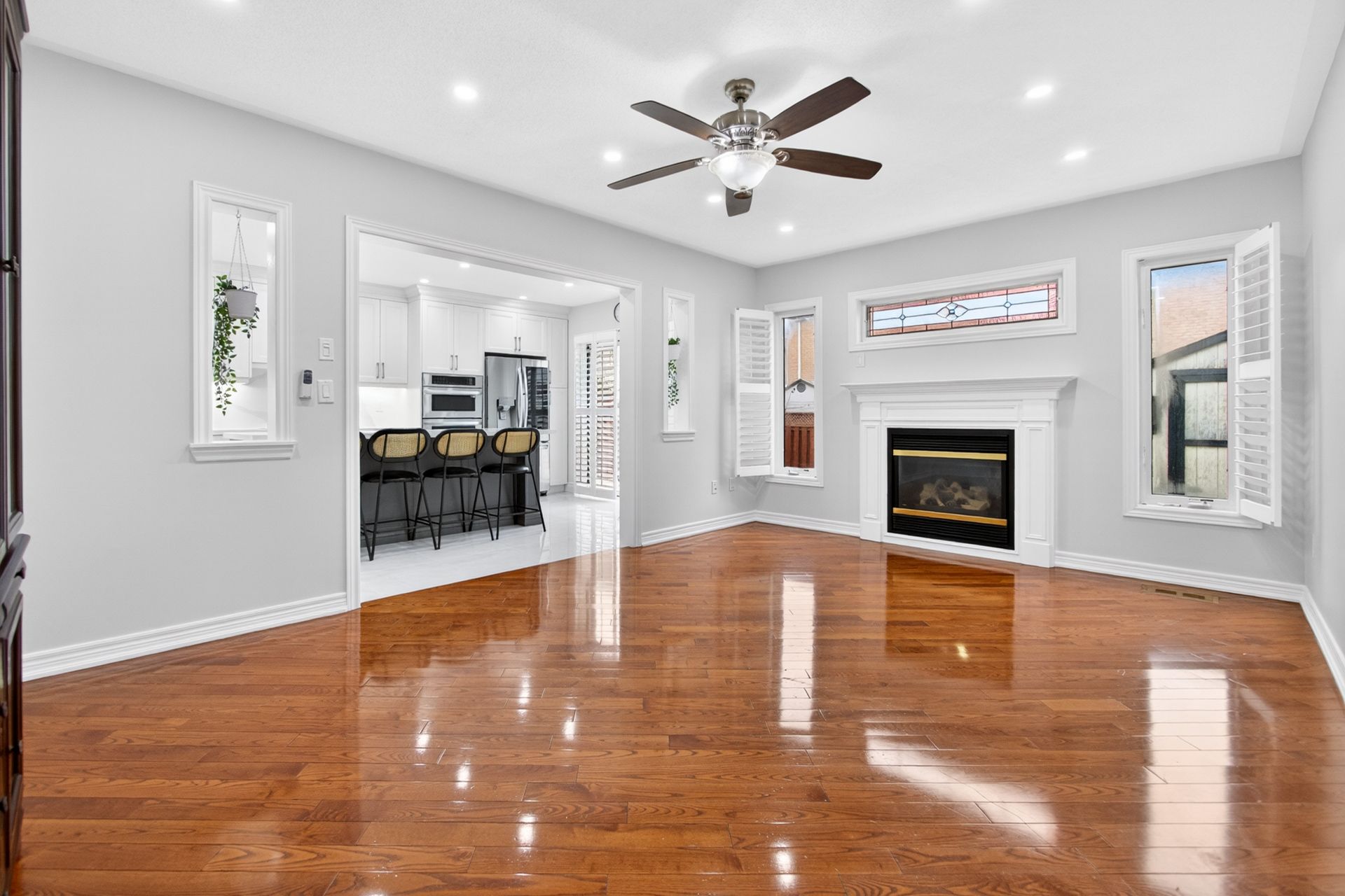 Exquisitely designed this four-bedroom meadowvale village home showcases elevated finishes and stunning upgrades that extend from its refined interiors! A grand double-door entrance opens to an impressive foyer. Hardwood flooring runs throughout the house, complemented by pot lights, and a hardwood & staircase. Arched windows with transoms and impressive ceiling height define the formal living room, finished with california shutters, while the family room is anchored bya gas fireplace. The upgraded kitchen (2023) features wall oven & gas stove fridge microwave white custom cabinetry, quartz countertops, a full slab backsplash, stainless steel appliances, and a generous island with breakfast bar seating. A bright eat-in area with sliding doors connects seamlessly to the rear yard. Upstairs, a spacious hallway leads to a generously primary suite is your personal retreat, with a double-door entry, a spacious walk-in closet and a spa-like ensuite featuring a glass standing shower and a soaker tub and a well-appointed five-piece ensuite(2023). Three additional well-proportioned bedrooms provide flexibility for family, guests, or office space. Fully upgraded 3 piece bathroom (2023) with standing shower. The fully finished lower level (july 2022) adds valuable living space with a recreation area and decent size bedroom. Pot lighting and a three-piece bathroom and multiple storage areas add everyday functionality. New roof in(2021)& concerete driveway in 2016! The backyard landscape in 2023 is designed for entertaining, featuring an close to parks, trails, shopping, and commuter routes, this home delivers elevated living in one of mississauga most established neighbourhoods. New water meter and gas meter in 2026. House is virtually staged.