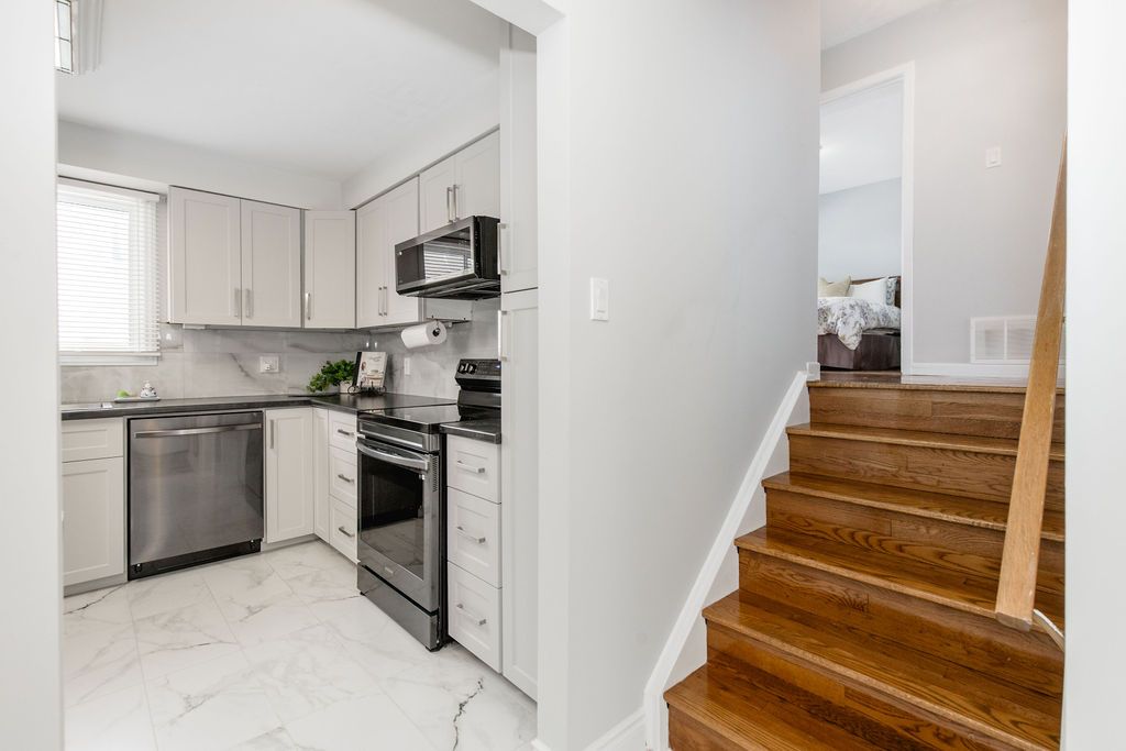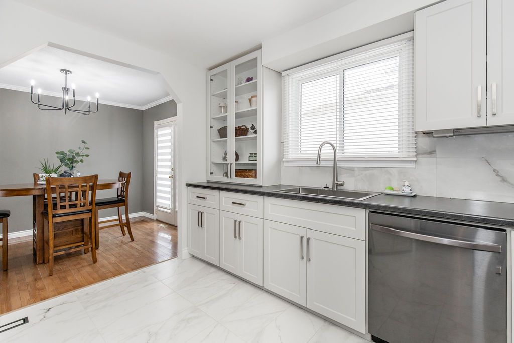 • Beautifully renovated kitchen flows into inviting main living areas.