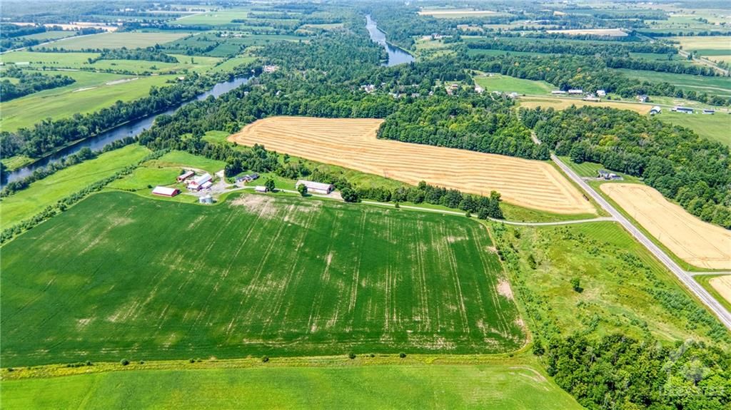 A one of a kind rolling laneway guides you to your completely private waterfront farm with approx 81 acres total and approx 53 acres tillable which can be leased out to a local farmer. A beautifully maintained 3 bedroom 2 bathroom bungalow. A large welcoming foyer leads you to your sun filled kitchen loaded with solid maple kitchen cupboards + a center island. The kitchen is open to a spacious dining room + a living room with a wood burning fireplace. Three well sized bedrooms + a full bathroom. Off of the foyer you have a mudroom/ laundry area, a powder room and inside access to a generous double garage. The lower level features a family room + a den/guest bedroom + an office + loads of storage. You will love both the sunrise from the front deck and the sun set form the back deck!! The outbuildings include a heated workshop with power+ two huge machine sheds + the former dairy barn with a milk house + a calf barn + heifer barn +++ a beautifully maintained property with a gorgeous rolling waterfront setting, a special unique property!! Loaded with several different options. Have you dreamed of wedding venue, ag tourism? Barn meeting venue? Petting farm? Market gardens? Pumpkin patch? Recreational business on the river? Small business venture? Kayak/canoe rentals? Storage for boats, campers, cars++++ check out the drone video!!
