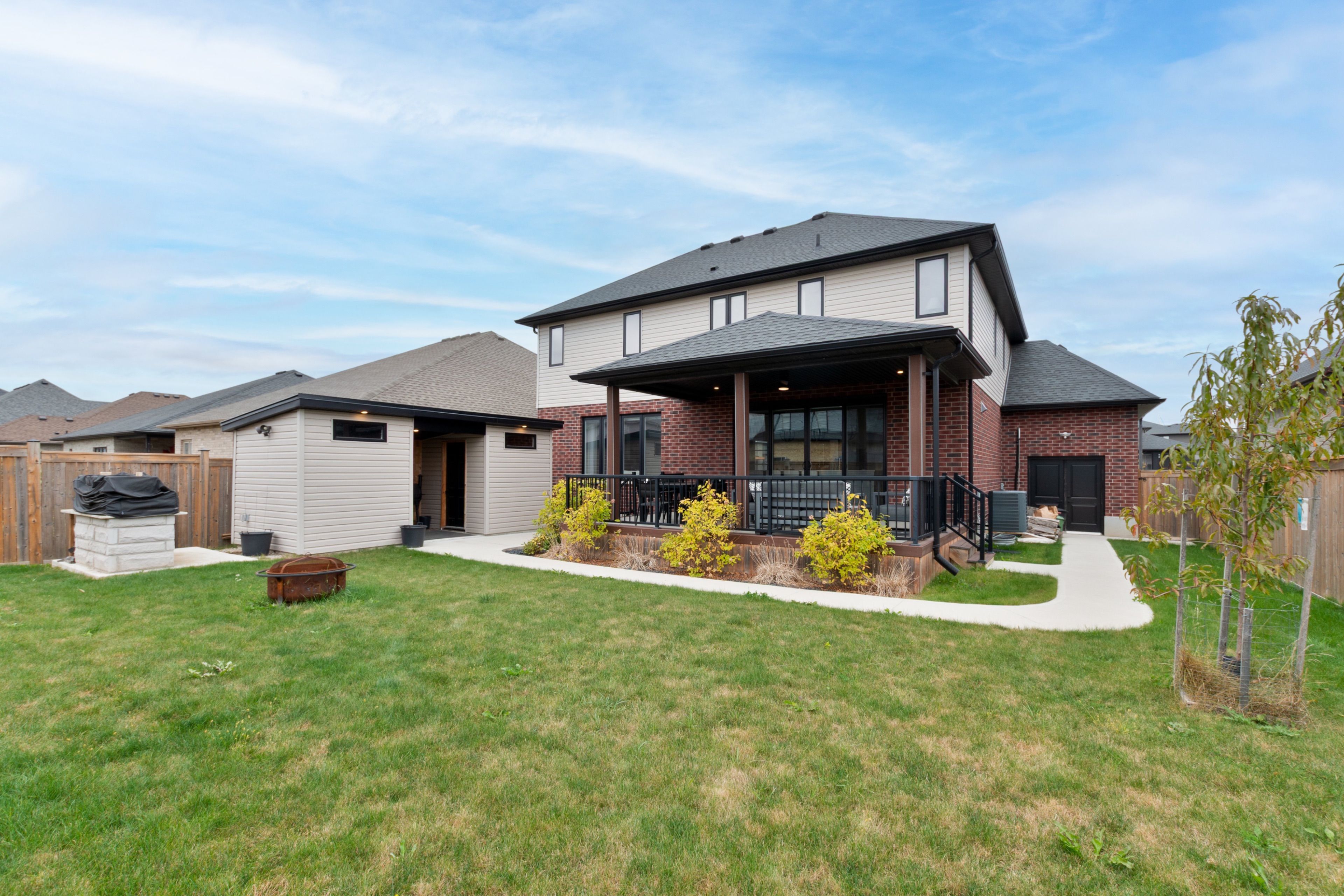 Welcome to this charming custom-built 2-storey home in the heart of talbot village, one of south london's most sought-after communities. Offering the perfect blend of luxury, comfort, and functionality, this home is ideal for growing families or anyone who loves to entertain. Step inside to a bright and spacious main floor layout that flows seamlessly throughout. The chef-inspired kitchen is a showstopper, featuring premium appliances, a custom walk-in pantry with abundant storage and extra countertop space, and a walkout to a covered patio; the perfect extension of your living space. Upstairs, you'll find 4 bedrooms and 2 full bathrooms, including a beautiful primary suite. A stylish powder room serves the main floor. The finished basement adds even more versatility with a large recreation room, an additional bedroom, and a full bathroom; perfect for guests, in-laws, or teens seeking their own space. Outdoors, this home truly shines. Concrete walkways wrap around the house, adding both function and curb appeal. A separate garage access to the backyard makes entertaining and outdoor projects a breeze. And for the bbq enthusiast, a built-in stone bbq pit is ready for your next gathering. What sets this property apart is the true 3-car garage, fully equipped with electricity, water, heating, and a/c, a dream setup for hobbyists, car enthusiasts, or anyone in need of a workshop. A powered backyard shed adds even more functionality for storage or projects. Extras: built-in shelving family room (2022); outside shed & concrete walkway (2022); walk-in pantry (2022); hand washing station (2022); hardwood flooring (2022); new washing machine (2024); new refrigerator (2025).