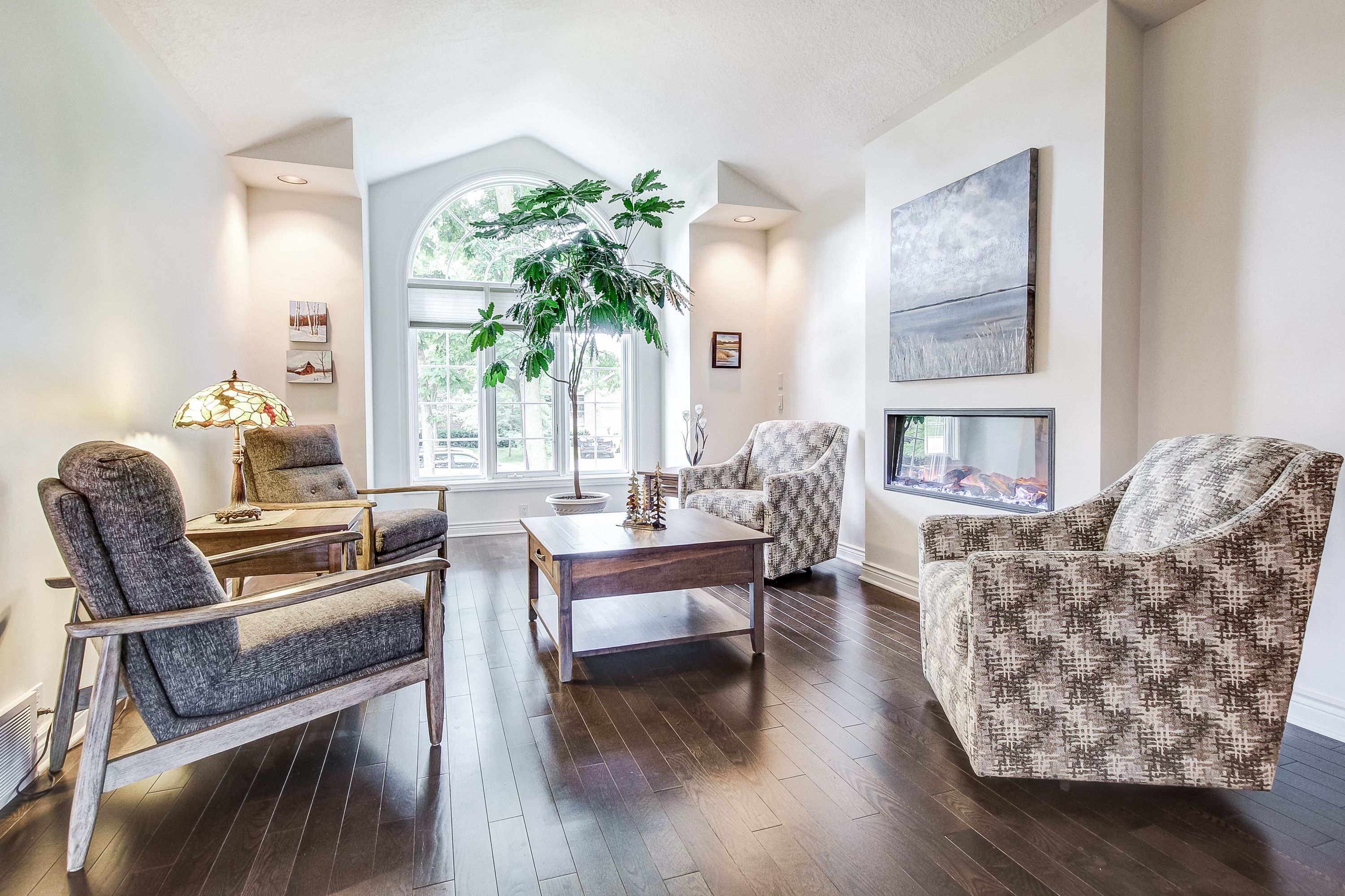 • Spacious family room with floor-to-ceiling windows and views of Quarry Ponds.