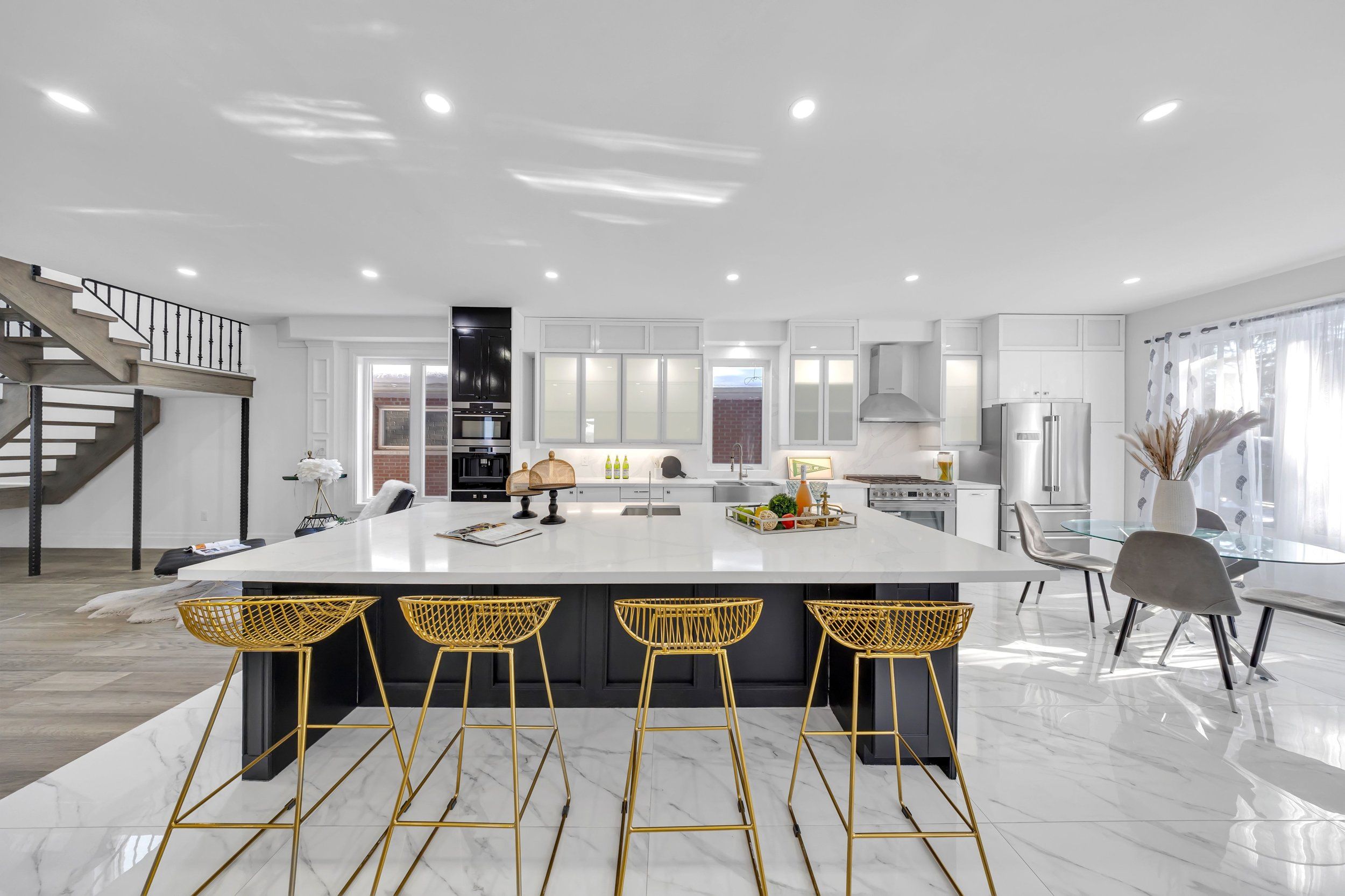 • Luxury kitchen with quartz countertops and high-end appliances.