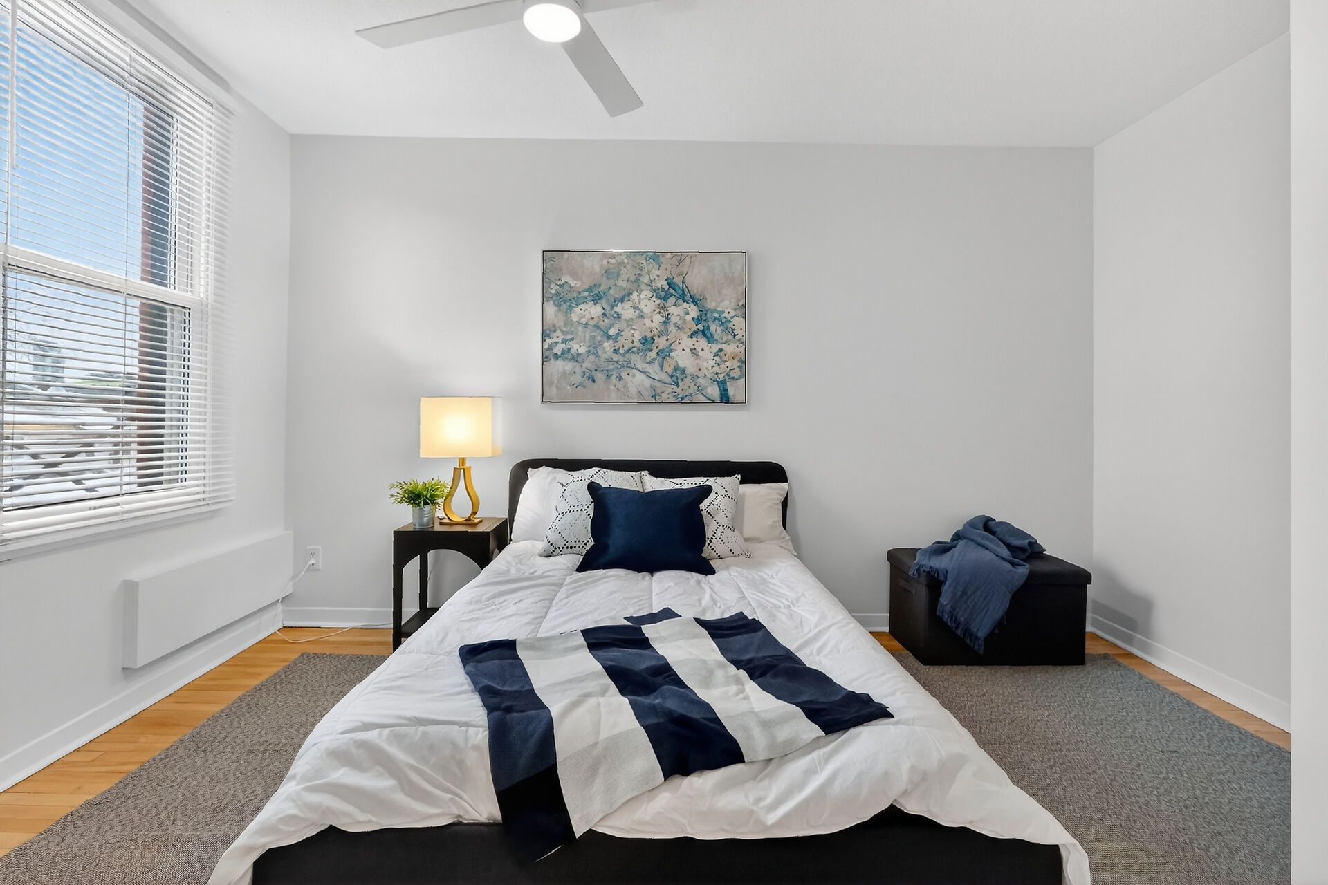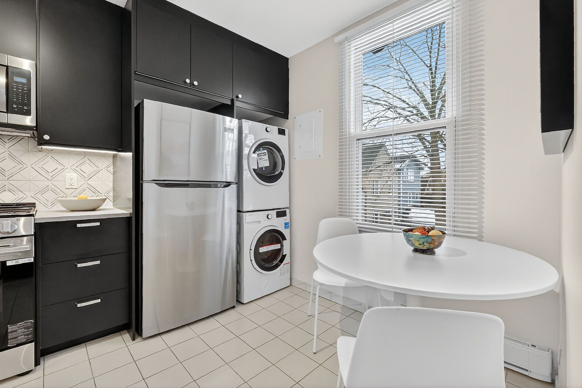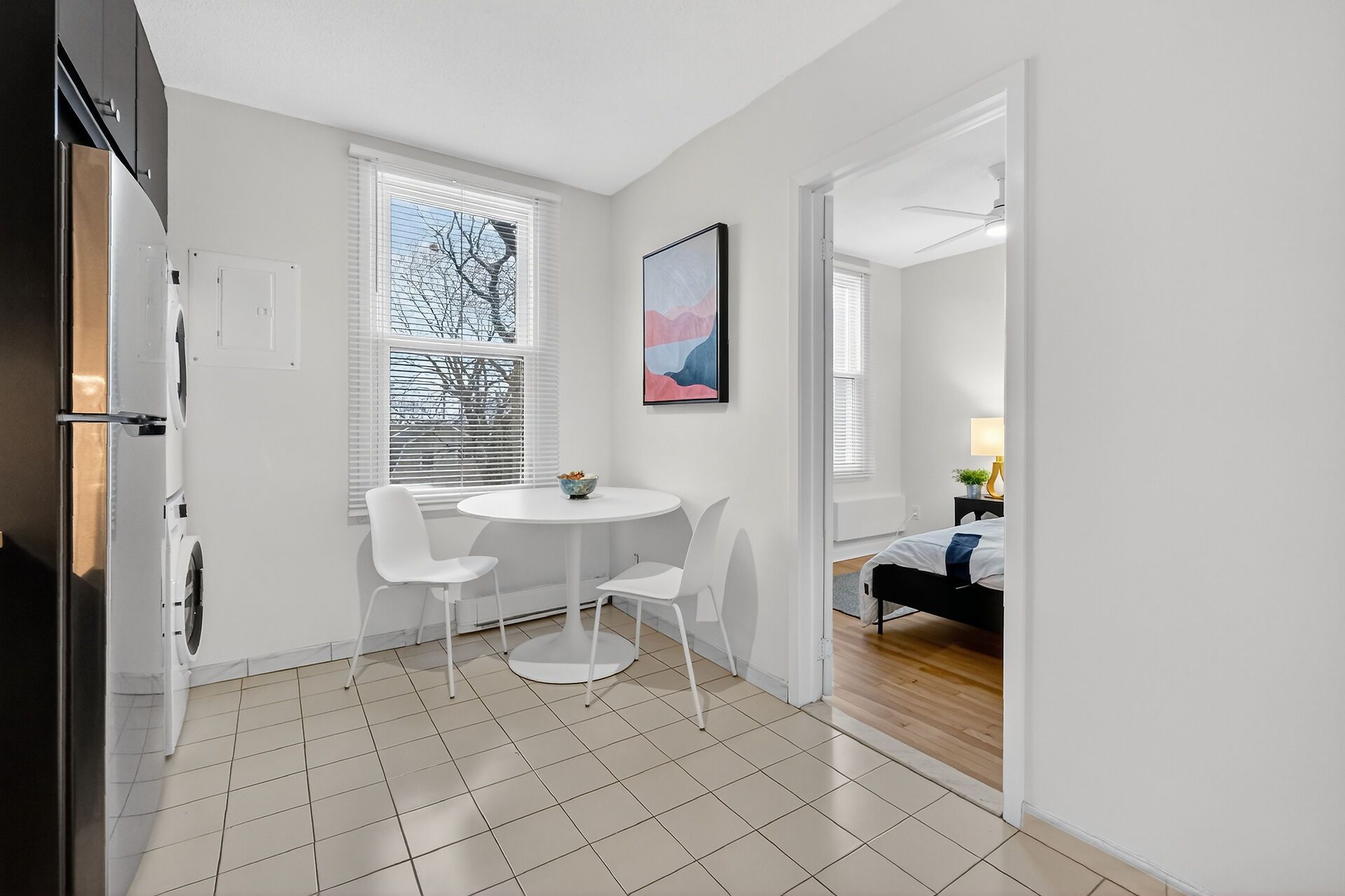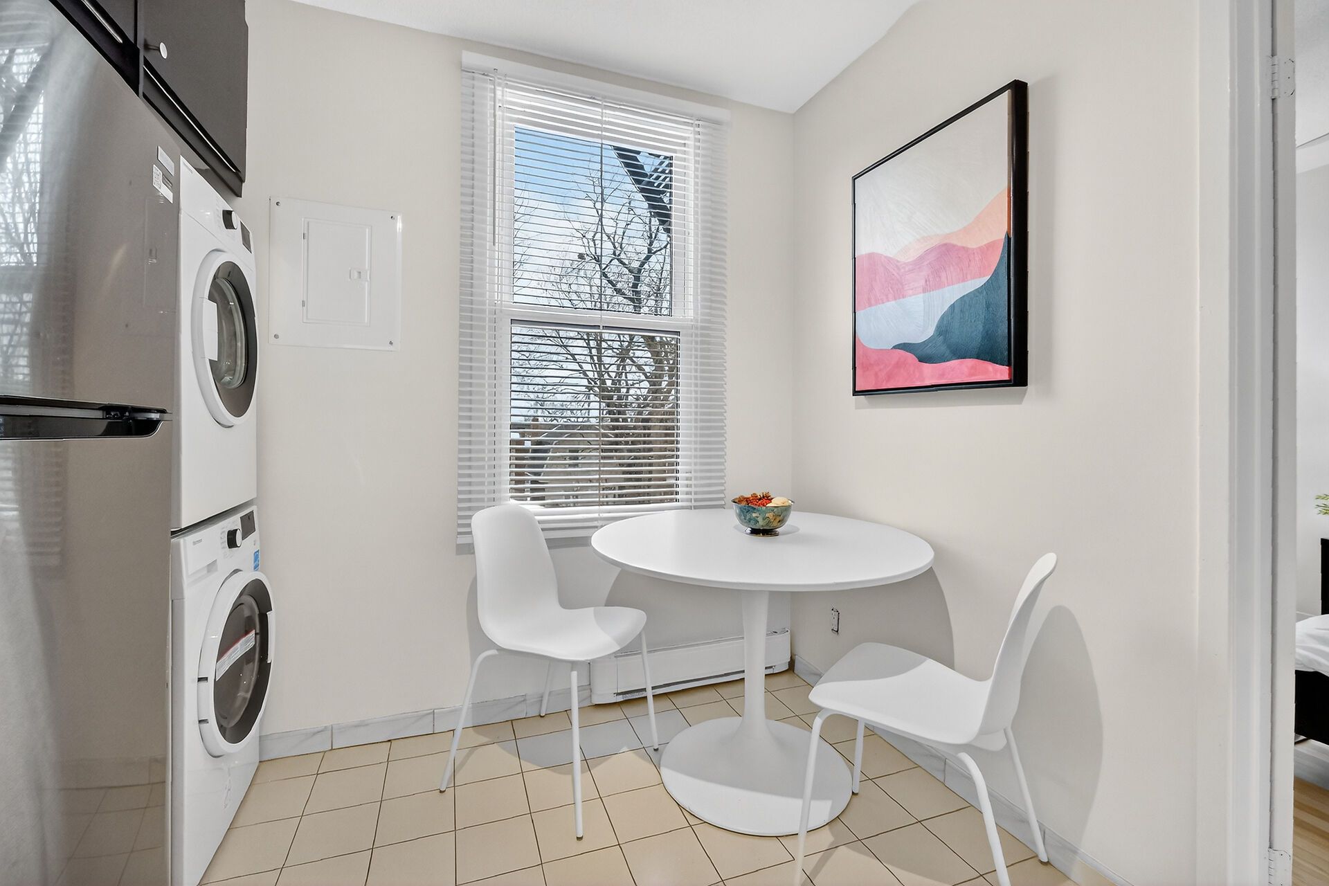 This entire, 2nd floor apartment has been renovated, and is as good as new to it's next occupant. Updates, too many to list include; a new kitchen with a suite of all new appliances; front loading washer and dryer (in unit), fridge, stove, dishwasher, microwave hood-vent, ceiling fans, and high efficiency baseboard heaters. Refinished hardwood, new front windows and balcony door, new blinds, painted throughout, and a new vanity. Together, the improvements capture the old home charm while, providing, a bright, clean, comfortable, energy efficient home. Be the first to take advantage of this rare offering. Covered, parking available at an additional cost.