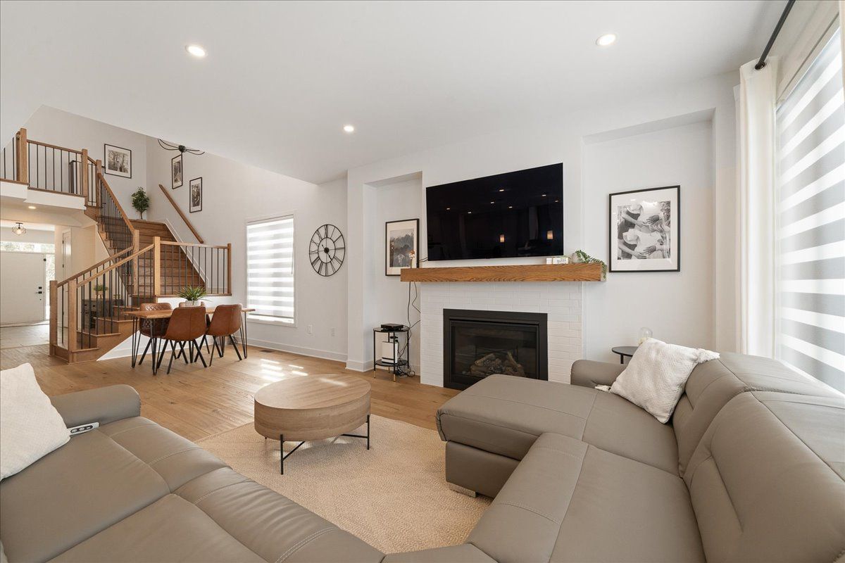 Welcome to this stunning two-storey, two-car garage property! This 2023 build boasts a modern and stylish design that is sure to impress. This home features 4 bedrooms, 3 bathrooms and ample square footage perfect for comfortable living. Step inside to discover a show-stopping modern kitchen complete with café appliances and quartz countertops. The double-height ceilings in the dining room and living room create an open and airy atmosphere, complemented by a cozy gas fireplace. Additional features include a main floor office space, hardwood floors and stairs, four large bedrooms, and upgraded bathrooms. The basement offers a large recreation room, perfect for entertaining guests or relaxing with family. Large windows throughout the home bring in plenty of natural light, creating a warm and inviting ambiance. This property is conveniently located close to amenities, parks, and great schools. Don't miss out on the opportunity to make this beautiful home yours.