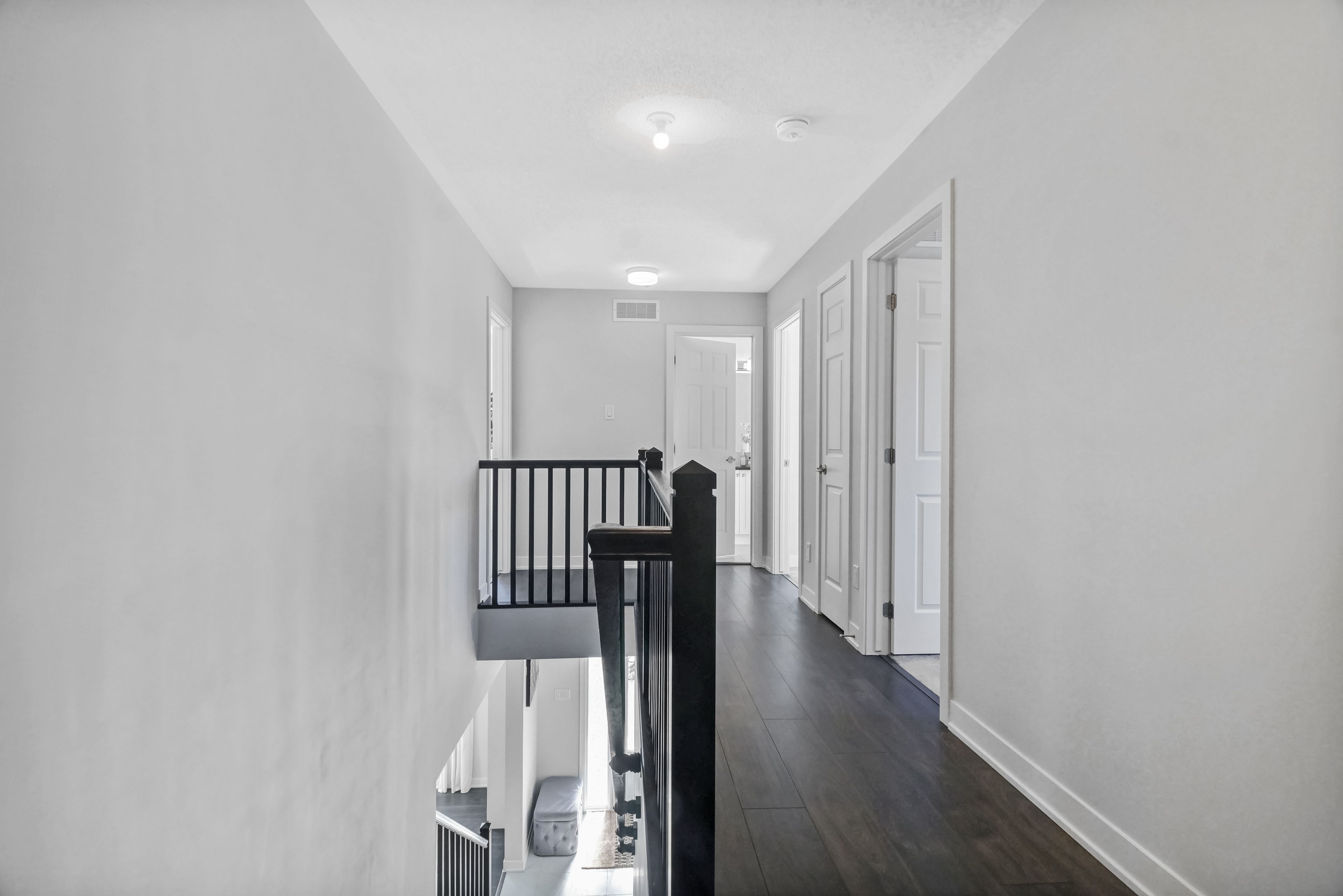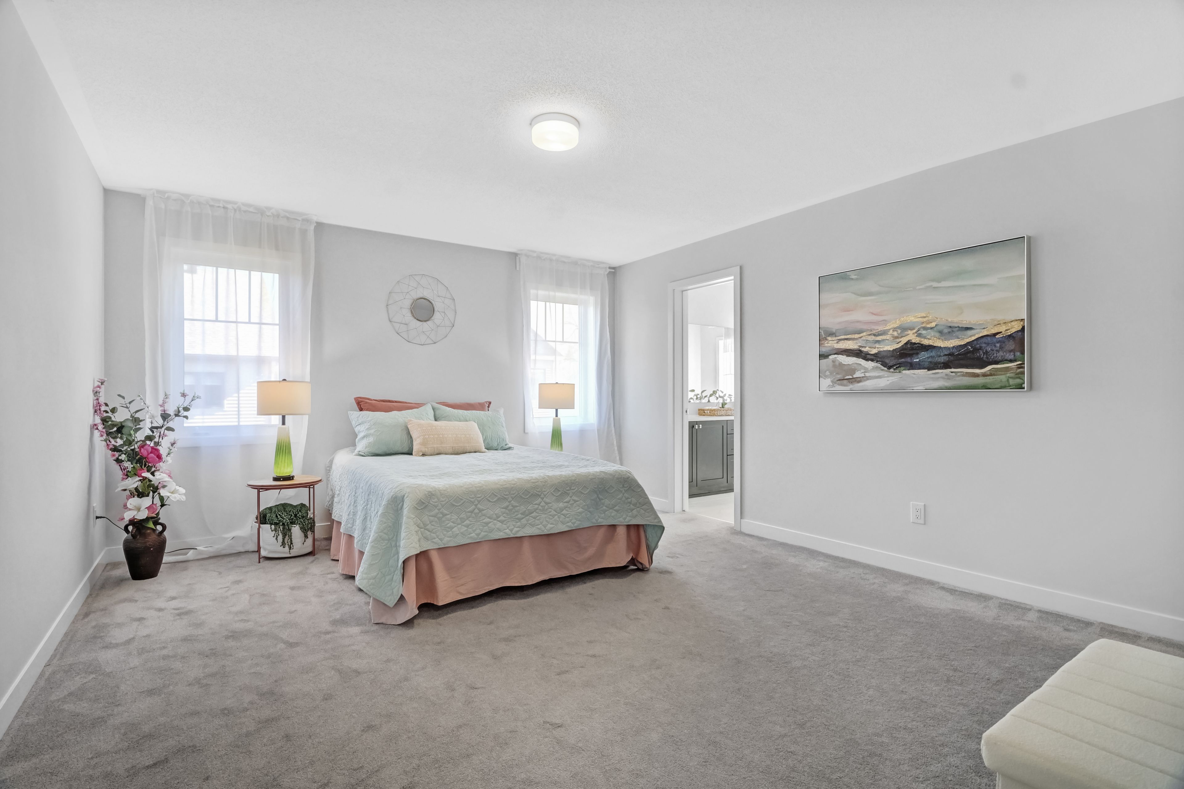 Situated on a premium corner lot across from peaceful greenspace, this stunning 2023-built home offers exceptional space, style, and over $70,000 in builder upgrades. Featuring 4 bedrooms, 2. 5 bathrooms, a double-car garage, and parking for up to 6 vehicles, this property seamlessly blends modern luxury with everyday functionality. A welcoming covered porch leads into a bright foyer with a convenient closet, setting the tone for the elegantly designed interior. Just off the entrance, a bright quaint den provides the perfect space for a home office or study. The main floor also features a well-thought out mudroom with direct access to the attached two-car garage, along with a convenient powder room. Designed for both entertaining and comfortable living, the luxurious yet warm open-concept great room is filled with natural light and anchored by a cozy gas fireplace. The chef-inspired kitchen is a true highlight, and the heart of the home, complete with upgraded stainless steel appliances, quartz countertops, upgraded cabinetry, breakfast bar and premium finishes throughout. The adjoining dining area offers direct access to patio doors leading to a private, lush backyard, ideal for relaxing or hosting guests. Upstairs, the spacious primary suite serves as a serene retreat, featuring a walk-in closet and a luxurious 4-piece ensuite with double sinks, a soaker tub, and a frameless glass shower. Three additional generously sized bedrooms, a full family bathroom, and the convenience of second-floor laundry complete the upper level. The fully unfinished basement is a blank canvas waiting for your personal touch. With 9-foot ceilings, upgraded wide plank luxury vinyl flooring, and thoughtful design upgrades throughout, this home offers a rare opportunity to enjoy modern living in a prime location close to nature and amenities.
