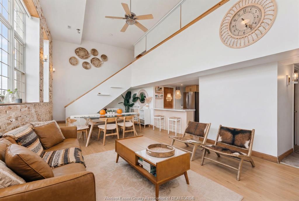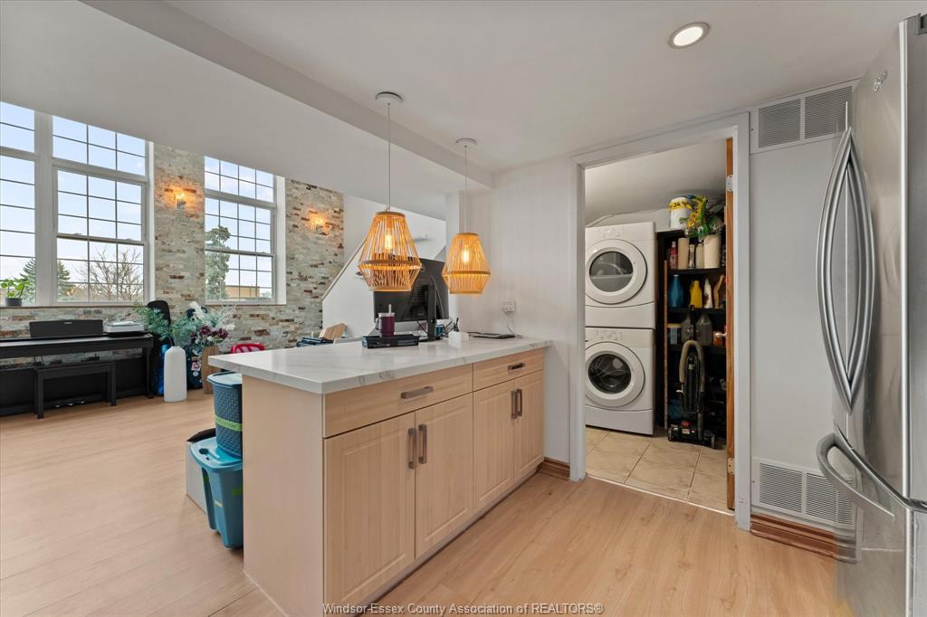 Exquisite loft style condo with beautiful skyline & cityscape views! This premium unit at the highly sought after st. Genevieve place has been tastefully updated and is a must-see, slice of heaven. With soaring 16' ceilings and a detroit facing view, the sunlight and skyline views are spectacular. The main floor is perfect for entertaining and features a spacious and bright, open-concept living/dining room, kitchen w/ peninsula, and 4pc bath. Spacious upper loft bedroom w 3pc ensuite and built in wardrobes with extra living space for office, reading nook or storage. This smart loft is outfitted with automated black out blinds, lights, temperature and security controls. 2020 updates: new toilets, calcutta quartz counter tops, natural stone feature wall, custom farmhouse sink, lvt, new lighting, new hvac with humidifier. Minimum of one year lease, employment and proof of income verification required.