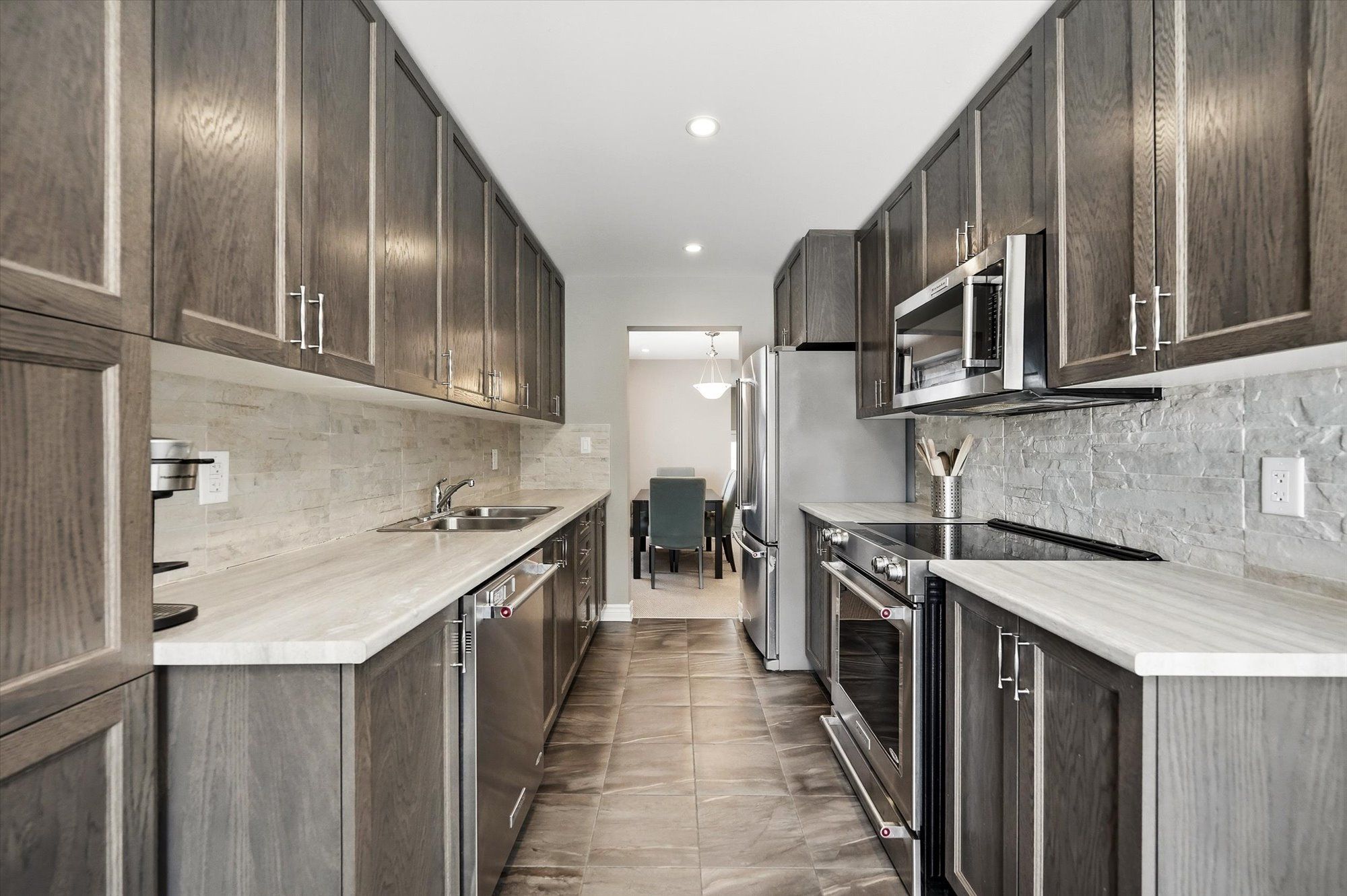 • Upgraded kitchen with modern appliances and extended cabinetry.