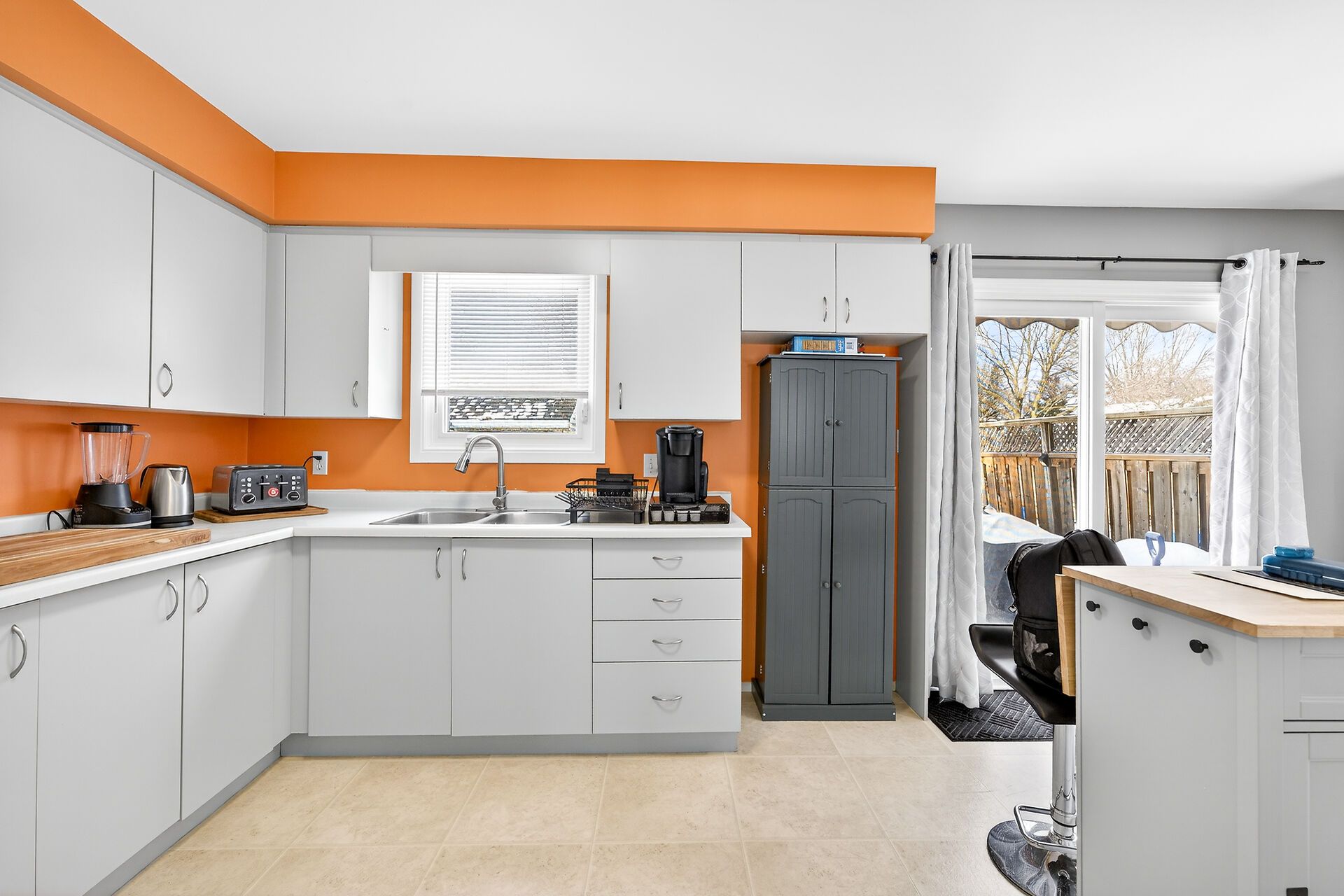 • Bright open main floor with generous living room and cheerful kitchen.