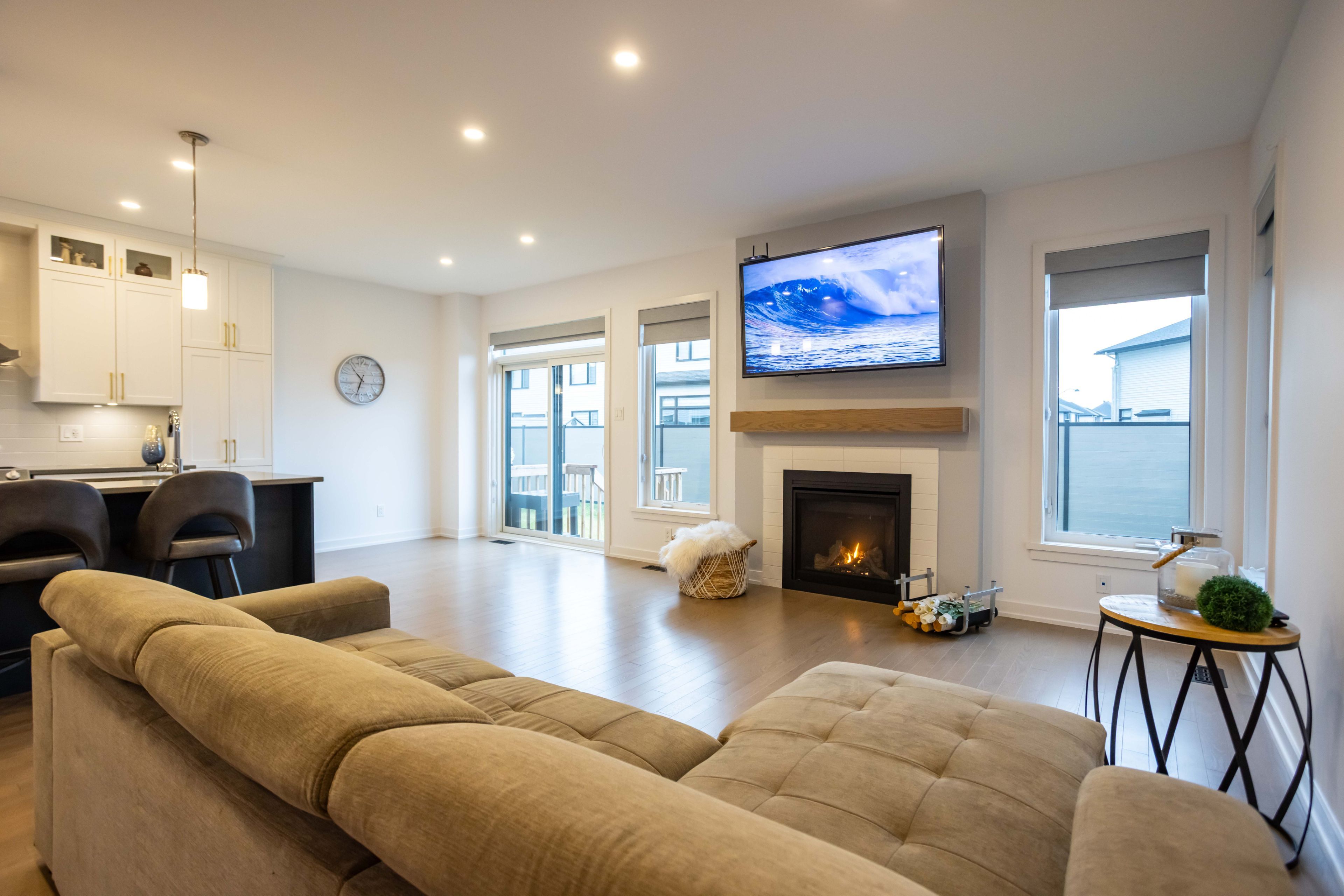 **please note that some pictures are virtually staged** welcome to the home that checks every box-right here in the heart of orleans! Perfectly positioned within walking distance to top-rated schools, gorgeous parks, and minutes from shopping, restaurants, and all the essentials, this property offers the lifestyle buyers dream of: convenience, comfort, and undeniable curb appeal. Step into a warm and welcoming foyer with a spacious double closet, then move into the bright, open-concept main floor-designed for modern living and effortless entertaining. The elegant dining room flows into a cozy living area featuring a charming gas fireplace, setting the perfect tone for family nights and gatherings. At the heart of the home, you'll find a sun-filled kitchen with a sit-at island, abundant cabinetry, and a bright breakfast area with patio doors leading to the partially fenced backyard-ideal for bbqs and summer evenings. Upstairs offers four generous bedrooms, two full bathrooms, and the convenience of second-level laundry. The standout? A luxurious primary retreat featuring two walk-in closets, a private 5-piece ensuite, and a beautiful electric fireplace-the perfect touch of warmth and ambiance to elevate your evenings. The partially finished lower level expands your possibilities, offering a comfortable rec/playroom plus a large unfinished space ready for your future gym, office, bedroom, or storage needs. Outside, enjoy a partially fenced yard, finished garage, and upgraded gemstone exterior lighting that adds year-round style, security, and stunning curb appeal. This is more than a home-it's a lifestyle. A beautifully maintained, spacious property in one of orleans' most desirable communities. Come experience it for yourself and start your next chapter in a place you'll be proud to call home.