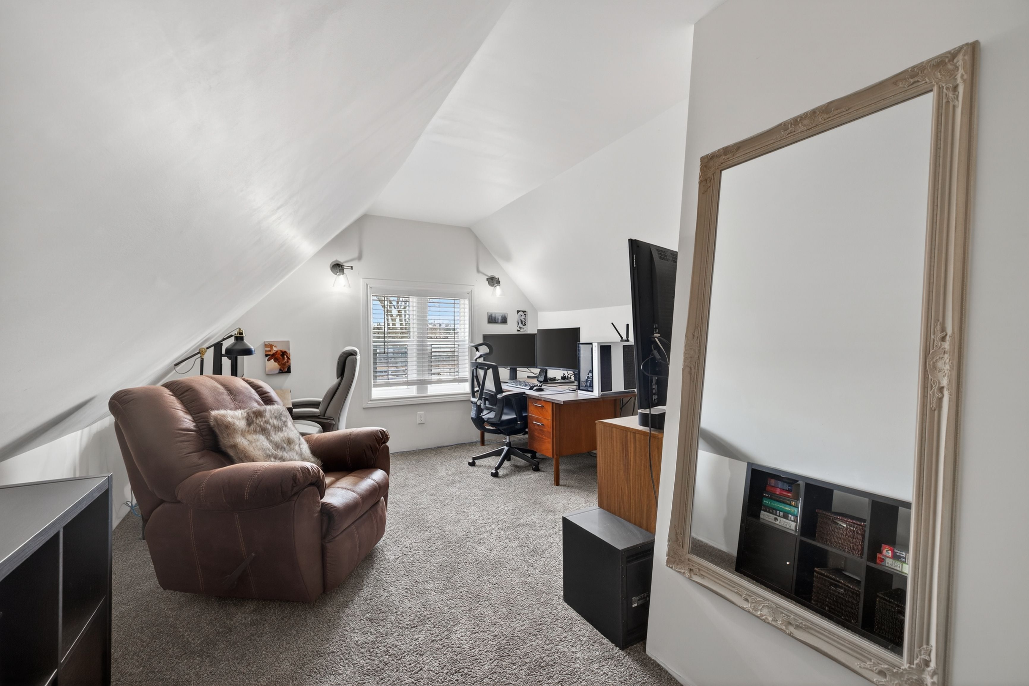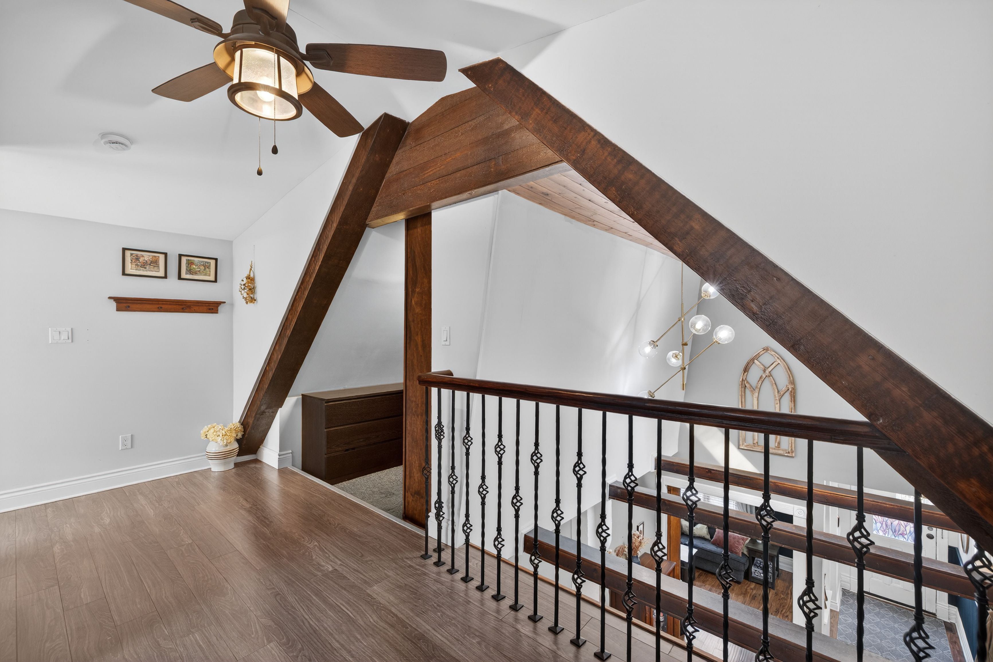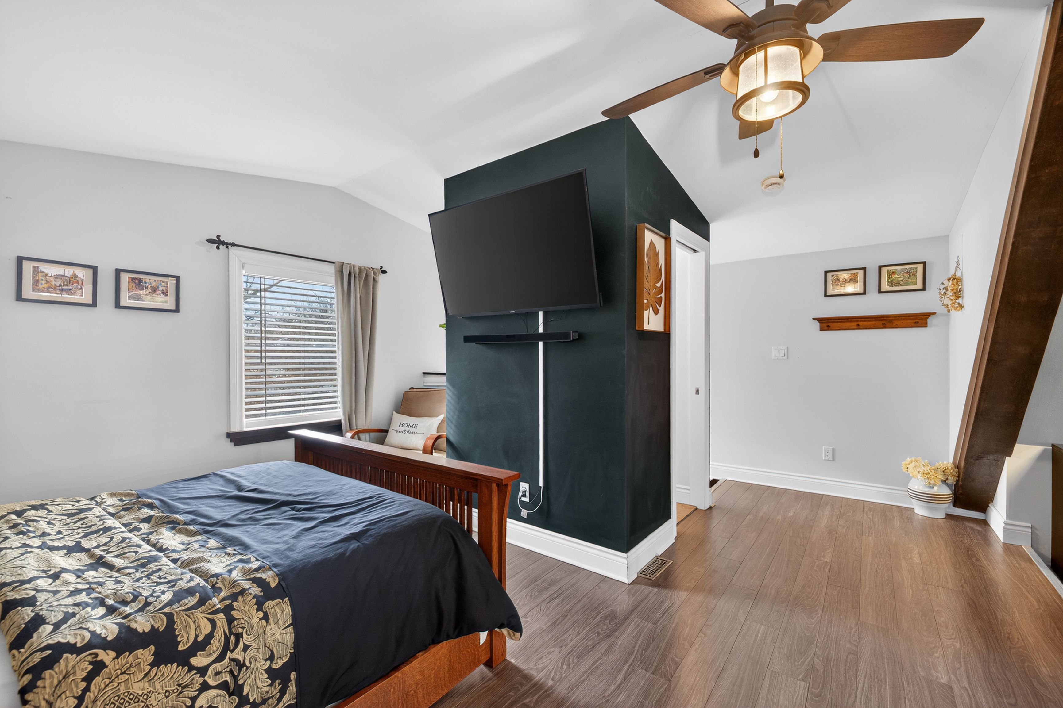 Welcome to your opportunity to own a move-in ready home that offers a combination of modern updates and historic charm, located on the edge of the beautiful old east village neighborhood. This open-concept property features two bedrooms and two bathrooms, including a main-floor laundry and a second-story loft-style primary bedroom complete with a custom closet, a two-piece ensuite, and a recently finished bonus room perfect for a home office or nursery. The home also boasts a three-season room that overlooks a beautifully landscaped yard, offering a generous storage shed and a tranquil pond. Recent improvements include: summer 2021: large back deck with privacy walls; fall 2021: fully finished attic with spray foam, new windows, carpet, and knee-wall storage; 2024: smart home lennox system thermostat installation; summer 2025: newly constructed front porch; fall 2025: exterior painting of siding and windows. Walking distance to downtown, parks, restaurants, shopping, and schools. Don't miss out on this fabulous home!