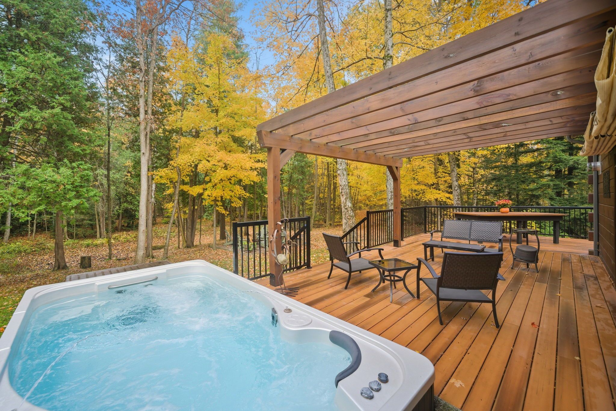 • Built-in swim spa and private trails for ultimate relaxation.