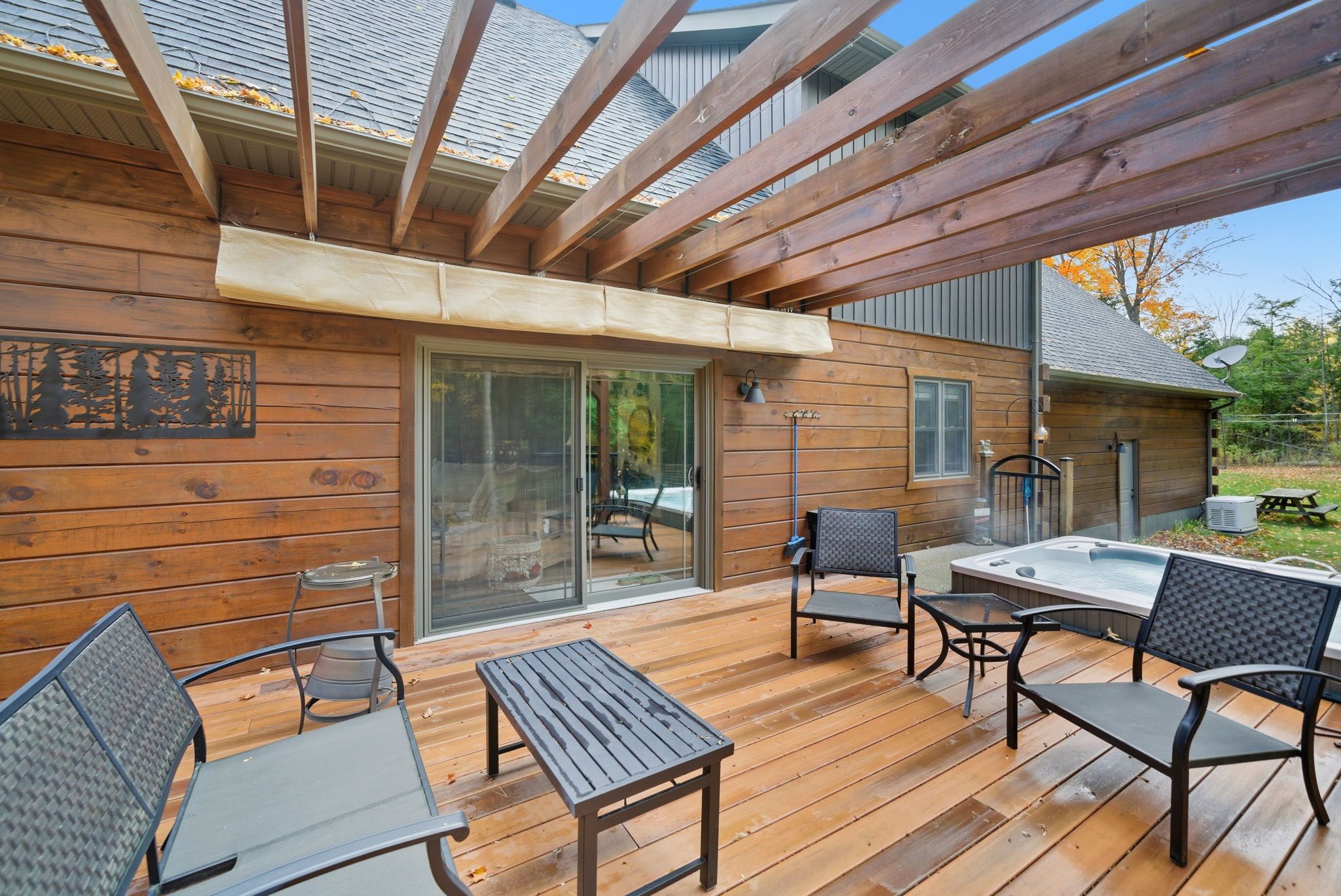Escape to your private retreat on 3. 3 serene acres with direct access to northumberland forest, atv and snowmobile trails, cross-country ski trails, and skating right on your property. Just 7 minutes to st. Anne's spa and close to local horse stables, this custom-built log home is perfect for weekend getaways, outdoor enthusiasts, or full-time country living. Inside, the main floor features a bright gourmet kitchen, cozy family room with a natural gas fireplace, versatile bedroom/den, and a 3-piece bath. The loft-style primary suite boasts sweeping views, a spa-inspired ensuite, and a deep soaker tub for ultimate relaxation. The finished lower level includes a spacious rec room, guest bedroom, and full bath, offering flexible space for family or entertaining. Modern upgrades throughout include composite decking, stamped concrete, a paved driveway, rv hookups, whole-home generator, invisible fencing, and an oversized double garage with interior access to the basement, ensuring convenience and peace of mind. Step outside to enjoy your built-in swim spa, private trails, and quiet country surroundings, a perfect blend of rustic charm and modern comfort. Whether seeking a weekend escape, an active outdoor lifestyle, or a peaceful full-time residence, 649 county road 22 offers the ultimate balance of recreation, luxury, and tranquility.