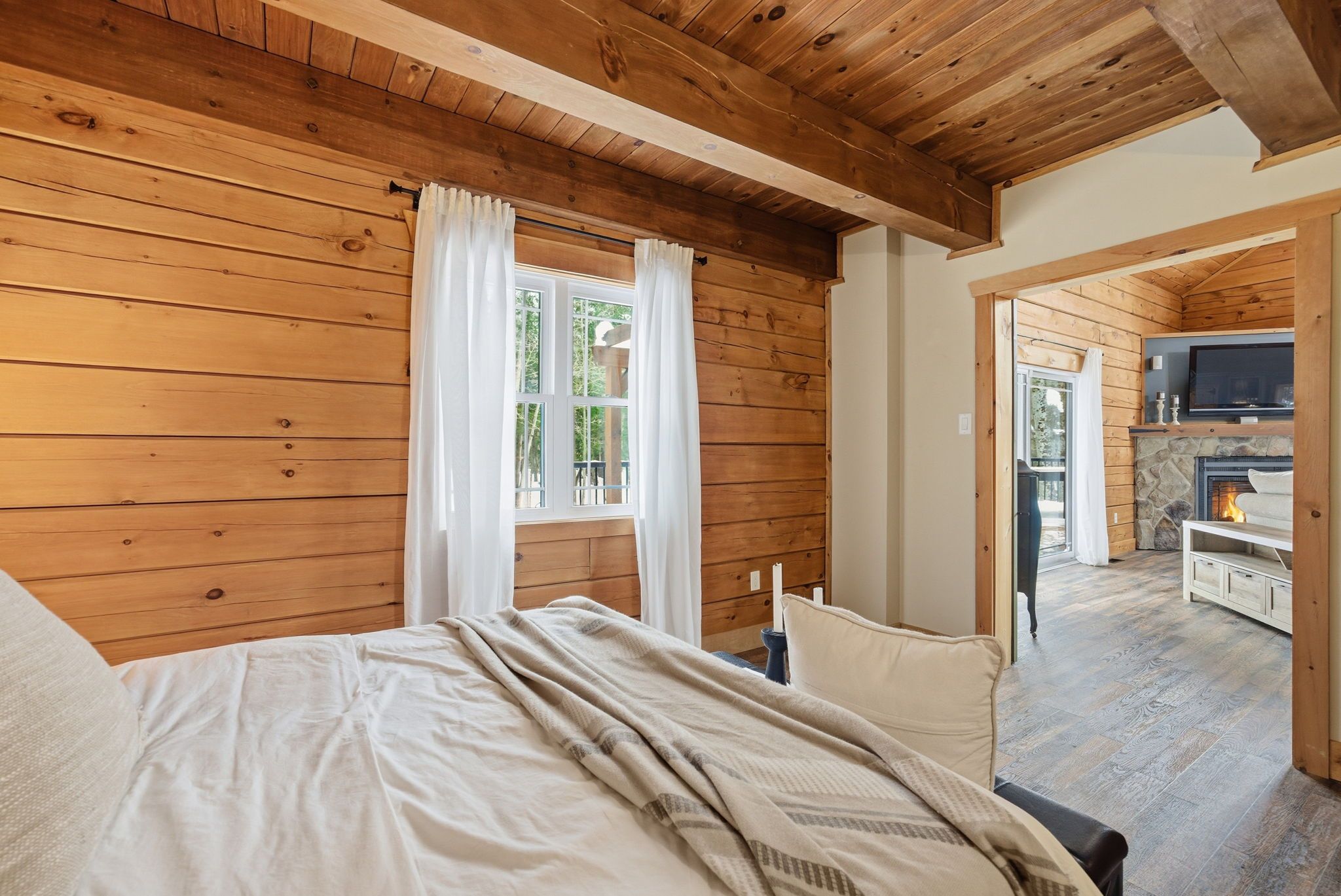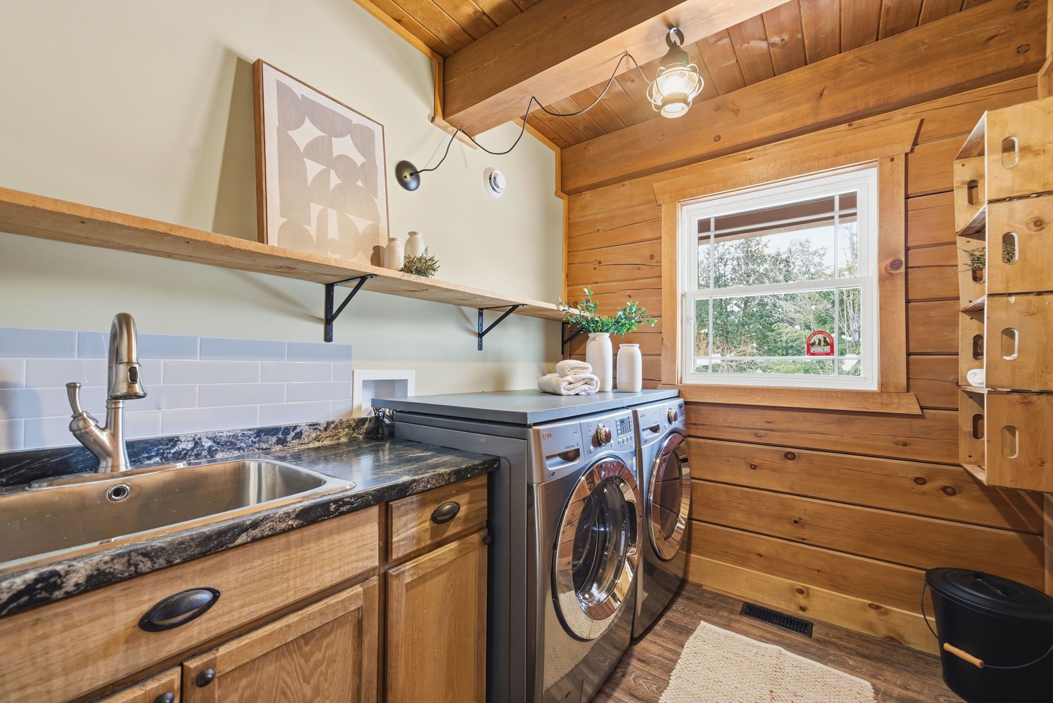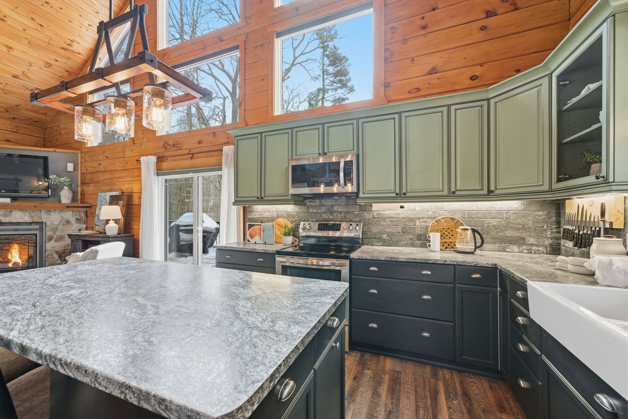 • Custom-built log home perfect for getaways or full-time living.