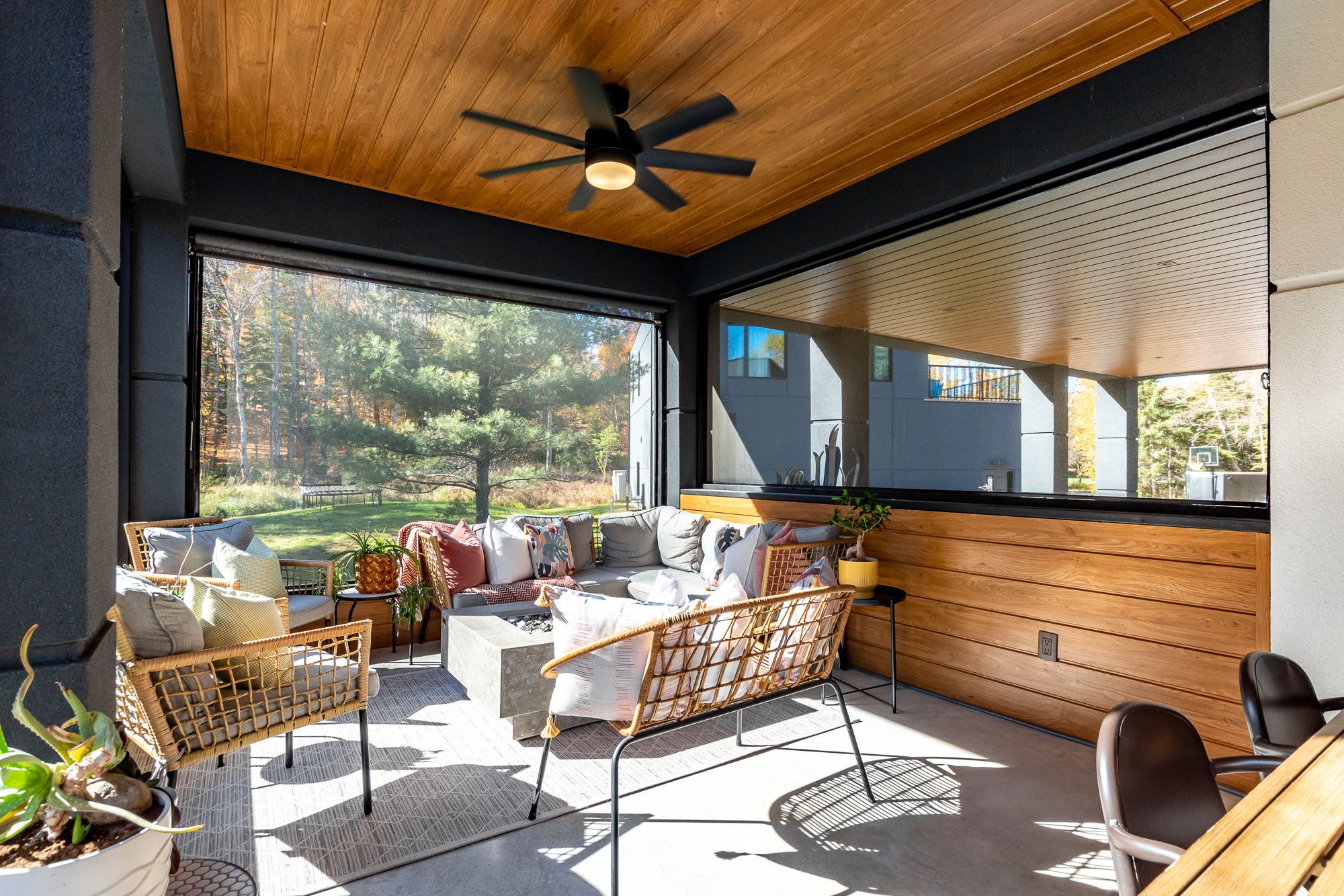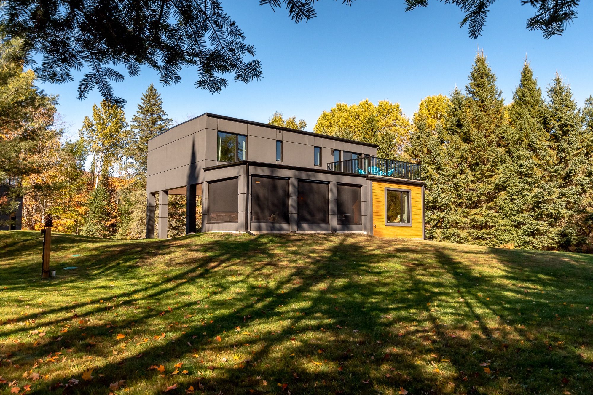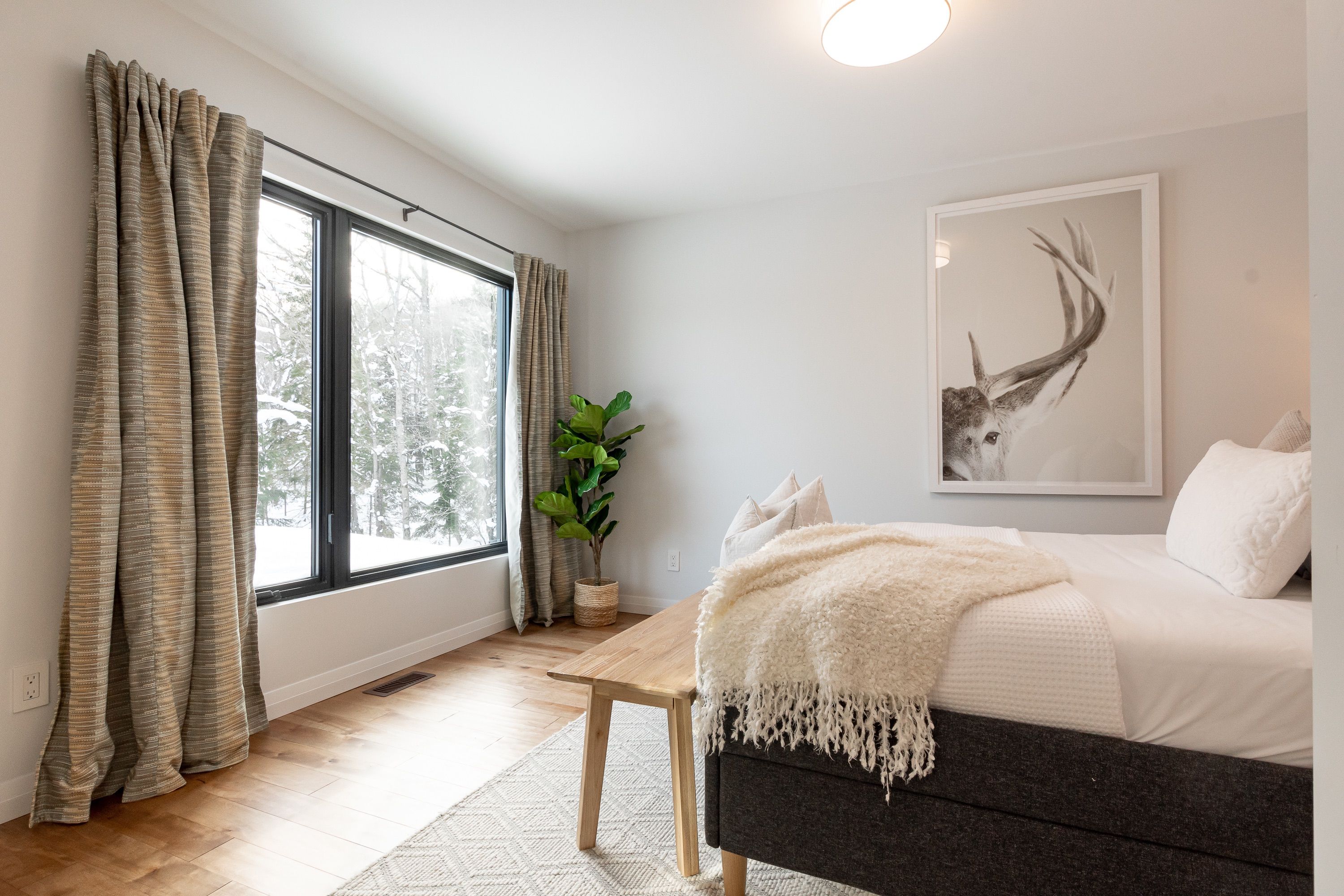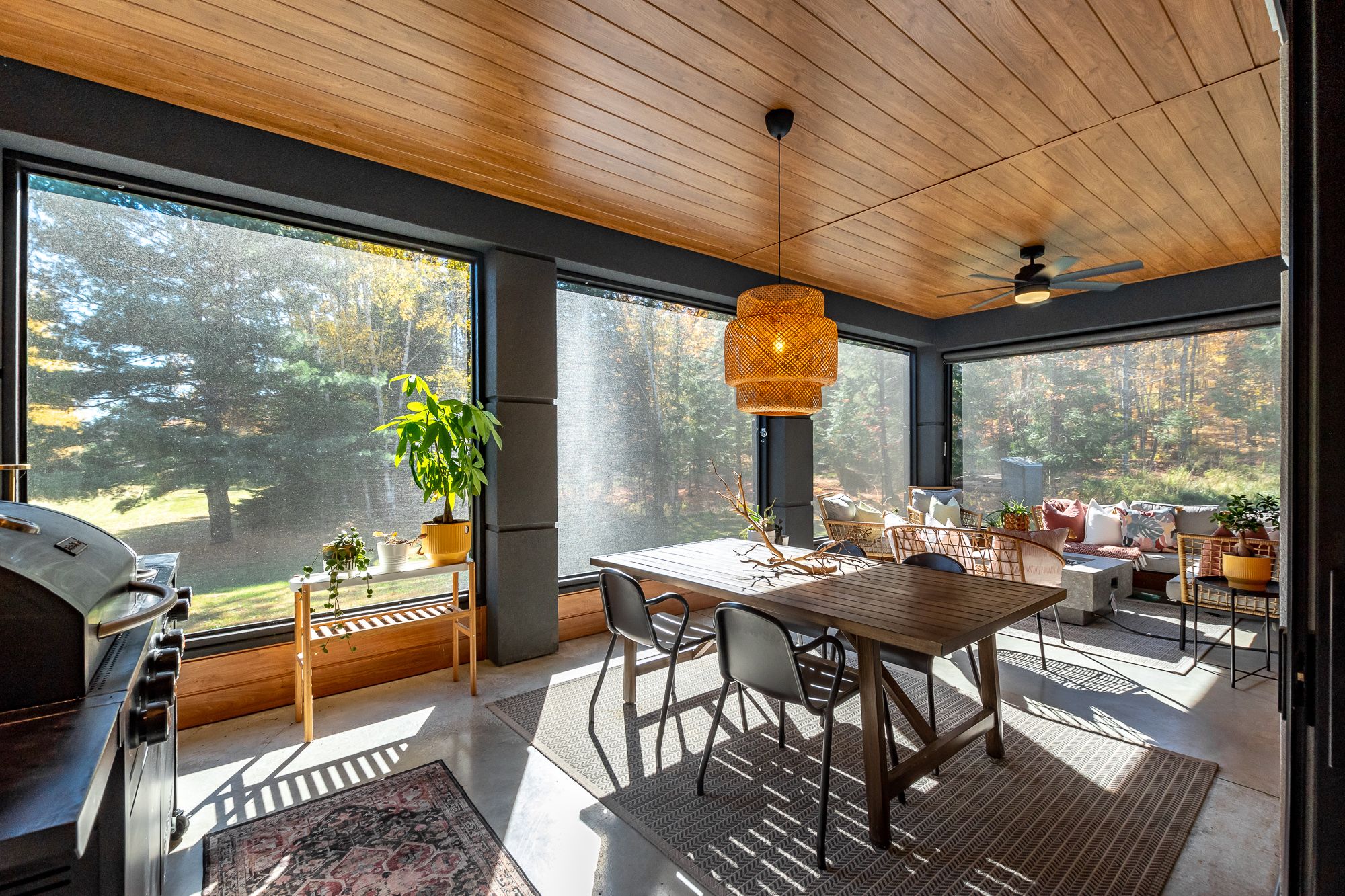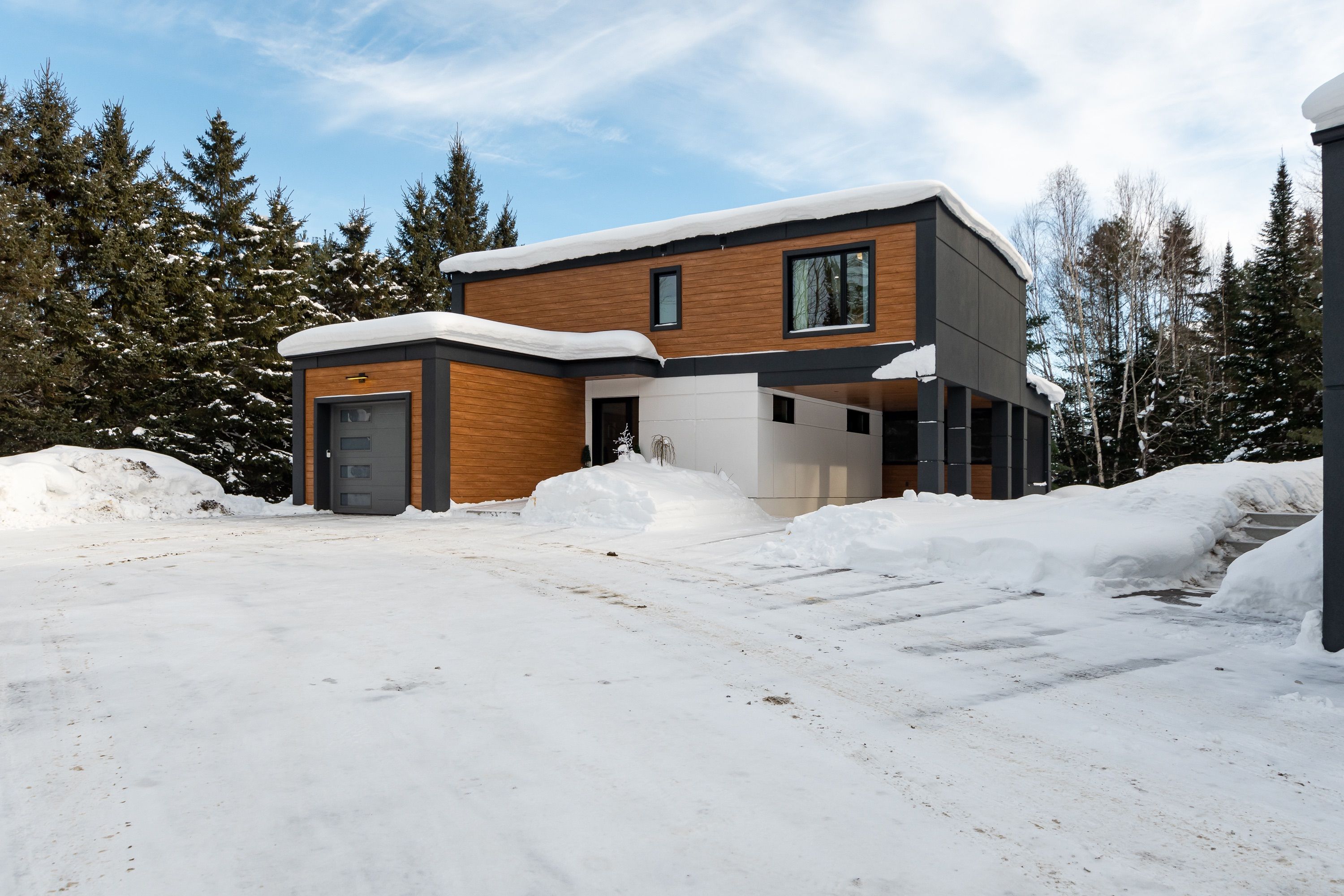 This exceptional 2024-built modern estate sits on over 3 acres of private, beautifully balanced cleared land & woodland, offering architectural distinction alongside flexibility for incoming generation, extended family living, or a private nanny suite. Designed w/ precision & mid-century sophistication, it blends refined modern living w/ thoughtful versatility. A standout feature is the fully self contained 2-bedroom upper level apartment w/ private entrance above the detached garage. Currently rented for $3,200 per month, this beautifully finished suite includes a modern kitchen, bright living area, private deck, 4 piece bath w/ heated floors & in-suite laundry - ideal for rental income, multi generational living, adult children, guests or a live-in nanny. In the main residence, a spacious foyer opens to bright open-concept living, dining & bespoke polynesian-inspired kitchen. A striking staircase features block hardwood treads floating on custom metal mono-stringers encased in plate-glass railings. Oversized sliders from the dining area lead to a screened porch w/ propane hookups for bbq & fire table, blending indoor & outdoor living. Main floor includes powder room, mudroom w/ storage & inside access to attached single-car garage. Upstairs, the primary suite offers a sitting area, sliders to a south-facing balcony, walk-through closet & spa-like 5pc ensuite w/ double sinks, dual shower & heated floors. Two additional bedrooms share a 3pc bath, also w/ heated floors. The finished lower level features a cozy rec room w/ projector & surround sound, a bedroom w/ custom millwork, 4pc bath w/ heated floors & laundry area, perfect for family or guests. Heated & cooled 30'x38' detached shop w/ 200-amp service, 13' ceilings & 11'x12' overhead doors, plus an upper-level 2-bed apartment w/ private entrance. Both the main residence & detached garage are built w/ icf. High-efficiency heat pumps, ev charger & fibre-optic internet complete this meticulously crafted modern estate.
