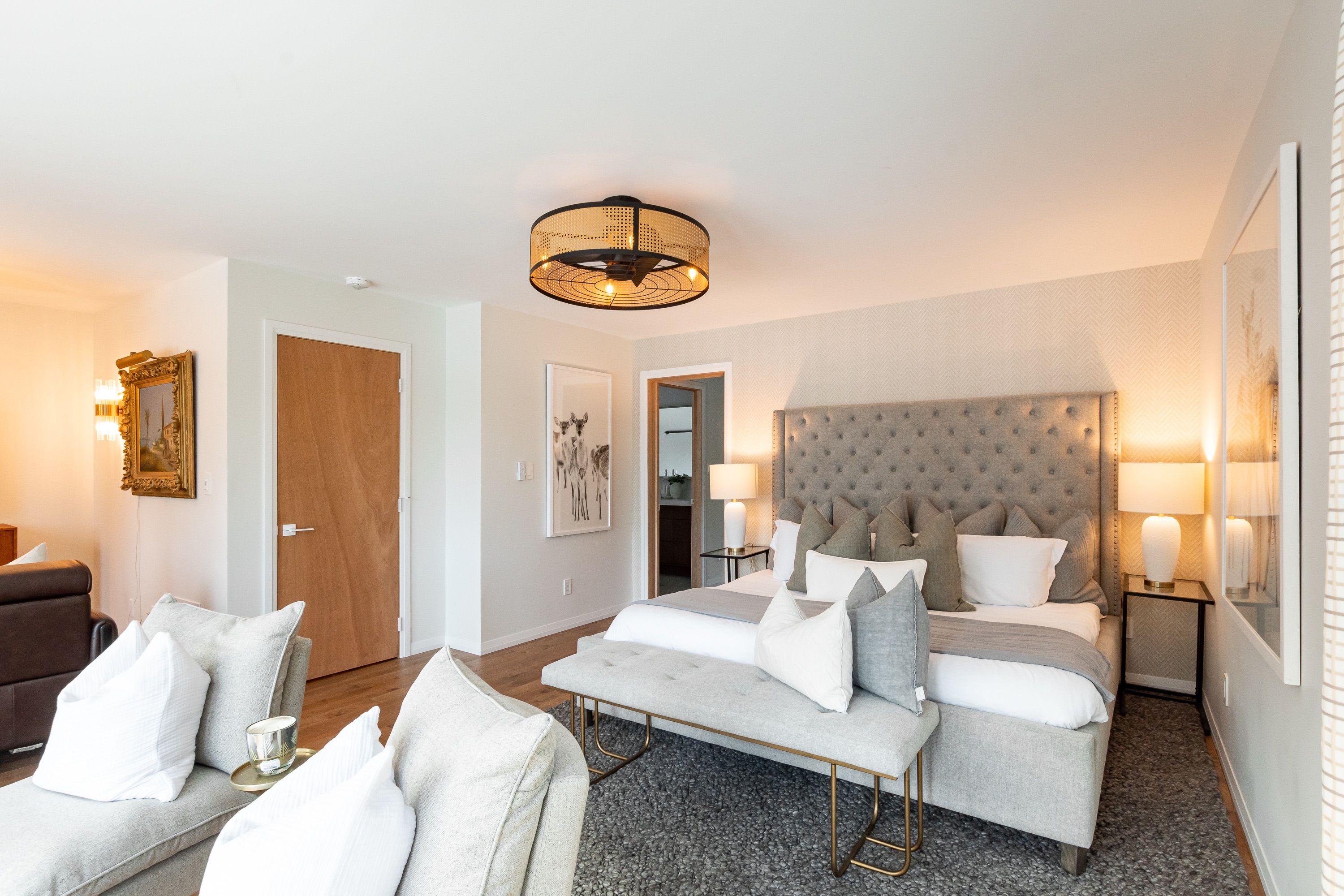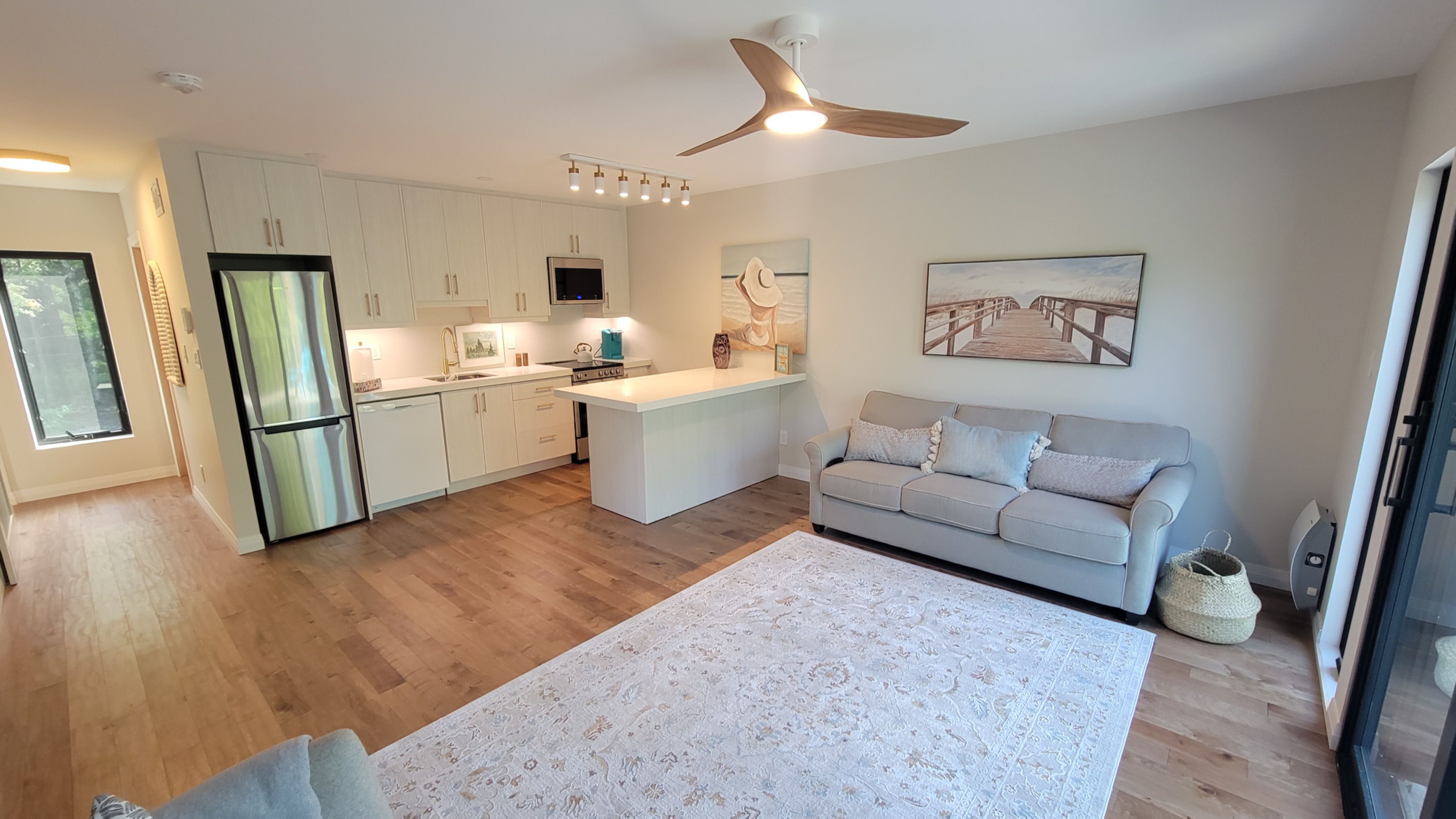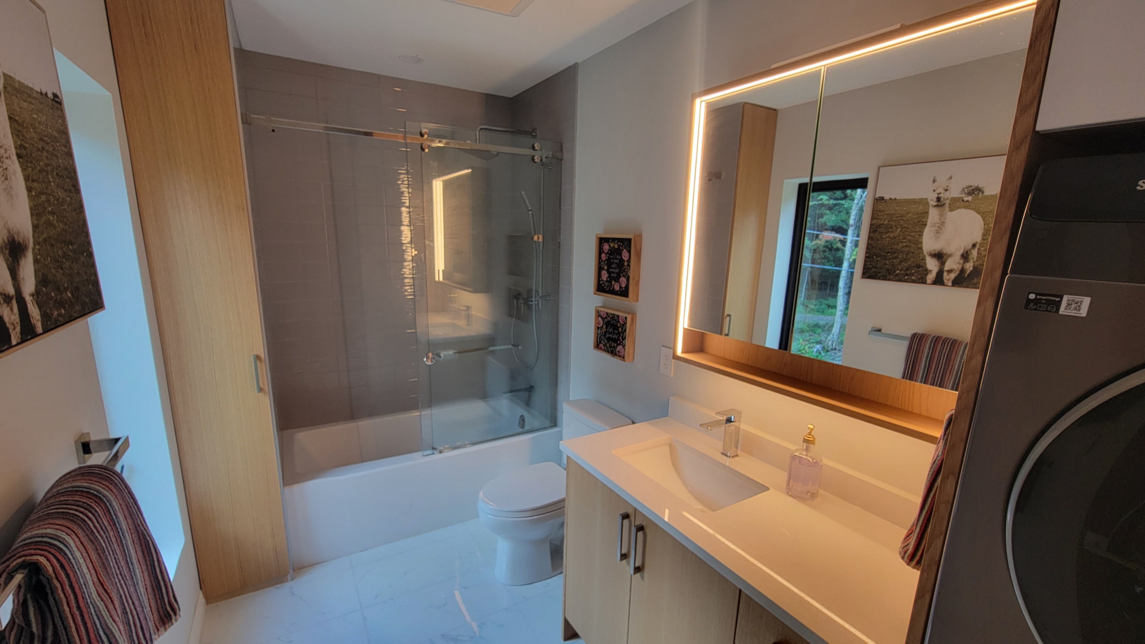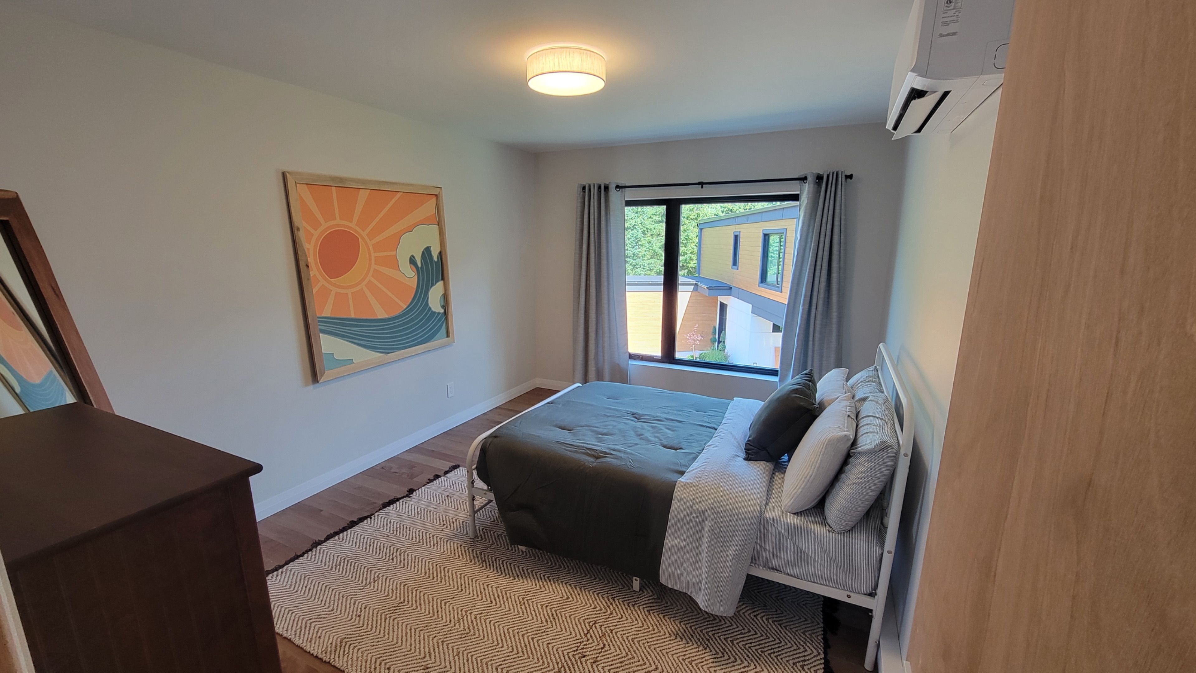 This exceptional 2024-built modern estate sits on over 3 acres of private, beautifully balanced cleared land & woodland, offering architectural distinction alongside flexibility for incoming generation, extended family living, or a private nanny suite. Designed w/ precision & mid-century sophistication, it blends refined modern living w/ thoughtful versatility. A standout feature is the fully self contained 2-bedroom upper level apartment w/ private entrance above the detached garage. Currently rented for $3,200 per month, this beautifully finished suite includes a modern kitchen, bright living area, private deck, 4 piece bath w/ heated floors & in-suite laundry - ideal for rental income, multi generational living, adult children, guests or a live-in nanny. In the main residence, a spacious foyer opens to bright open-concept living, dining & bespoke polynesian-inspired kitchen. A striking staircase features block hardwood treads floating on custom metal mono-stringers encased in plate-glass railings. Oversized sliders from the dining area lead to a screened porch w/ propane hookups for bbq & fire table, blending indoor & outdoor living. Main floor includes powder room, mudroom w/ storage & inside access to attached single-car garage. Upstairs, the primary suite offers a sitting area, sliders to a south-facing balcony, walk-through closet & spa-like 5pc ensuite w/ double sinks, dual shower & heated floors. Two additional bedrooms share a 3pc bath, also w/ heated floors. The finished lower level features a cozy rec room w/ projector & surround sound, a bedroom w/ custom millwork, 4pc bath w/ heated floors & laundry area, perfect for family or guests. Heated & cooled 30'x38' detached shop w/ 200-amp service, 13' ceilings & 11'x12' overhead doors, plus an upper-level 2-bed apartment w/ private entrance. Both the main residence & detached garage are built w/ icf. High-efficiency heat pumps, ev charger & fibre-optic internet complete this meticulously crafted modern estate.