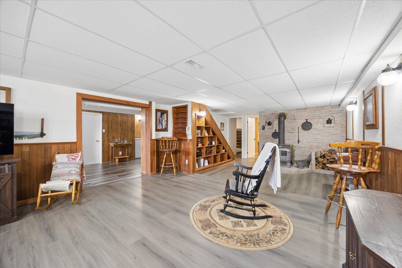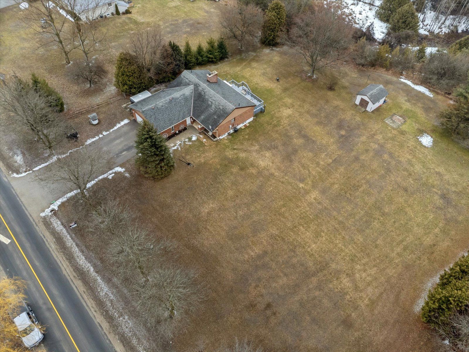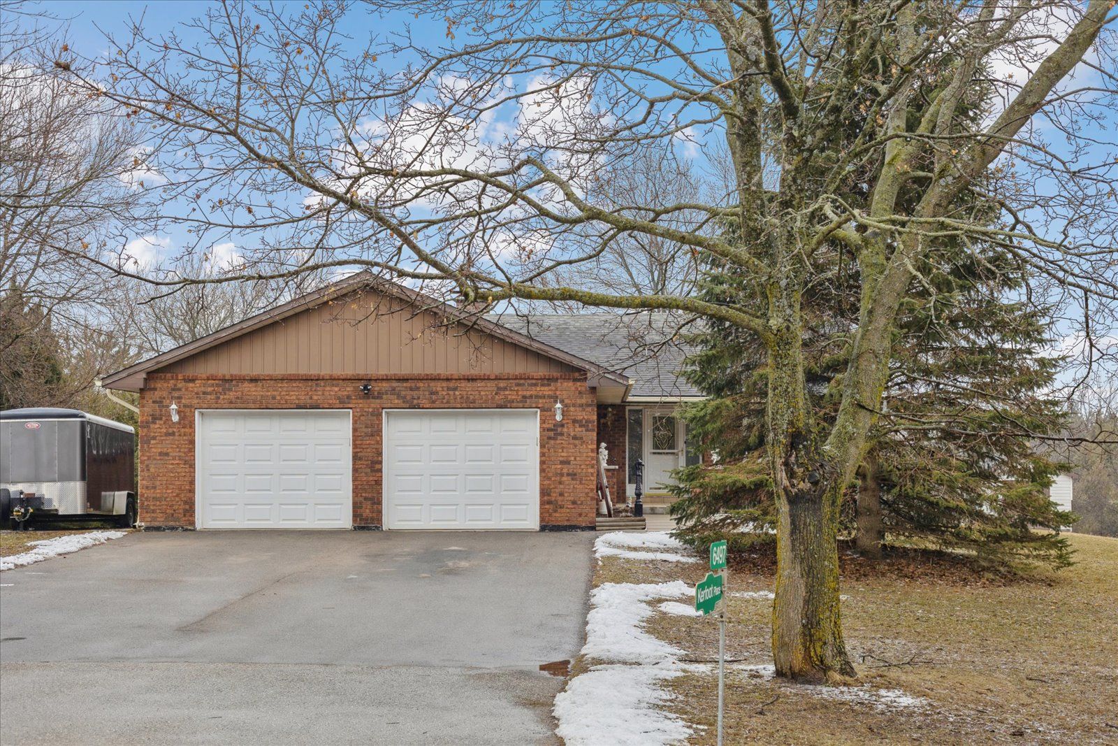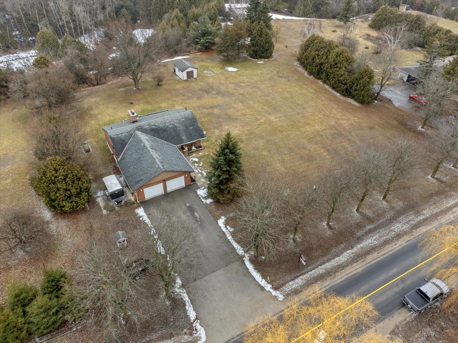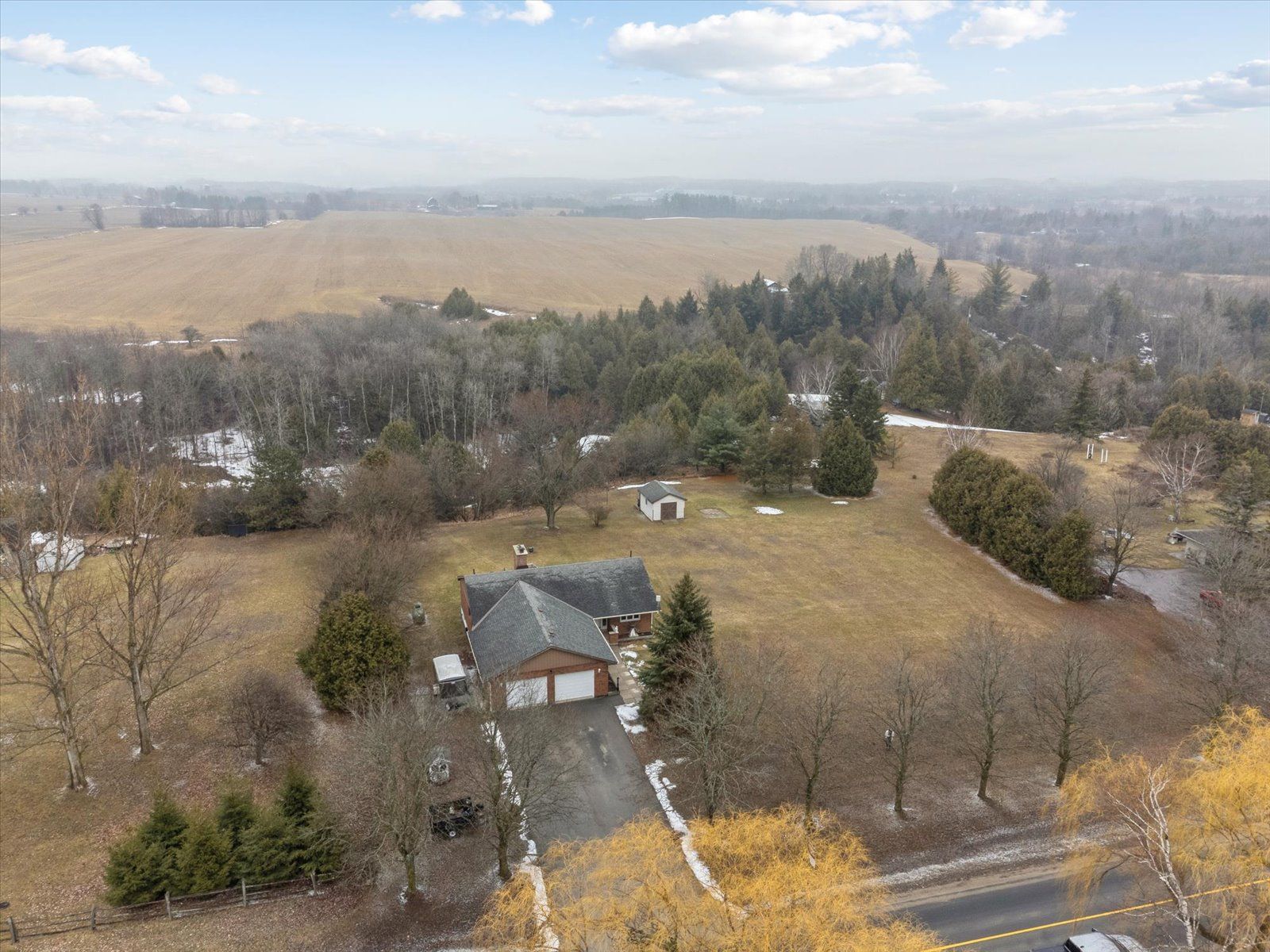 Rare opportunity for multi-generational living or country retreat. This impeccably maintained 1,475 square foot bungalow offers the perfect blend of rural tranquility and modern convenience. Situated on a sprawling, private lot of nearly one acre, the property is surrounded by serene natural landscapes while remaining just a short distance from local town amenities. The home is designed with accessibility in mind, featuring wide hallways and a flat door entrance that ensures easy movement throughout the main level. The interior boasts a functional layout with three bedrooms on the main floor and an additional bedroom in the expansive 1,300 square foot finished basement. The lower level has been recently enhanced with brand-new vinyl flooring and features a convenient secondary entrance leading directly to the heated garage. Recent mechanical and structural upgrades provide peace of mind for years to come, including a 200-amp electrical panel installed two years ago, central air conditioning replaced just last year, and eavestroughs updated three years ago. The exterior of the home is equally well-cared for, showcasing insulated garage doors installed six years ago and roof shingles replaced seven years ago. The massive lot includes a large storage shed and offers plenty of space for outdoor recreation or gardening. Whether you are looking for a move-in-ready family home with space for the grandparents or a peaceful escape with easy highway access, this property delivers exceptional value and quality.