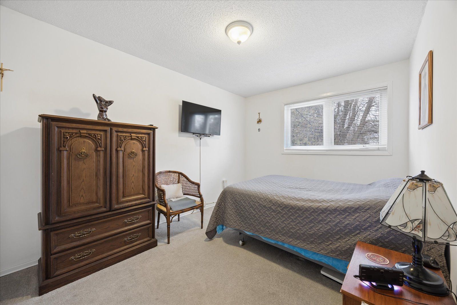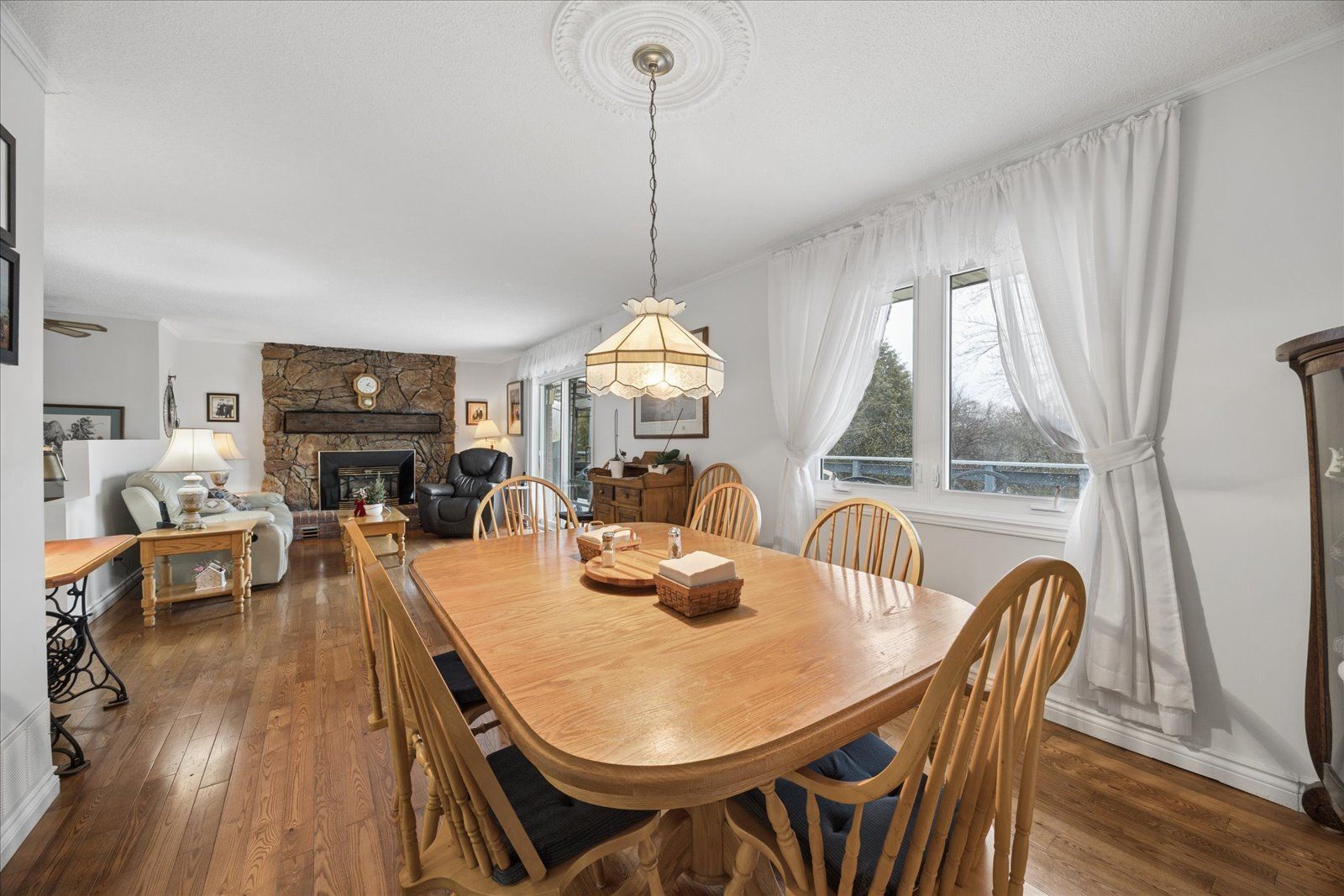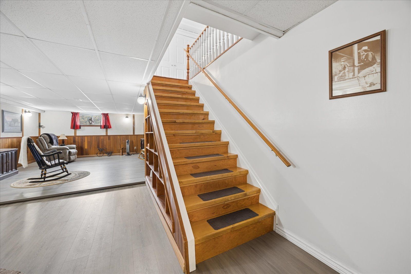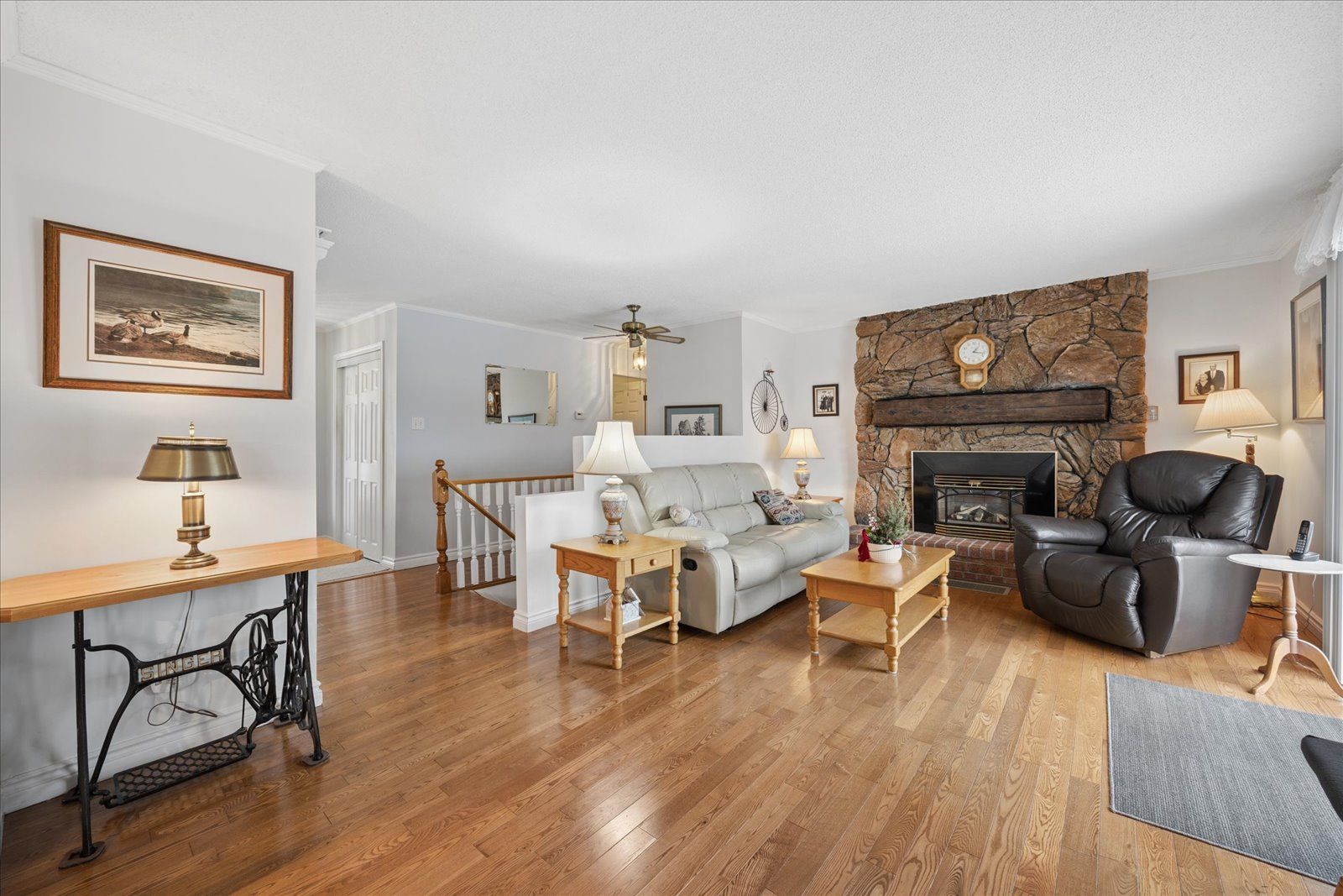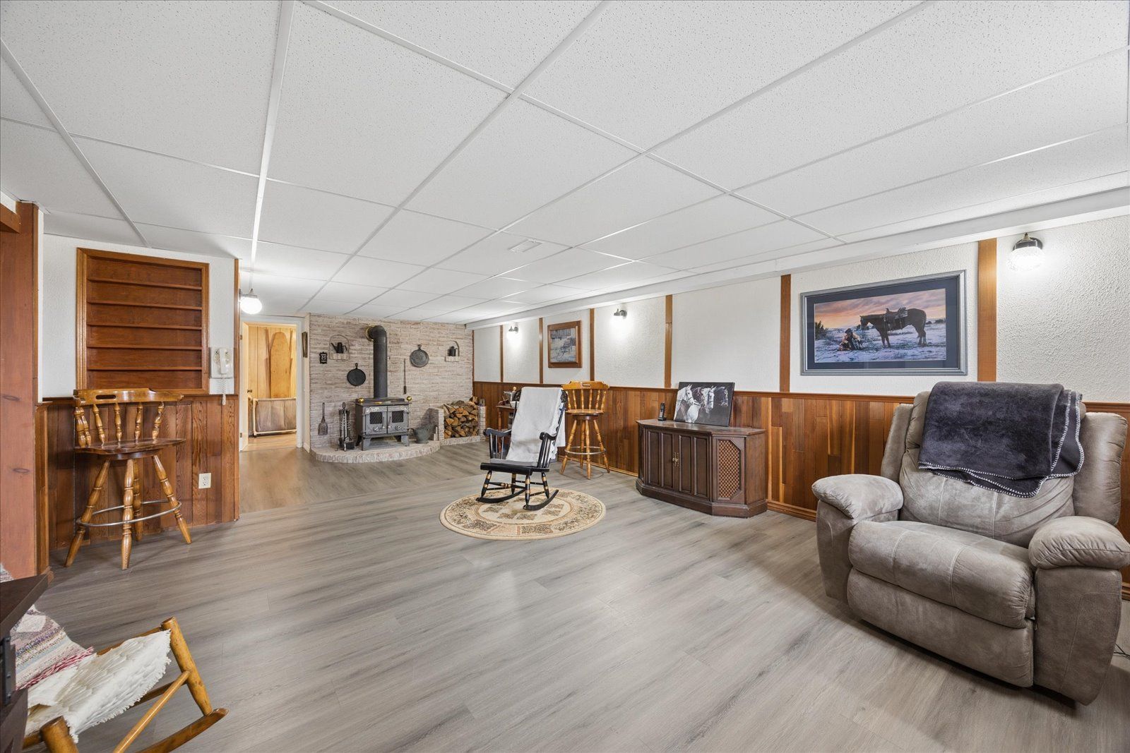 Rare opportunity for multi-generational living or country retreat. This impeccably maintained 1,475 square foot bungalow offers the perfect blend of rural tranquility and modern convenience. Situated on a sprawling, private lot of nearly one acre, the property is surrounded by serene natural landscapes while remaining just a short distance from local town amenities. The home is designed with accessibility in mind, featuring wide hallways and a flat door entrance that ensures easy movement throughout the main level. The interior boasts a functional layout with three bedrooms on the main floor and an additional bedroom in the expansive 1,300 square foot finished basement. The lower level has been recently enhanced with brand-new vinyl flooring and features a convenient secondary entrance leading directly to the heated garage. Recent mechanical and structural upgrades provide peace of mind for years to come, including a 200-amp electrical panel installed two years ago, central air conditioning replaced just last year, and eavestroughs updated three years ago. The exterior of the home is equally well-cared for, showcasing insulated garage doors installed six years ago and roof shingles replaced seven years ago. The massive lot includes a large storage shed and offers plenty of space for outdoor recreation or gardening. Whether you are looking for a move-in-ready family home with space for the grandparents or a peaceful escape with easy highway access, this property delivers exceptional value and quality.
