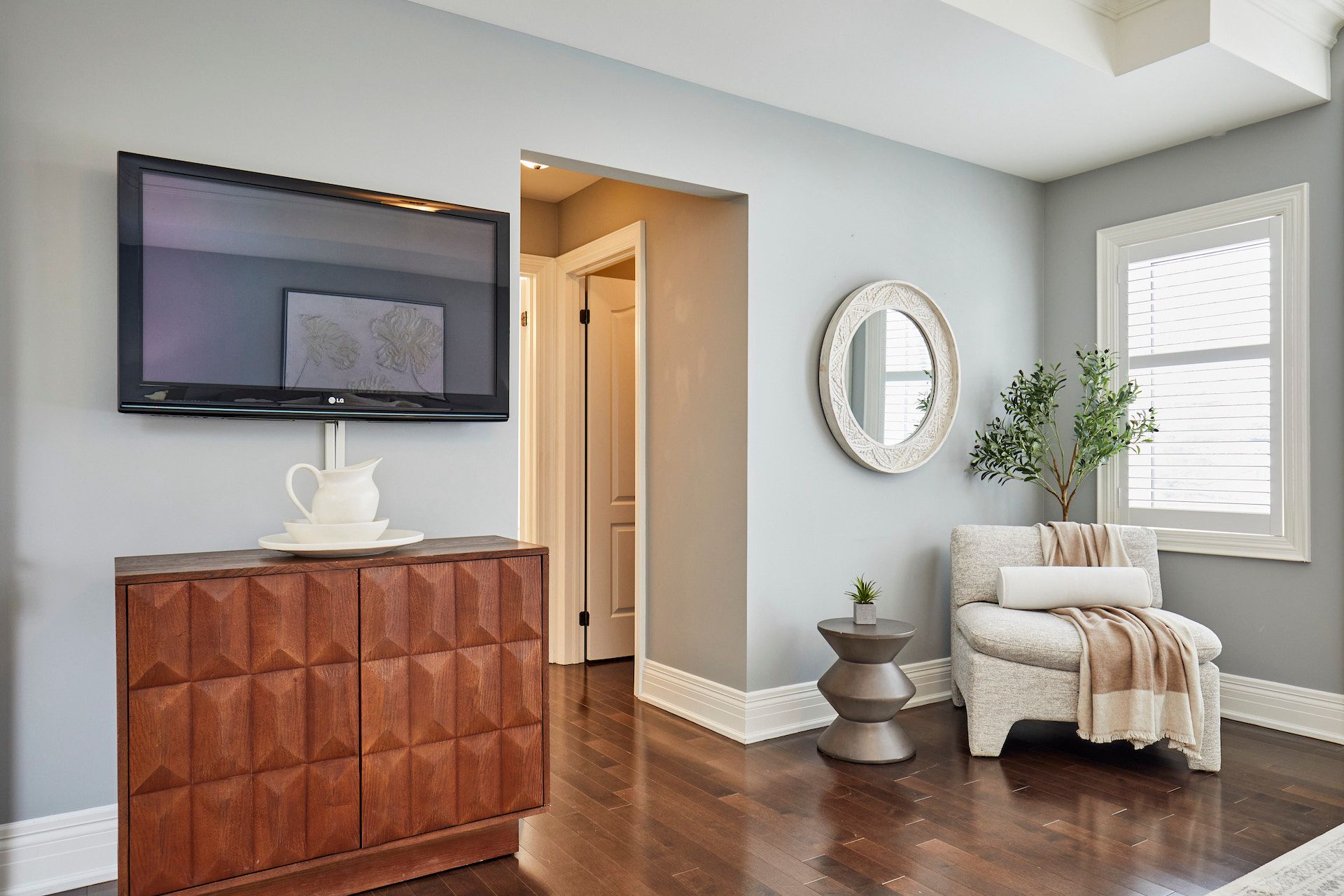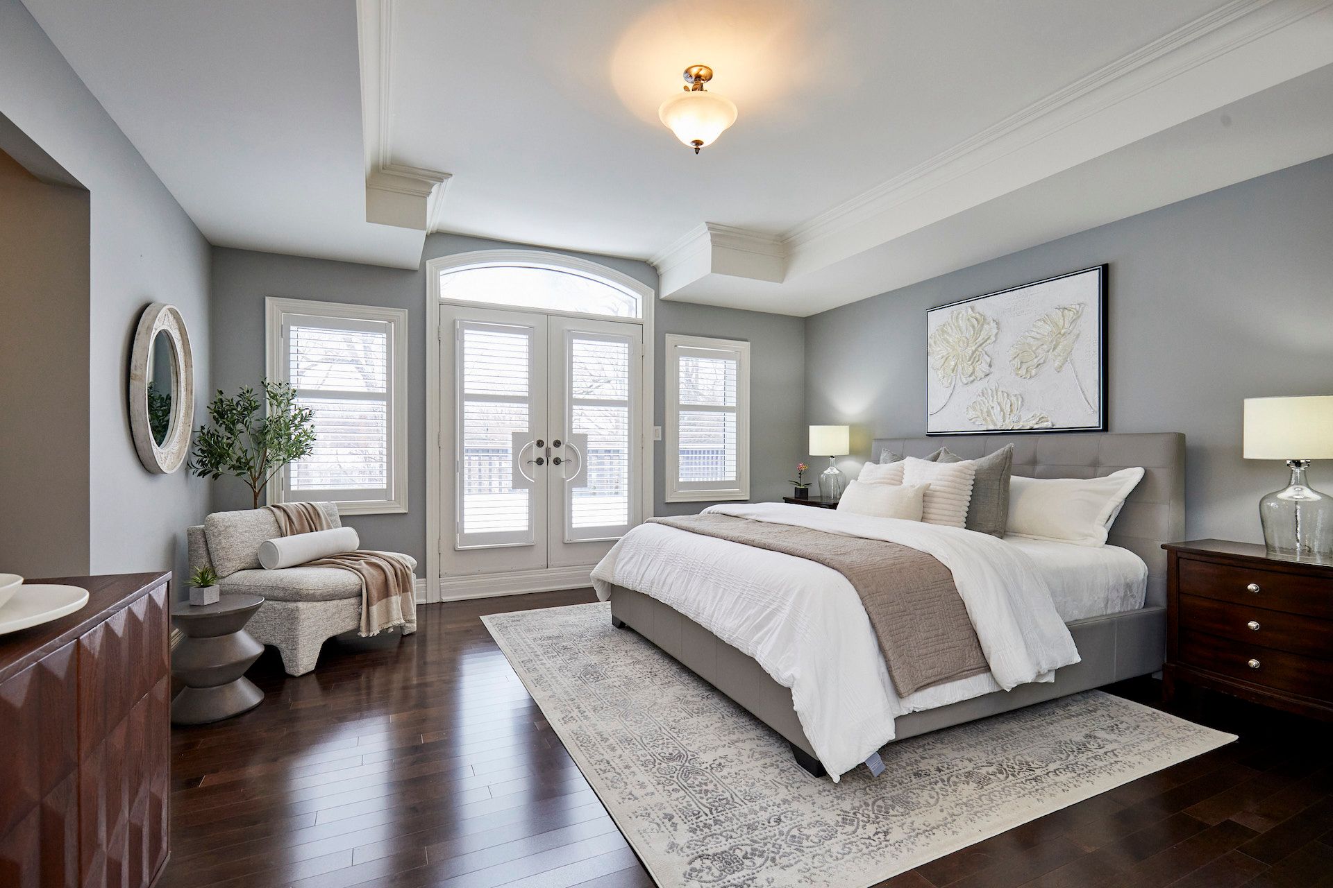 • Large primary bedroom with two walk-in closets and a private balcony.