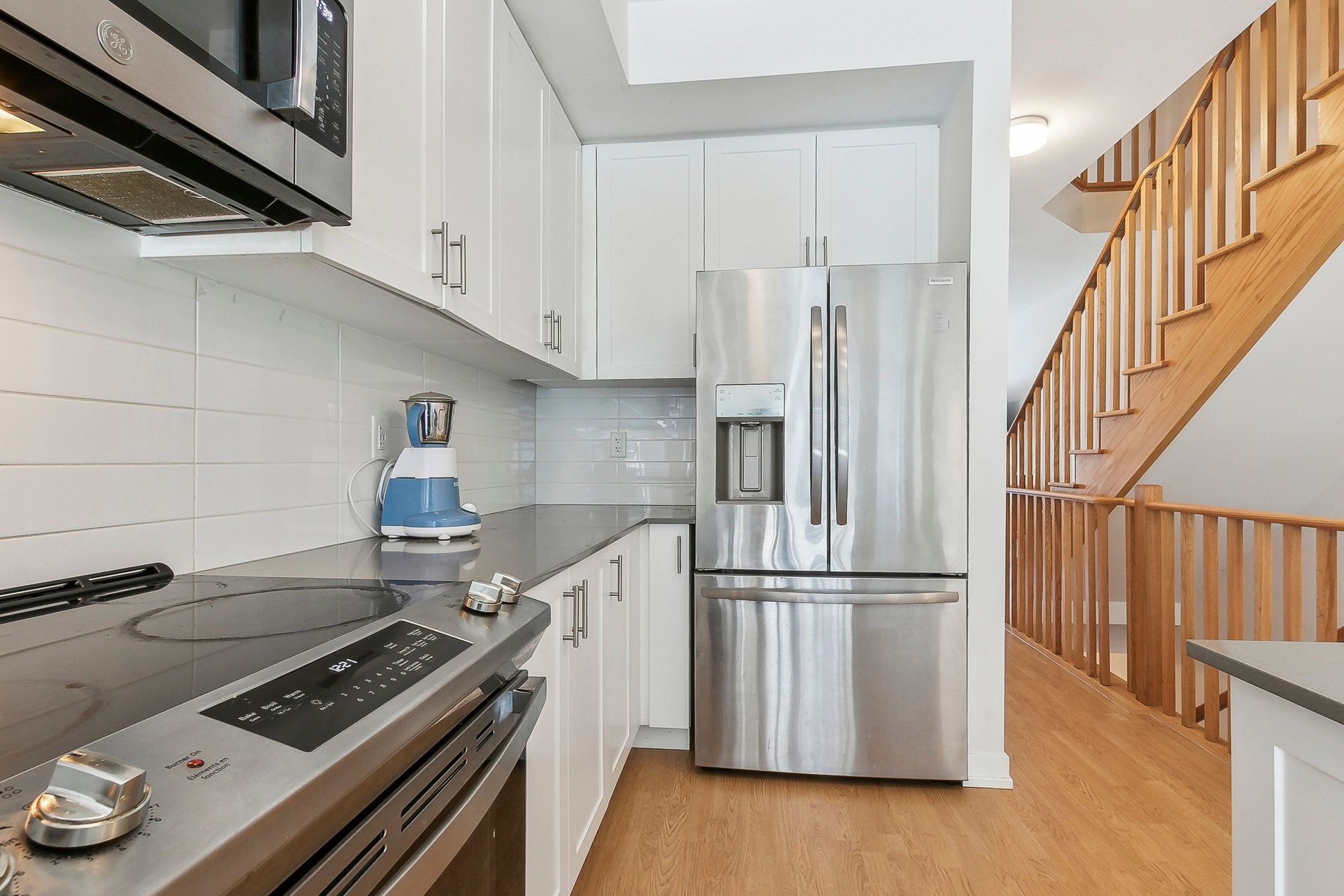 • Stylish kitchen with quartz countertops and stainless steel appliances.