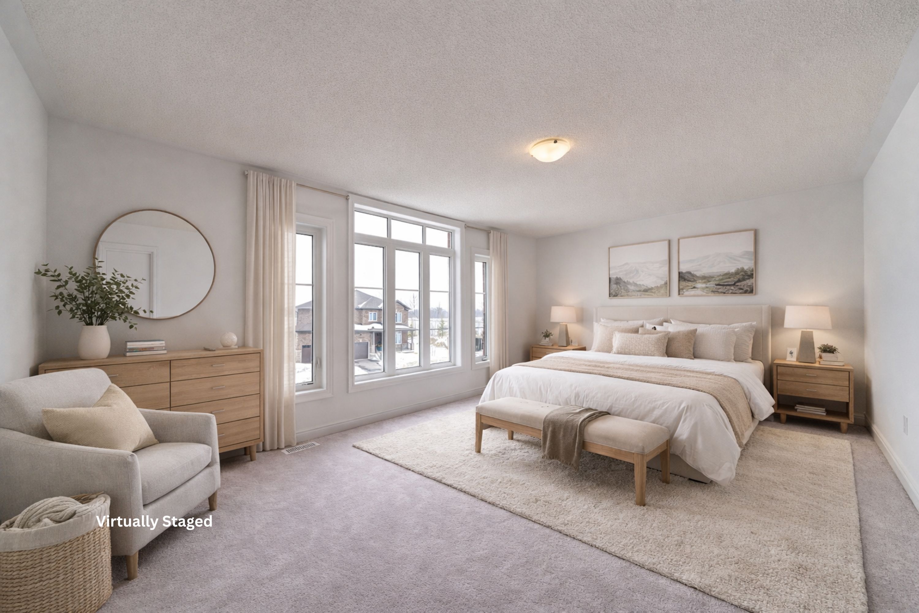 Set within the sought-after wasaga sands neighbourhood, this move-in ready 4-bedroom, 4-bathroom pine model by baycliffe communities offers over 2,500 sq ft of thoughtfully designed living space on an approximately 55' wide lot, providing a comfortable sense of space in a quiet residential setting. Inside, the main floor features 9-foot ceilings, hardwood flooring, and large windows that fill the home with natural light. The open-concept kitchen, living, and dining areas create a bright and welcoming space ideal for both everyday living and entertaining. The kitchen offers upgraded cabinetry, ample counter space, and a functional layout, while a main-floor powder room and convenient laundry room with garage access add everyday practicality. Upstairs, the second level offers four comfortable bedrooms and three full bathrooms. The primary suite includes a walk-in closet and a 5-piece ensuite with double vanity, separate shower, and soaker tub. Two bedrooms share a jack & jill bathroom, while an additional full bathroom provides convenient access for the fourth bedroom and guests. The unfinished basement with a rough-in offers the opportunity to create additional living space, a recreation room, home gym, or extra storage depending on your needs. Be the first to live in this move-in ready home, offering the confidence of modern construction, efficient systems, and a full tarion warranty beginning on the day of occupancy. Located in a quiet area surrounded by nature, this home is just minutes from schools, shopping, trails, and the world's longest freshwater beach, with collingwood and blue mountain resort a short drive away for year-round recreation.