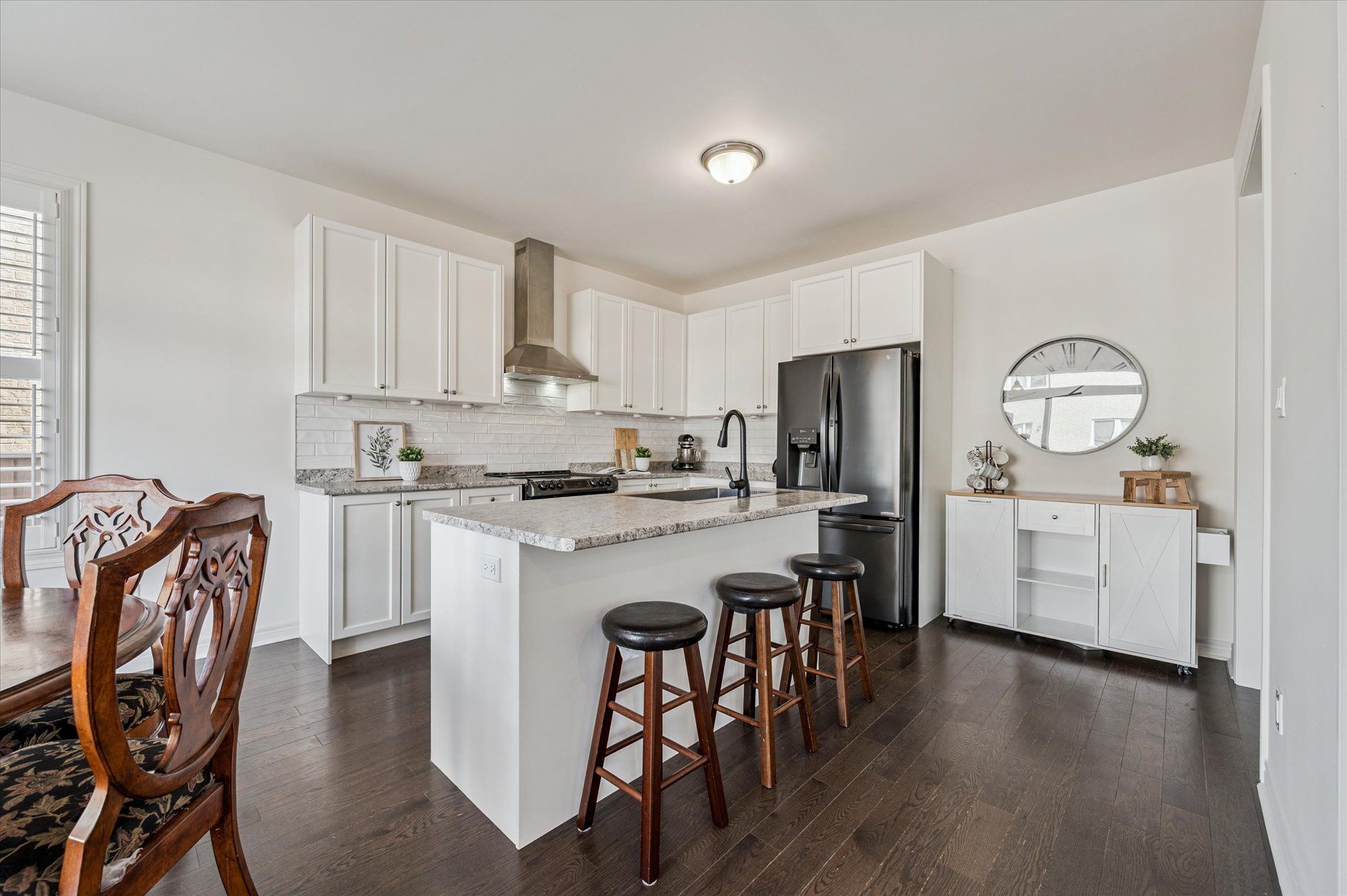 Welcome to the prestigious fairgrounds subdivision in the north end of paris, brant - a community proudly known as "canada's prettiest little town." this exceptional multi-generational home offers an impressive blend of space, comfort, and refined living in one of ontario's most charming communities. Featuring 4 + 1 bedrooms and 5 bathrooms, this beautifully designed residence offers almost 3,100 sq. Ft. Above grade plus a fully finished basement, delivering nearly 4,400 sq. Ft. Of total living space - ideal for large or extended families. The main floor showcases rich hardwood flooring, a welcoming family room with gas fireplace, elegant formal dining room, and a private main floor office - perfect for working from home. At the heart of the home is the chef's kitchen, fully equipped with appliances and designed for both everyday living and entertaining, while california shutters throughout the main and second floor add timeless sophistication throughout. Upstairs features four spacious bedrooms and convenient second floor laundry. The luxurious primary suite offers his and her closets and a spa-inspired ensuite. The three additional bedrooms are generously sized, with two sharing a convenient jack and jill bathroom, while the fourth enjoys its own private ensuite - providing ideal comfort and privacy for family or guests. The fully finished basement further expands the living space with additional bedrooms and versatile areas, perfect for extended family, guests, or a private in law setup. Outside, enjoy a double concrete aggregate driveway, fully fenced yard, and a gas line hookup for your bbq, making outdoor entertaining easy. Homes of this size and flexibility rarely come available in this highly sought-after neighbourhood. Experience the space, and lifestyle your family deserves.