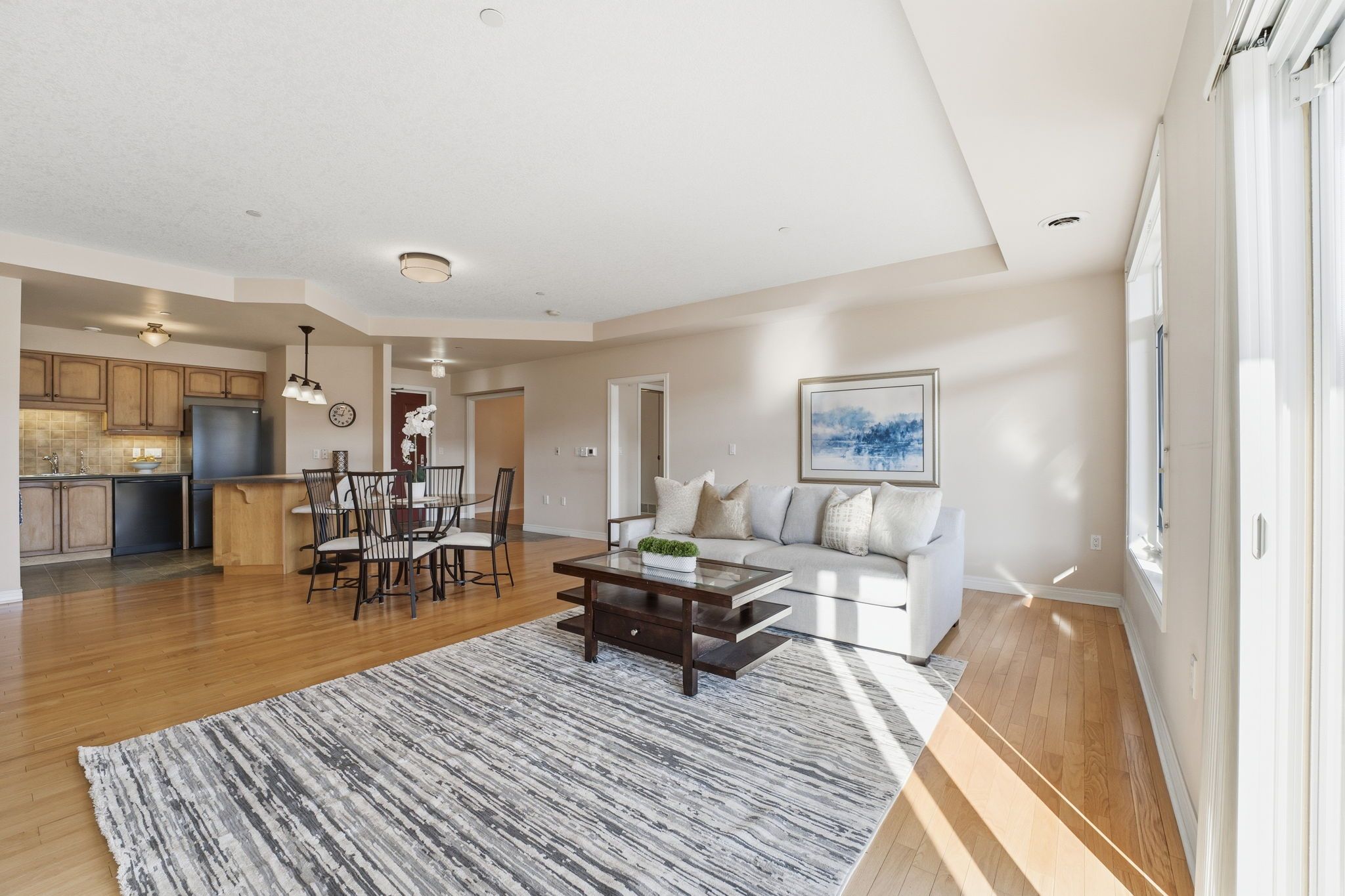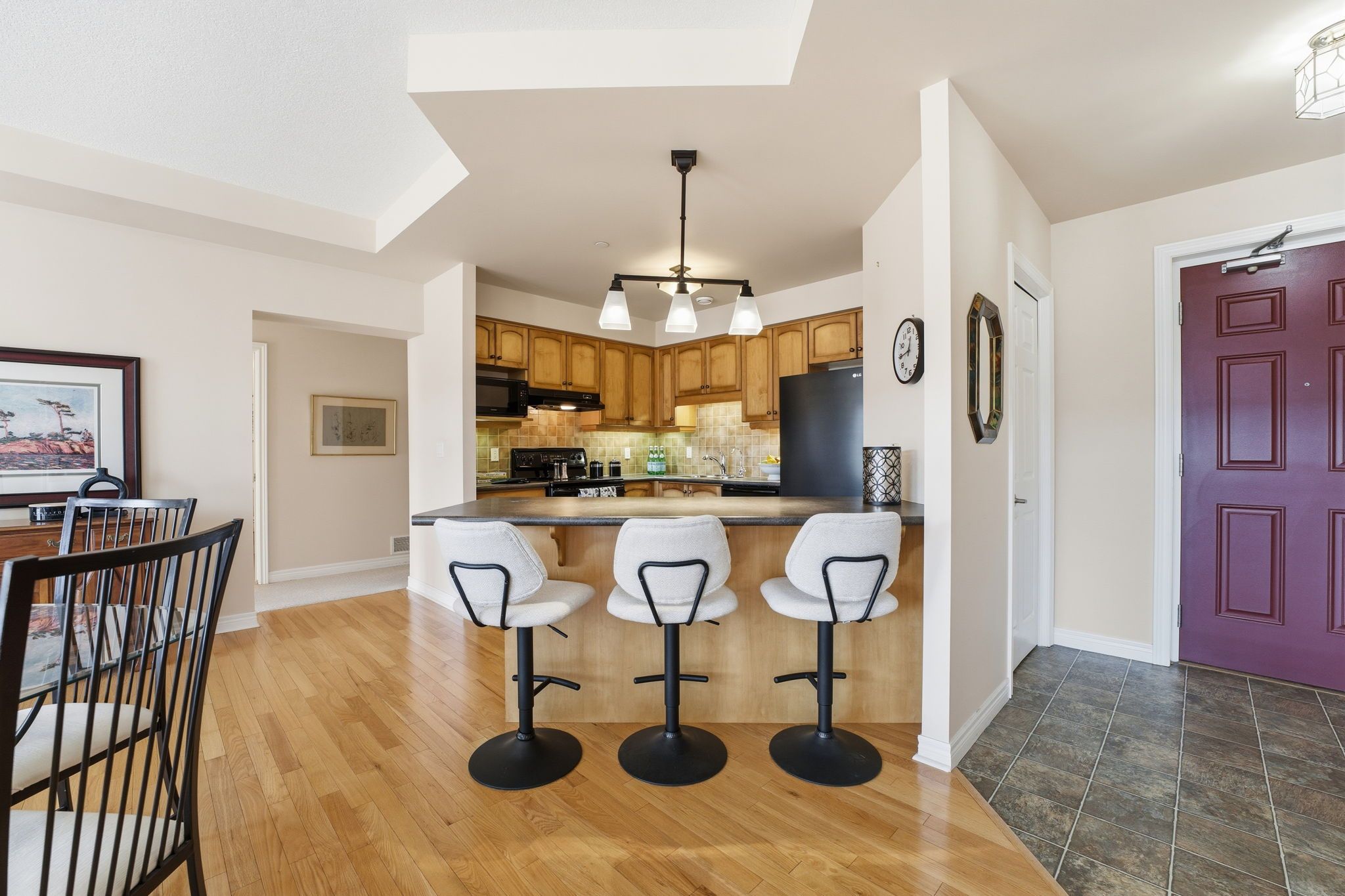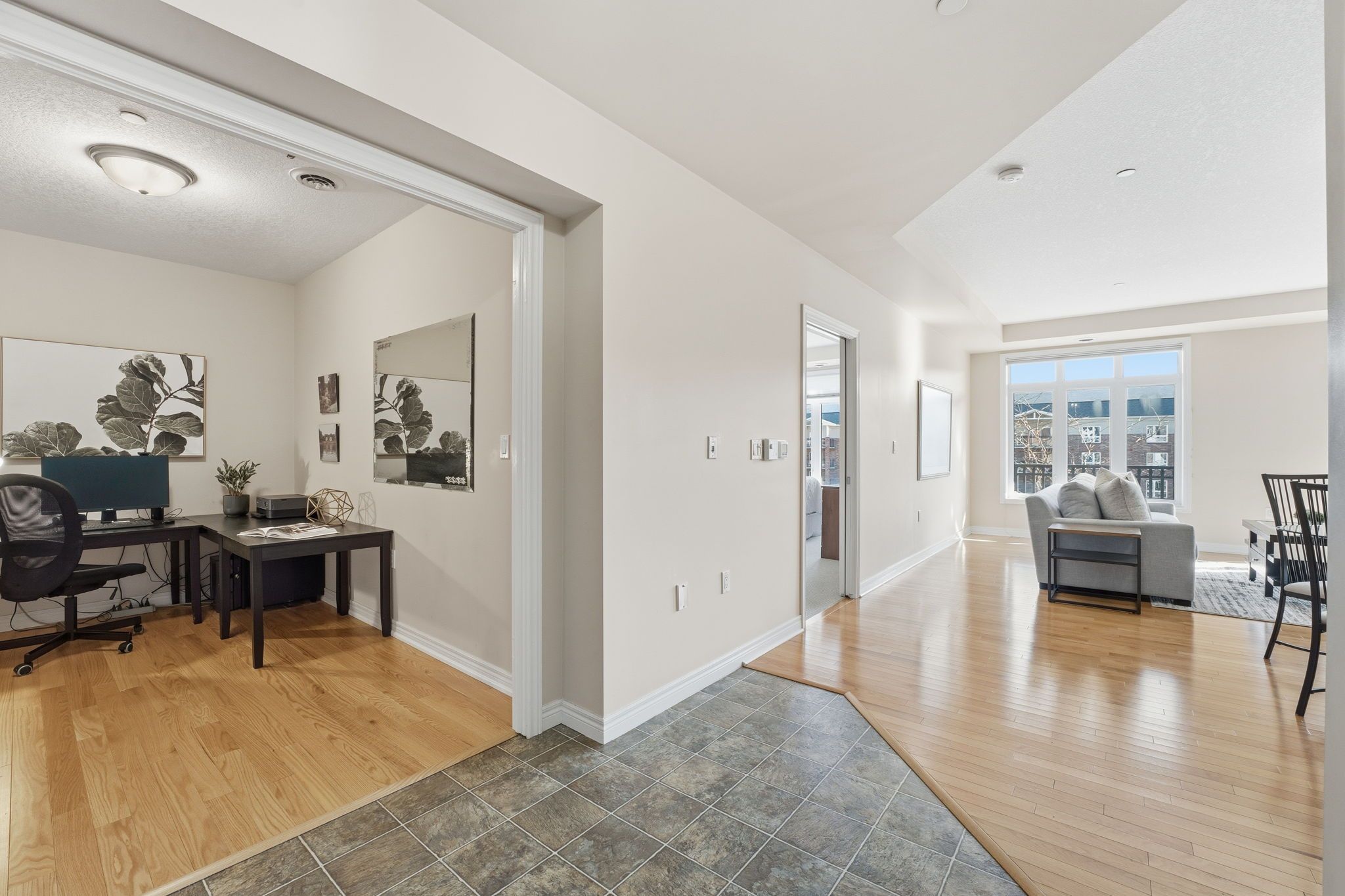 Welcome to 301-65 bayberry drive, a bright and beautifully cared-for 2-bedroom plus den condo in the sought-after wellington building at the village by the arboretum. This periwinkle suite feels instantly welcoming with its fresh, neutral décor and sunny south-facing exposure that fills the space with warmth throughout the day. The kitchen is truly the heart of the home - complete with a generous island that's perfect for cooking, gathering, or simply catching up with friends over coffee. The great room offers elegant hardwood floors and wonderful natural light thanks to the many large windows, creating an inviting space to relax or entertain, and spacious enough for living & dining. A wide foyer sets a gracious tone as you enter, leading to a versatile den that makes an ideal home office, reading corner, or quiet retreat. The primary suite provides a peaceful place to unwind, featuring a 3-piece ensuite with a walk-in shower and a spacious walk-in closet. In the guest wing, you'll find a comfortable second bedroom and a full bath - perfect for overnight visitors. The suite also includes an in-unit laundry room for everyday convenience. Step outside onto the balcony and enjoy a generous outdoor space, ideal for morning coffee or an evening breeze. Additional comforts include a secure indoor storage locker and an extra-wide underground parking space - thoughtful touches that make daily living effortless. Beyond the suite itself, the wellington offers an exceptional lifestyle. Residents enjoy access to the village's outstanding amenities and an active, welcoming community that truly defines adult living at its best. This lovely condo is ready to be enjoyed - don't miss the opportunity to make it yours.