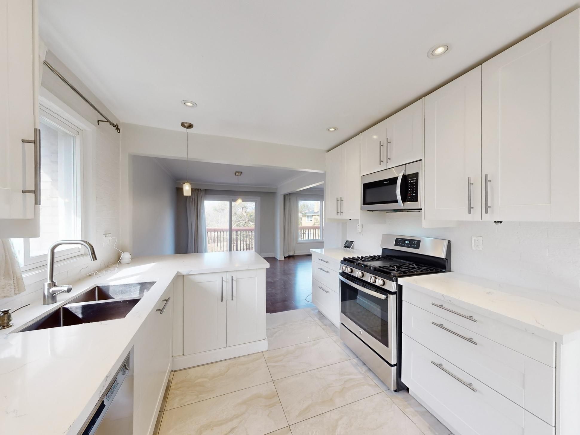 Look no further for your dream home! This delightful sunlit bungalow sits on a peaceful street, surrounded by lush mature trees. The main floor has been fully renovated, showcasing an inviting open-concept kitchen, a serene living and dining area that opens to a stunning backyard. Step out onto the spacious deck to enjoy picturesque sunsets. Hardwood floors flow throughout the main level, which accommodates 3 bedrooms and 2 bathrooms. The above-ground basement, accessible via a separate entrance, features 2 bedrooms, 1 bathroom, a kitchen, a living room, and a family room. Conveniently located within walking distance to sheppard subway, fairview mall, and excellent schools offering french immersion, gifted, public,and catholic programs, as well as daycares. Plus, easy access to the go station and major highways (401/dvp/404). Extras: