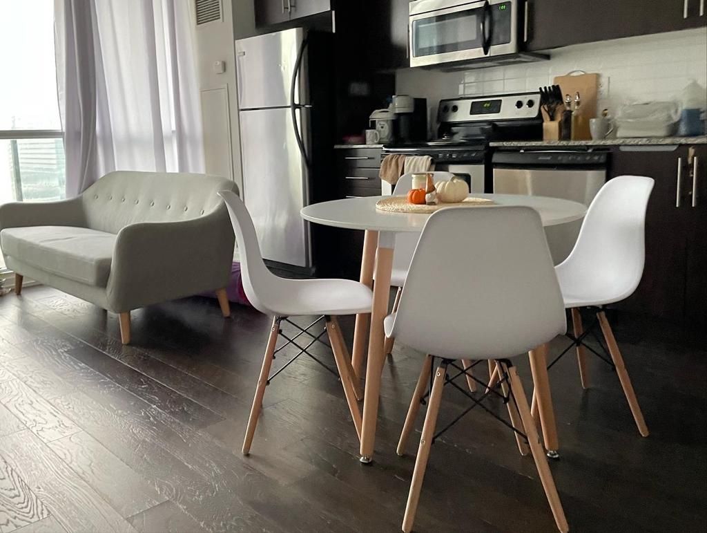 Amazing furnished bachelor condo at maple leaf square in the heart of downtown! High-floor unit with a large west-facing balcony showcasing panoramic views of the city, lake, and cn tower. Floor-to-ceiling windows with natural sunlight. Fully furnished with furniture shown in the photos-move-in ready. Convenience locations, steps to longo's, direct indoor access to union station and the path. Steps to scotiabank arena, rogers centre, harbour front, entertainment district, and financial district. Modern building with excellent amenities and 24-hourconcierge.