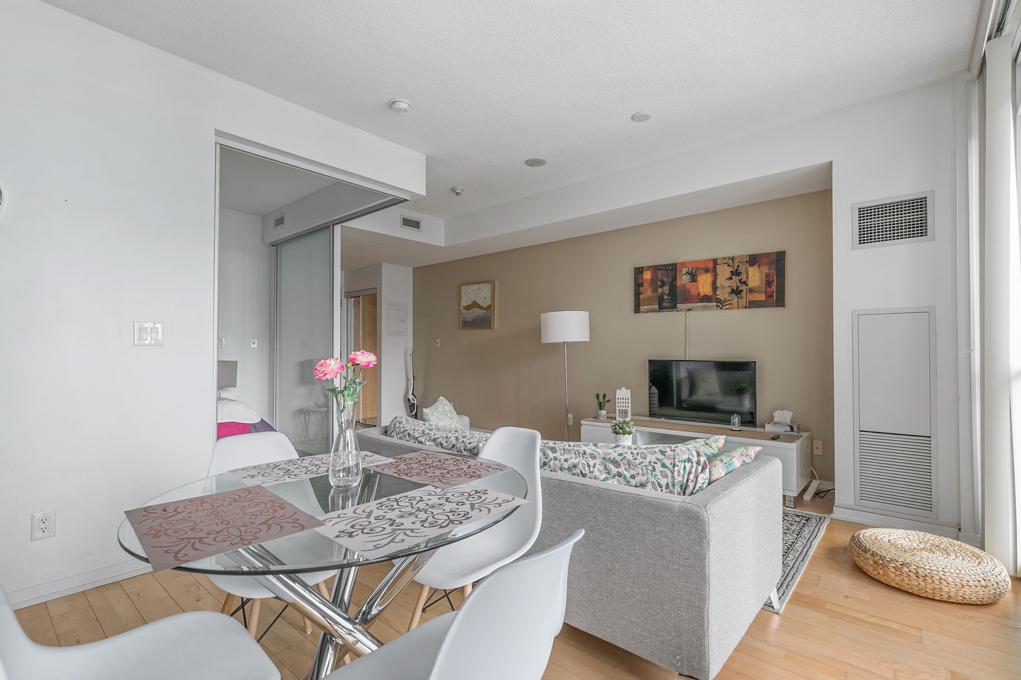 • Open-concept suite with modern finishes and stunning city skyline views.