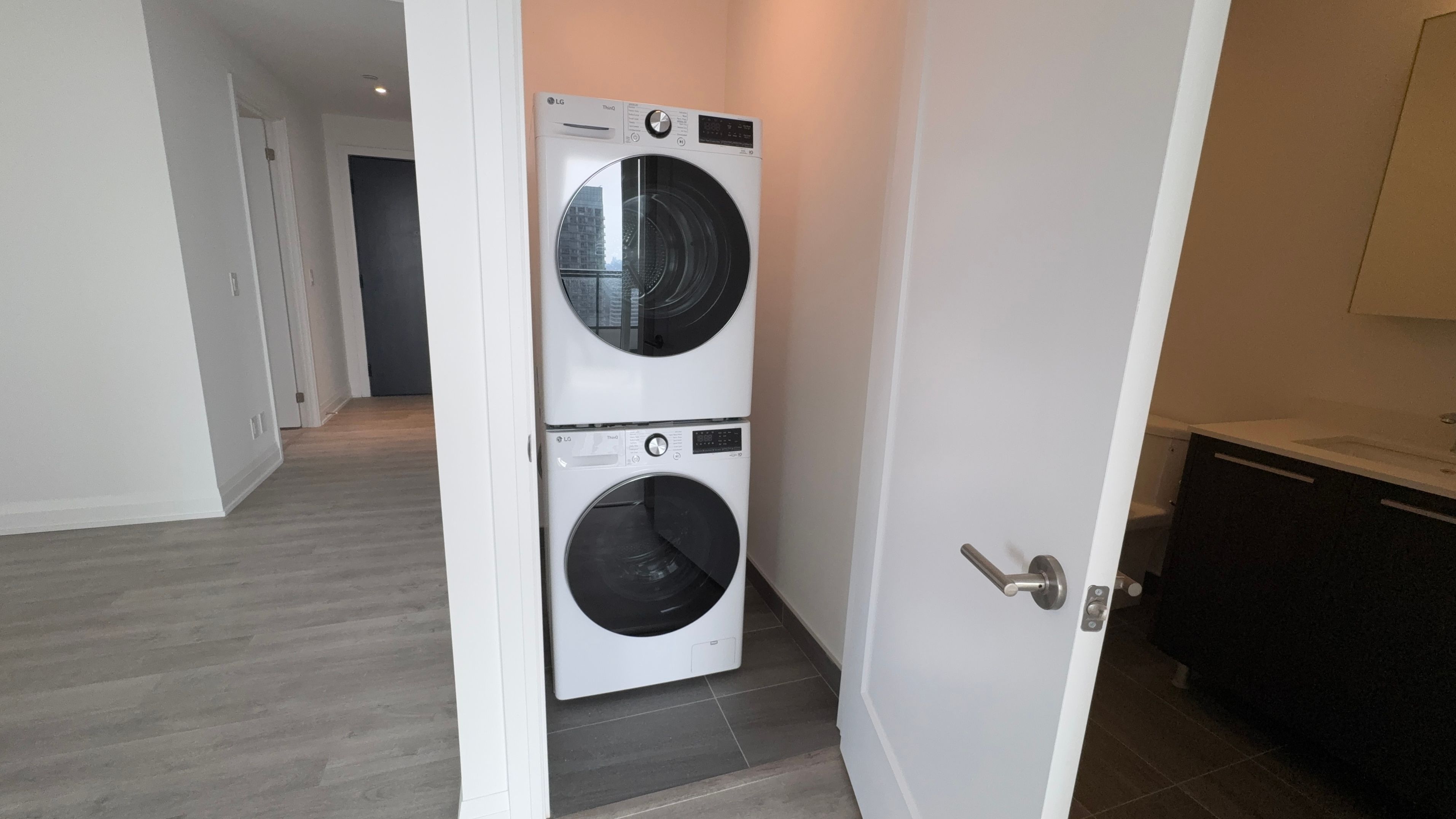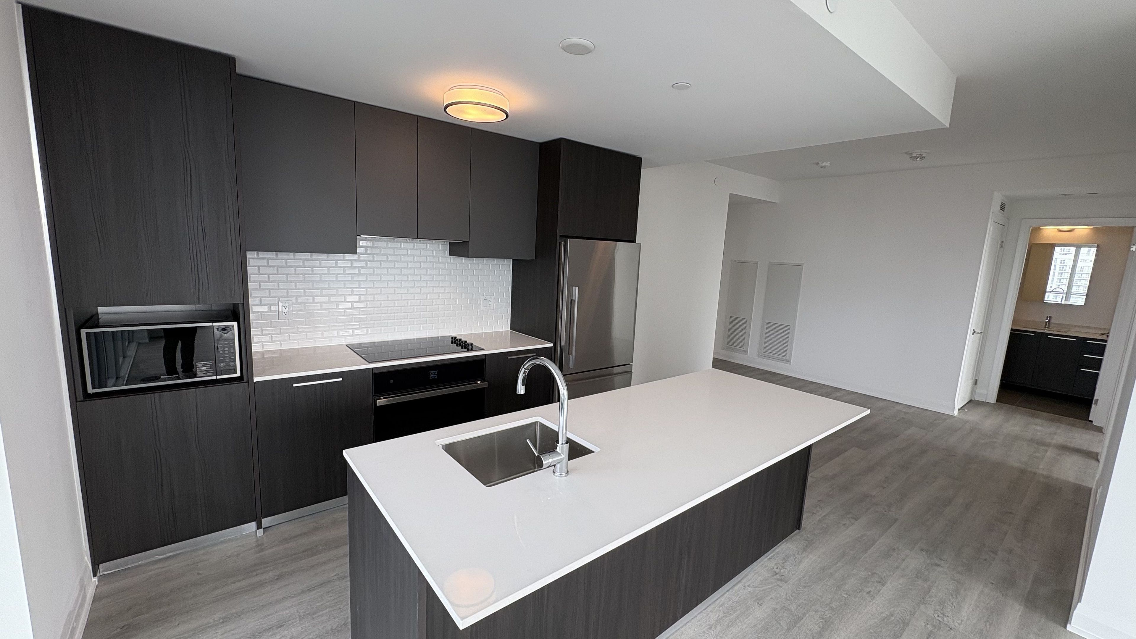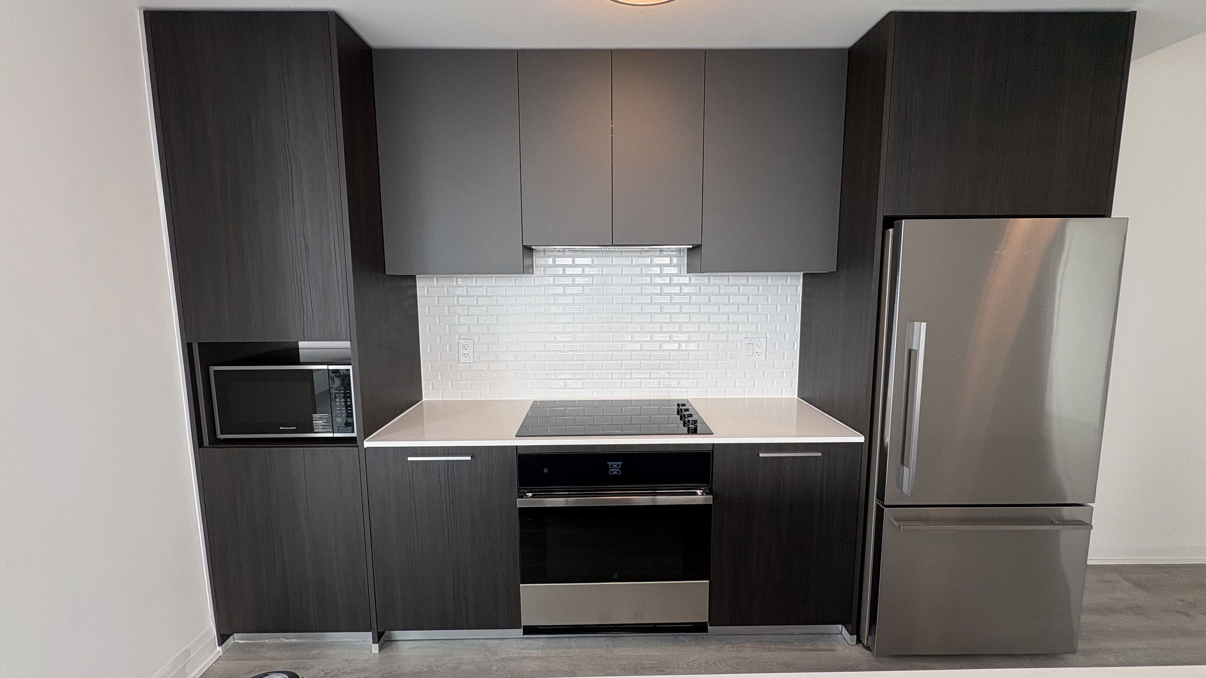 • Modern kitchen featuring quartz countertops and integrated appliances.