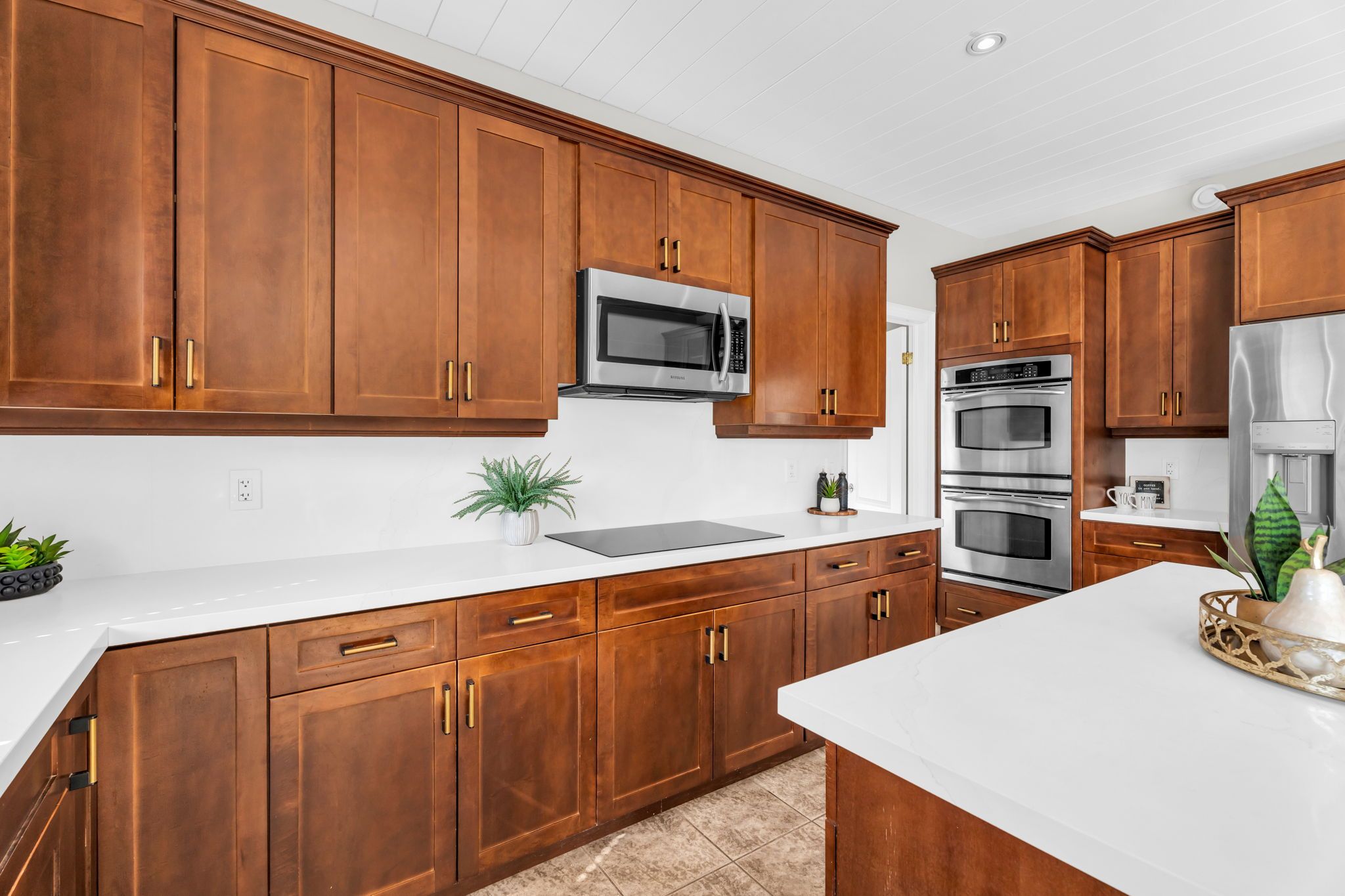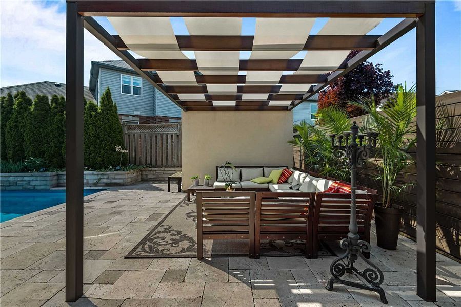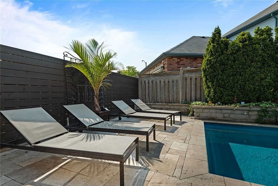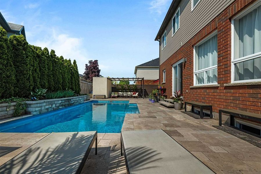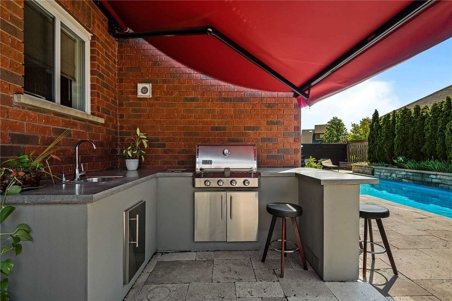 • Enjoy a stunning backyard with a pool and outdoor kitchen.