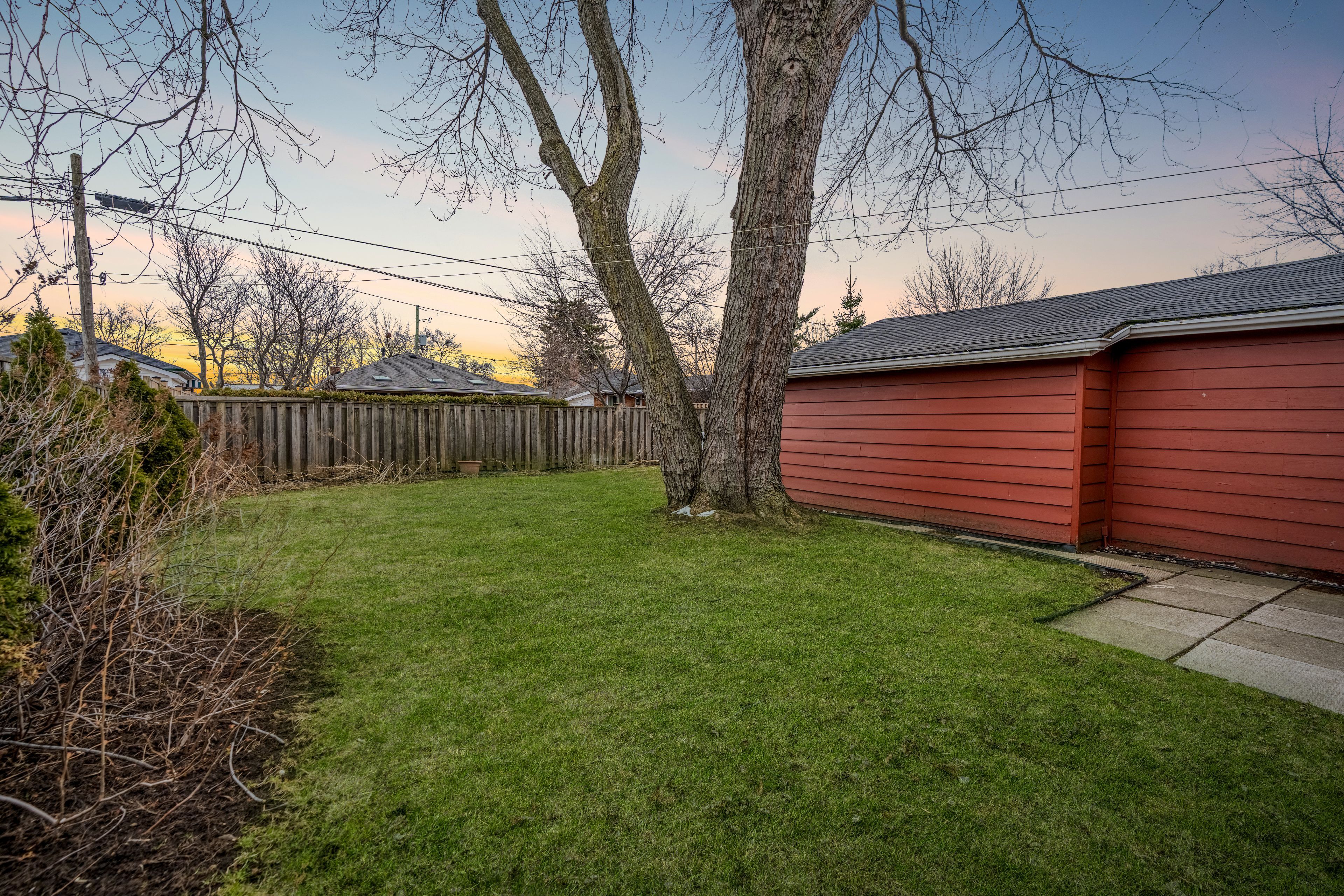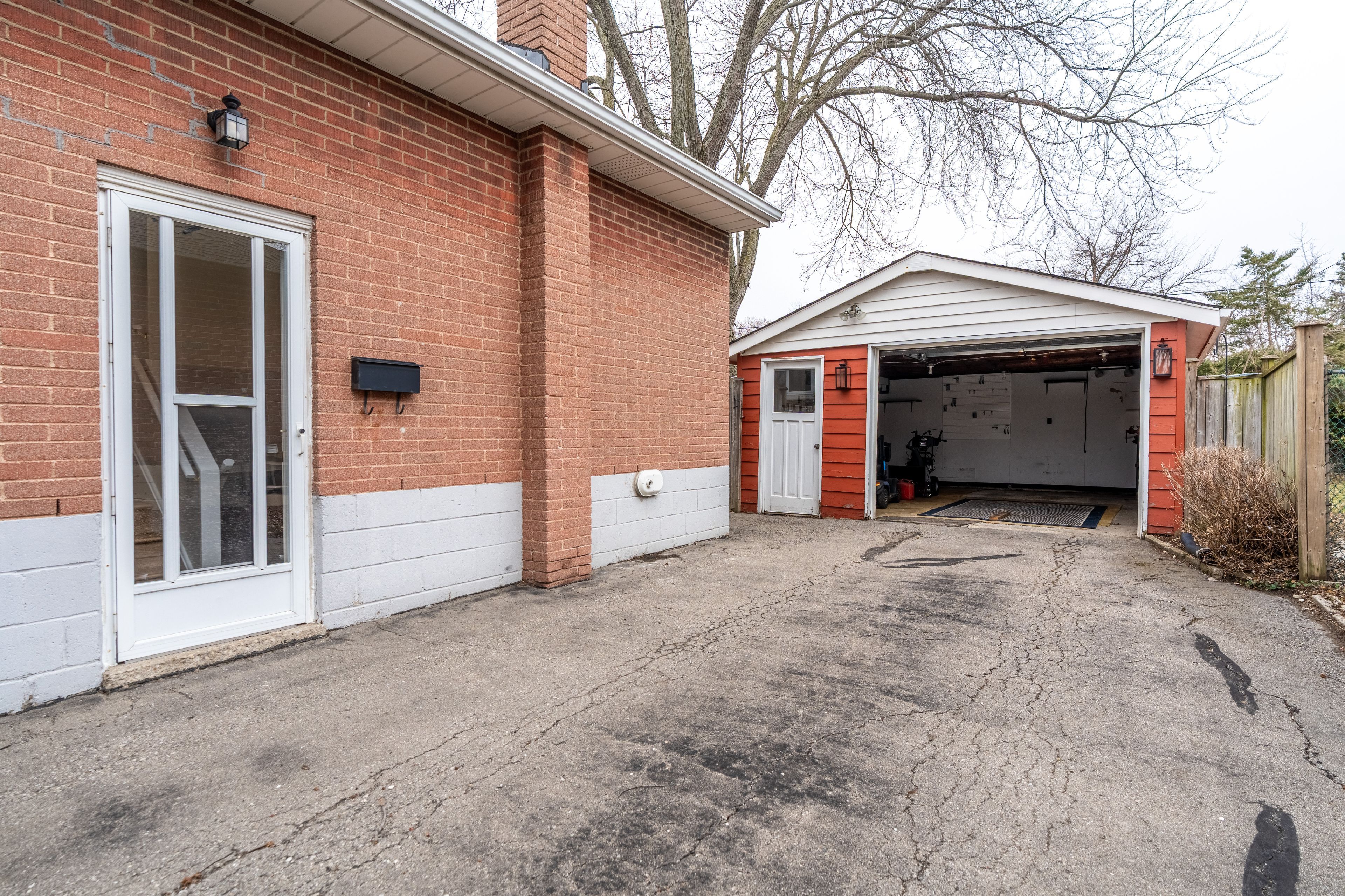 • Spacious lot with parking for up to five cars and a detached garage.