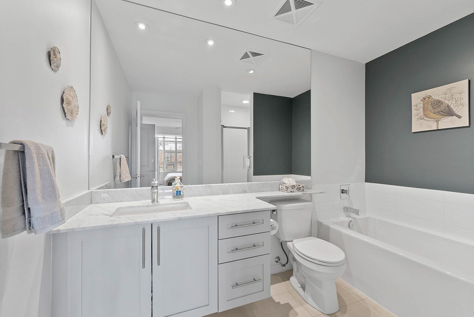 • Bright living space with 9-ft ceilings and abundant natural light from oversized windows.