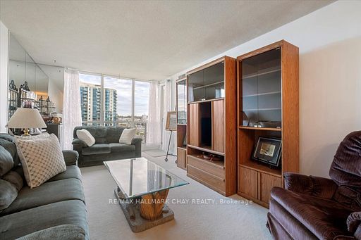 Welcome to waterfront living at its finest in the sought-after marina bay community in barrie. Rare private storage locker included with this spacious 1-bedroom suite offering breathtaking views over kempenfelt bay. Floor-to-ceiling windows fill the open-concept living and dining area with natural light while showcasing panoramic water views. The generous layout offers flexibility for entertaining or relaxing, with a seamless walk-out to your private balcony where you can enjoy morning sunrises, park scenery, and the tranquil waterfront setting. The kitchen features abundant cabinetry and counter space, ideal for everyday living or hosting guests. The spacious primary bedroom includes a large walk-in closet, providing both comfort and functionality. Additional highlights include underground parking and access to exceptional building amenities such as an indoor pool, sauna, hot tub, fitness room, party room, and games room. Step outside and enjoy your moments from waterfront walking trails, parks, and vibrant local attractions - truly a lifestyle location. This pet-friendly building also offers a welcoming community atmosphere with plenty of social activities to enjoy. Whether you're a first-time buyer, downsizer, or investor, this is a rare opportunity to own a waterfront suite with incredible views, valuable storage, and resort-style amenities in one of barrie's most desirable locations. Steps to the go train, public transit, shopping, and minutes to hwy 400.
