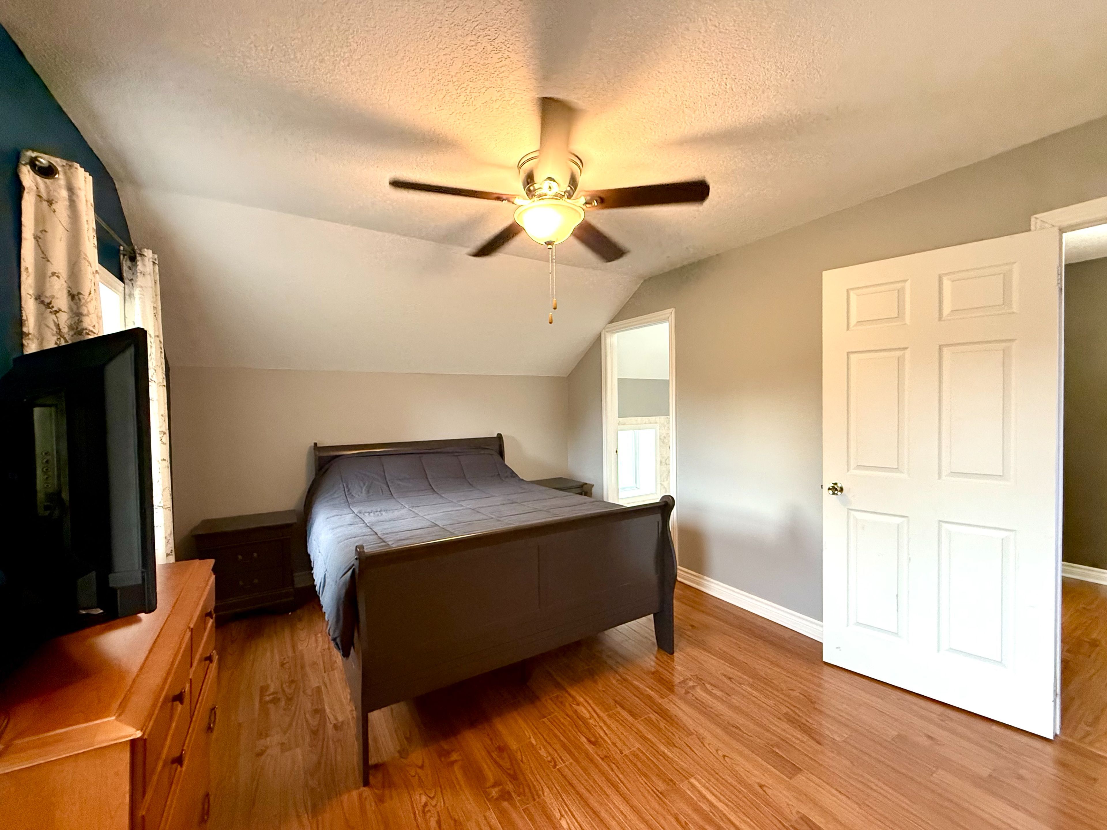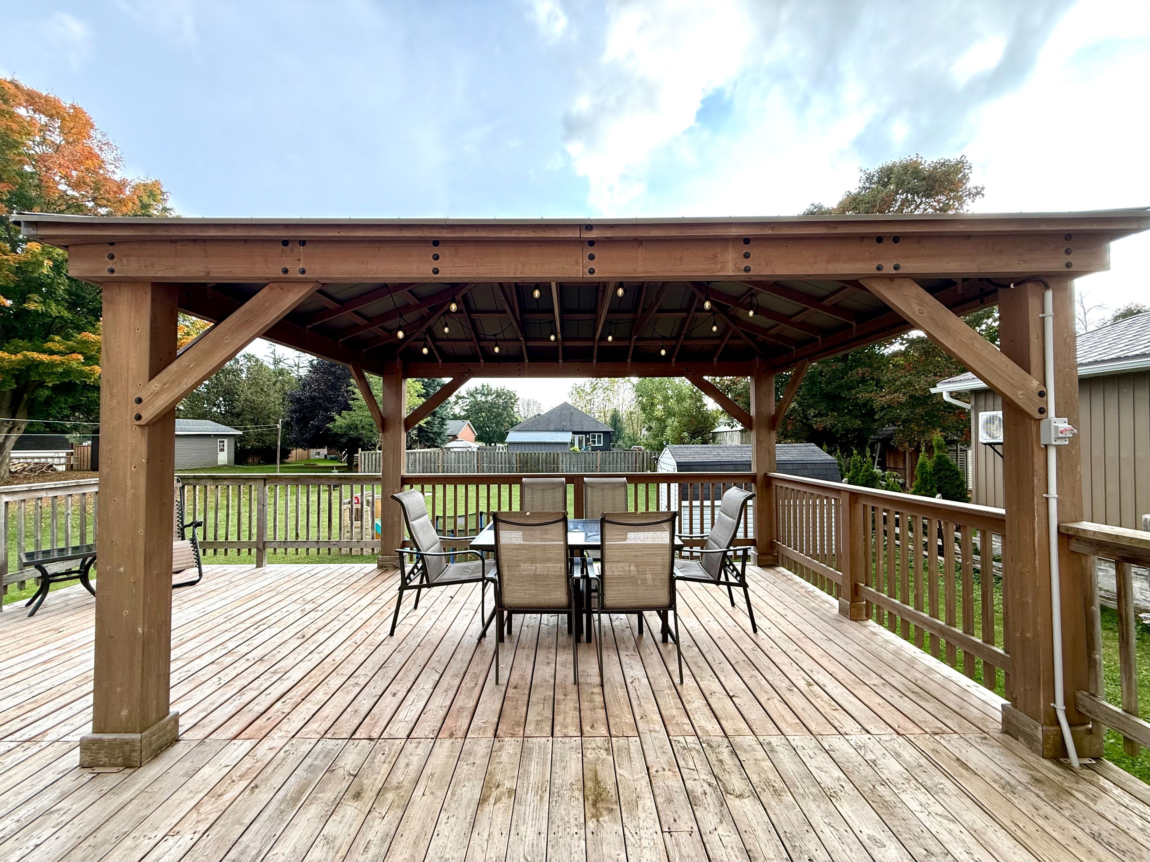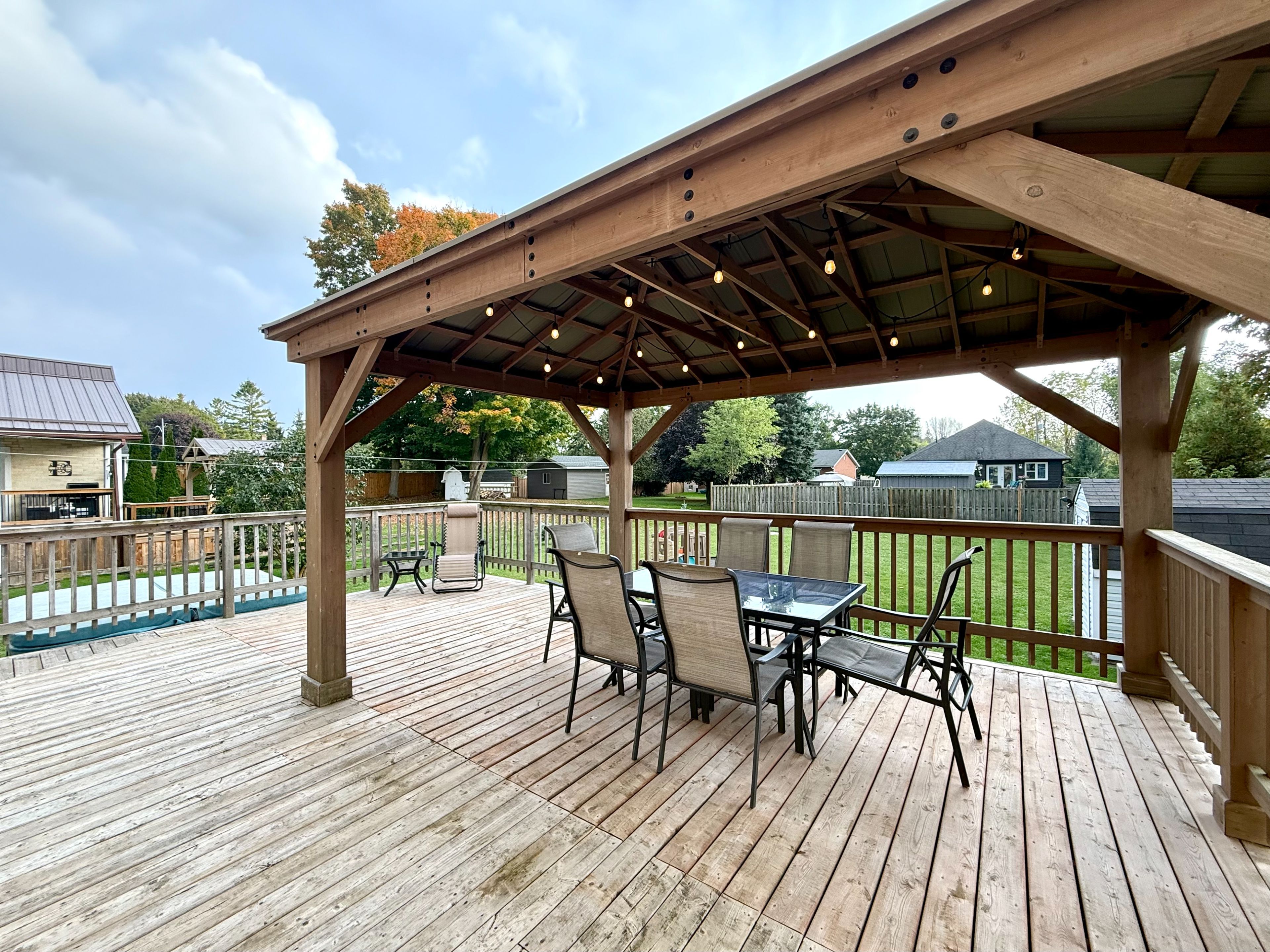 • Large backyard with a spacious deck and hot tub for gatherings.