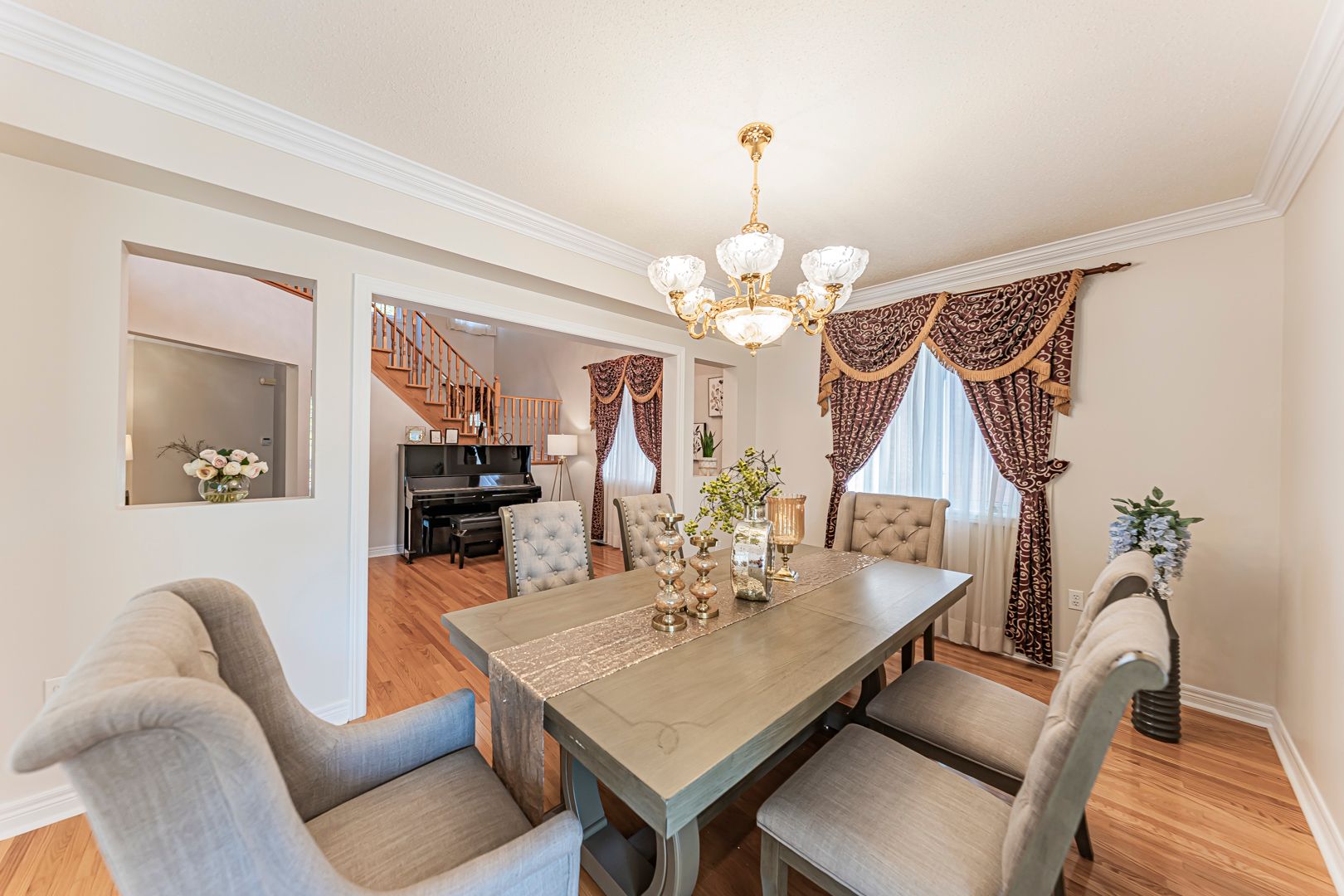 Sun-filled and beautifully maintained, this prestige richmond hill home sits in a prime diamond location with fresh paint and timeless upgrades throughout. The bright, open layout features a designer chandelier, tiled foyer, gourmet kitchen with granite countertops and custom backsplash, hardwood floors, crown mouldings, and a stunning spiral staircase opening to a soaring living room. An eat-in kitchen walks out to a private patio, perfect for family gatherings and entertaining. The upper level offers 4 spacious bedrooms, while the finished walk-out basement adds 2 bedrooms, a private kitchen, and versatile living space ideal for extended family or guests. Just minutes to costco, top-ranked richmond hill high school, shopping, highways, and the richmond green recreation centre, this elegant home is move-in ready in a vibrant, welcoming community.