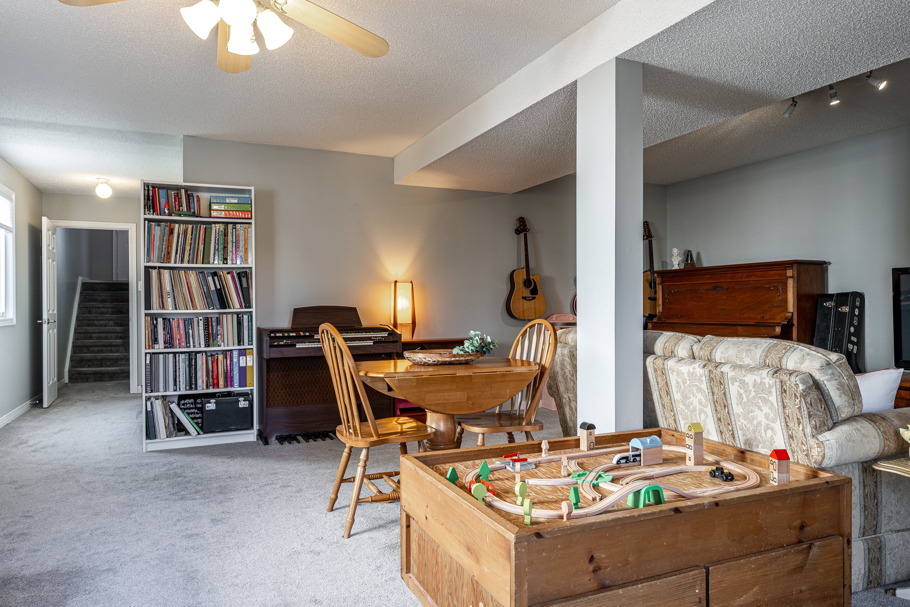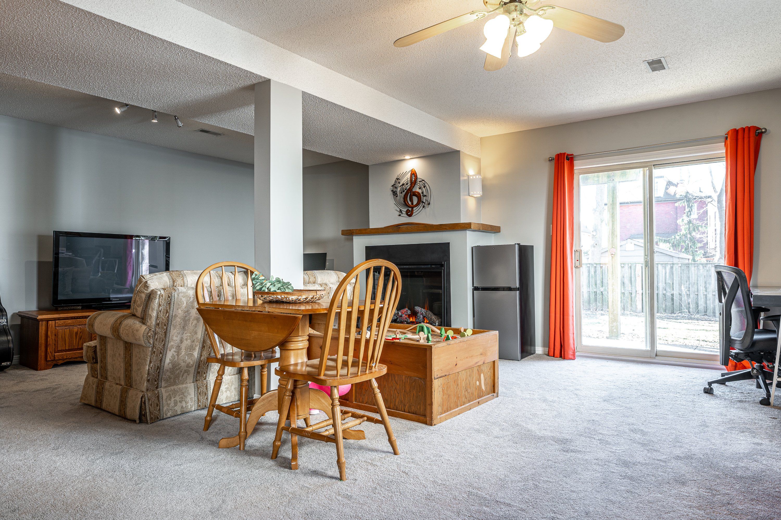 • Lower level has an oversized family room with natural light and a fireplace.