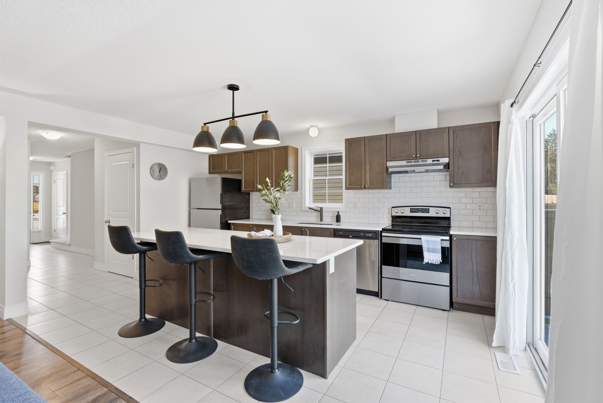 Located in one of bracebridge's most sought after, family-friendly neighbourhoods. This modern, two-storey home offers comfort, style, space and an excellent layout. Built in 2018 it has 4 bedrooms, 2. 5 bathrooms and over 2,000 feet of furnished living area. The kitchen is bright and functional with a large island, beautiful quartz countertops, a pantry and ample storage. The open-concept living room features a cozy electric fireplace and is amazing for relaxing, dining, watching sports/movies or entertaining family and friends. The backyard is fully fenced, with convenient hook-up for natural gas bbq. Upstairs the primary bedroom has an ensuite and dual walk-in-closets. The additional bedrooms adapt easily to kids rooms, guests and a home office. Downstairs the lower level is ready for whatever your heart desires, a home theatre/ gym and games room. An attached two car garage, municipal services, central air, gas heating, high speed fibre internet and double wide driveway. Great location, close to all amenities and turn key move in ready. Book your showing today.