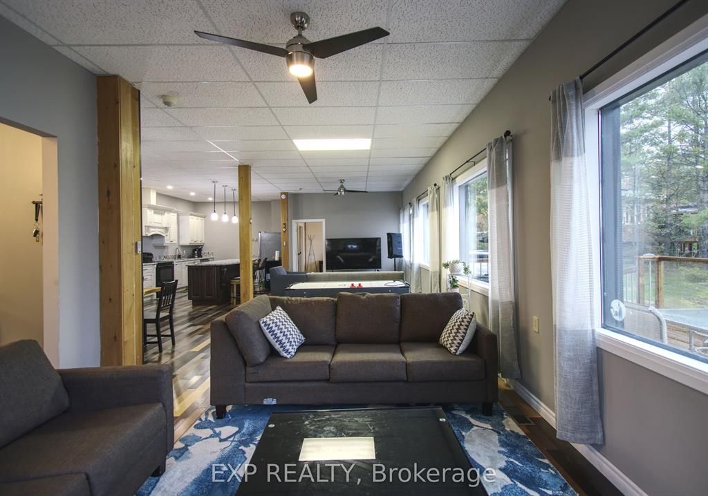Discover the iconic gallery and cottage on the lake in buckhorn, a property steeped in history and reimagined for modern living. The gallery offers a 4-season, 3,000 sq. Ft. Living space that has been newly renovated for comfort and flexibility. With 6 bedrooms, 3 bathrooms, a modern kitchen, laundry, and a spacious living room, there is plenty of room for family and guests. Outdoors, a large deck and expansive patio showcase breathtaking views of lower buckhorn lake, with a gentle slope leading down to the waters edge and a brand-new dock. Above, the upper gallery provides over 12,000 sq. Ft. Of additional space an inspiring canvas to bring your dream project to life. The cottage offers a 4-season, 5,000 sq. Ft. Waterfront residence designed for both relaxation and entertaining. With 6+ bedrooms, and a thoughtful layout, the home boasts a grand front foyer, a spacious kitchen, and a large entertainment room with wet bar. Year-round enjoyment continues in the sunroom with built-in hot tub, or from the covered porch with panoramic lake views. Currently rented out through airbnb as a short-term rental at $900++ per night, the cottage presents both lifestyle and income potential. Set in a private, natural setting with direct access to the trent-severn waterway, this property is a rare and exceptional opportunity to own a piece of kawartha lakes history while enjoying all the comforts of modern waterfront living. The two buildings are in the final stages of severance. The option to purchase them separately is available; however, any such offer must be made conditional upon the completion of the severance. Severance has been approved. Waiting on final paperwork.