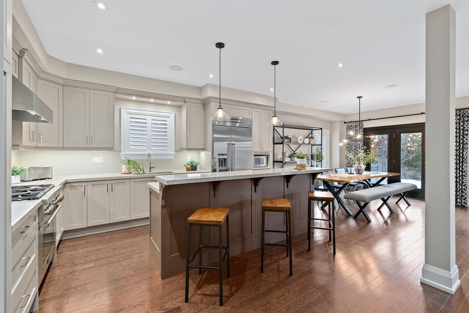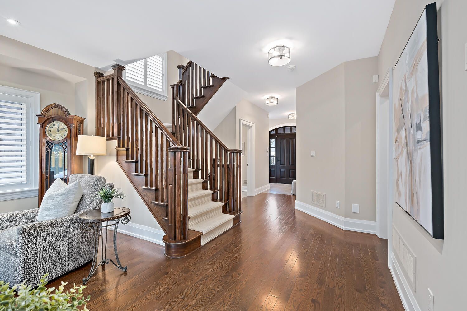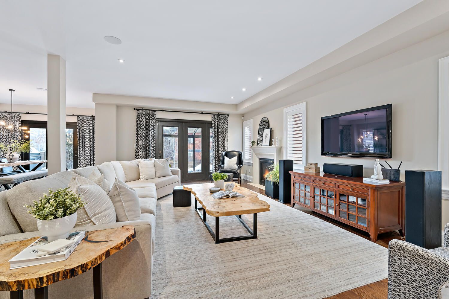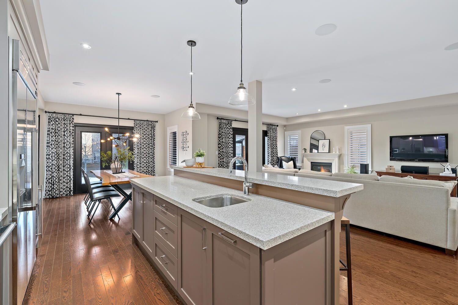 Welcome to this exceptional custom residence by double oak, offering over 4,000 sq. Ft. Of beautifully finished living space designed for families who value craftsmanship, elegance, and thoughtful design. Striking curb appeal showcases a refined blend of brick, stone, and stucco, complemented by custom curbs and walkways. Situated on a rare 145' deep lot, the home offers a private backyard retreat with a large bi-level deck and custom awning - ideal for both entertaining and quiet relaxation. A mahogany custom front door opens to a grand foyer and bright open-concept main floor with 9' ceilings, hardwood flooring, california shutters, and clean architectural lines free of bulkheads. The chef-inspired kitchen features professional-grade thermador appliances, caesarstone countertops, extensive custom cabinetry, and an impressive 8' island with prep sink and breakfast bar. The kitchen flows seamlessly into the spacious dining and living areas, highlighted by a gas fireplace with custom mantle and two garden door walkouts to the backyard. Upstairs offers four generously sized bedrooms and three well-appointed bathrooms. The primary suite overlooks the backyard and includes a walk-in closet and a luxurious five-piece ensuite with an 8. 5' double vanity, caesarstone counters, oversized glass shower, and additional storage. A jack-and-jill five-piece bath and separate four-piece bath provide comfort and privacy for family and guests. The finished basement expands the living space with a large recreation room, two-piece powder room, substantial storage, and a versatile 25' room ideal as a fifth bedroom, office, or gym. Main floor laundry with custom cabinetry and direct access to the double car garage completes this refined and thoughtfully designed family home.