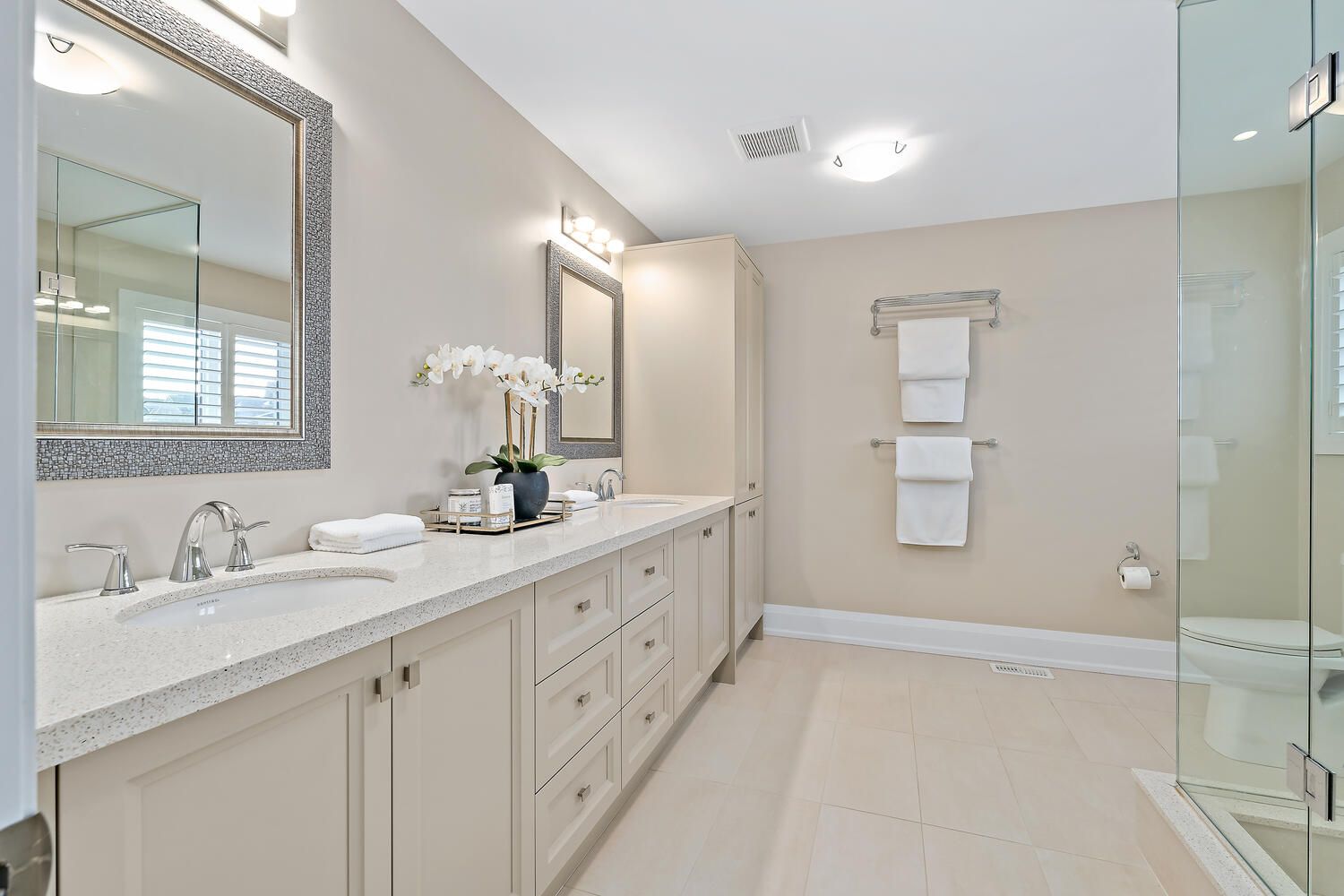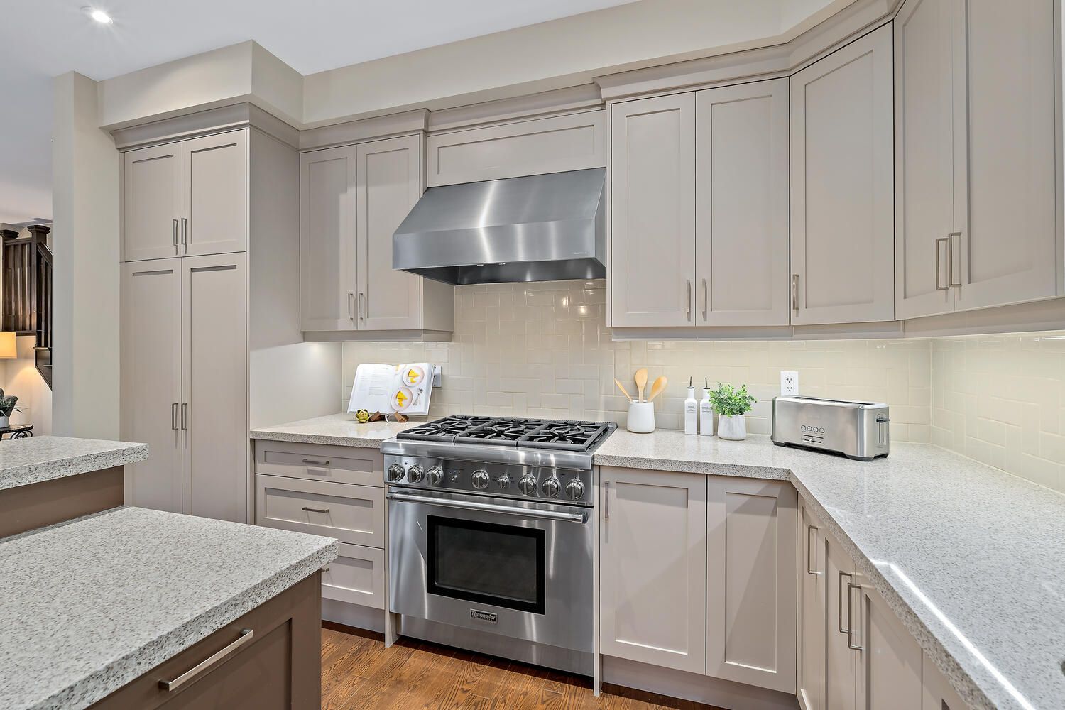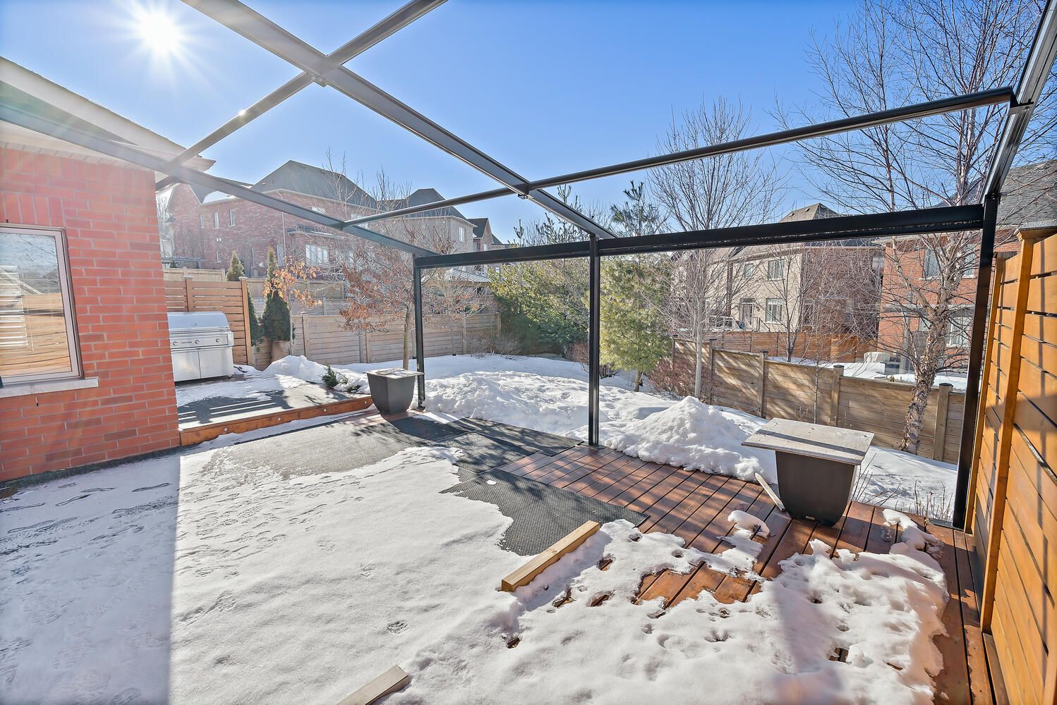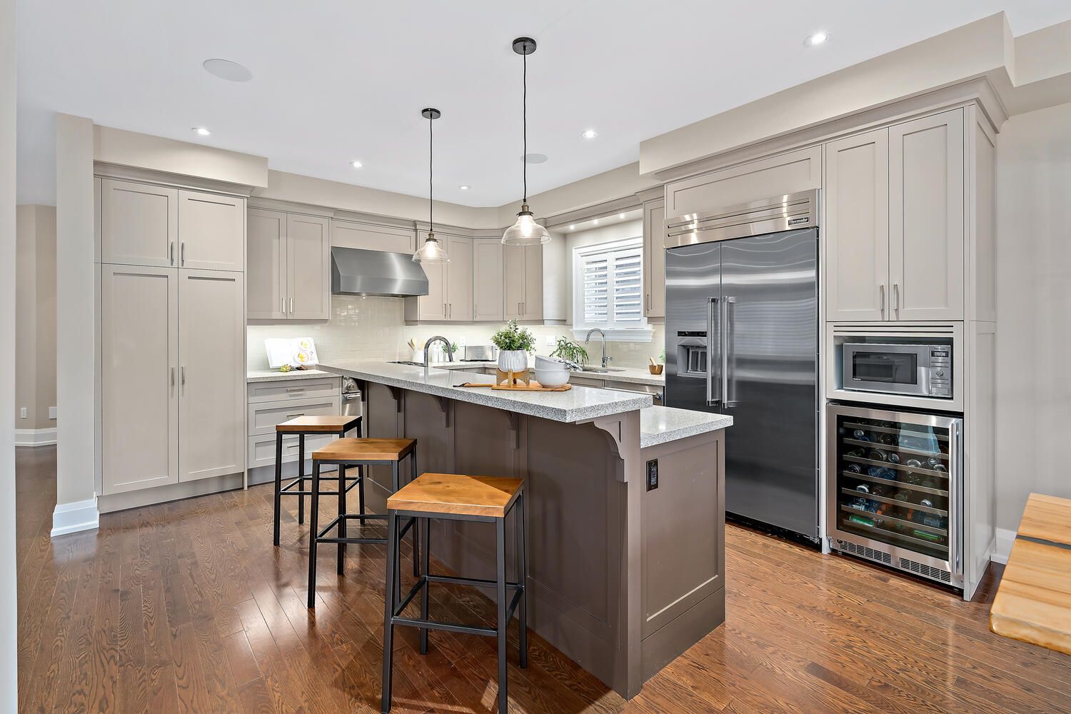 Welcome to this exceptional custom residence by double oak, offering over 4,000 sq. Ft. Of beautifully finished living space designed for families who value craftsmanship, elegance, and thoughtful design. Striking curb appeal showcases a refined blend of brick, stone, and stucco, complemented by custom curbs and walkways. Situated on a rare 145' deep lot, the home offers a private backyard retreat with a large bi-level deck and custom awning - ideal for both entertaining and quiet relaxation. A mahogany custom front door opens to a grand foyer and bright open-concept main floor with 9' ceilings, hardwood flooring, california shutters, and clean architectural lines free of bulkheads. The chef-inspired kitchen features professional-grade thermador appliances, caesarstone countertops, extensive custom cabinetry, and an impressive 8' island with prep sink and breakfast bar. The kitchen flows seamlessly into the spacious dining and living areas, highlighted by a gas fireplace with custom mantle and two garden door walkouts to the backyard. Upstairs offers four generously sized bedrooms and three well-appointed bathrooms. The primary suite overlooks the backyard and includes a walk-in closet and a luxurious five-piece ensuite with an 8. 5' double vanity, caesarstone counters, oversized glass shower, and additional storage. A jack-and-jill five-piece bath and separate four-piece bath provide comfort and privacy for family and guests. The finished basement expands the living space with a large recreation room, two-piece powder room, substantial storage, and a versatile 25' room ideal as a fifth bedroom, office, or gym. Main floor laundry with custom cabinetry and direct access to the double car garage completes this refined and thoughtfully designed family home.