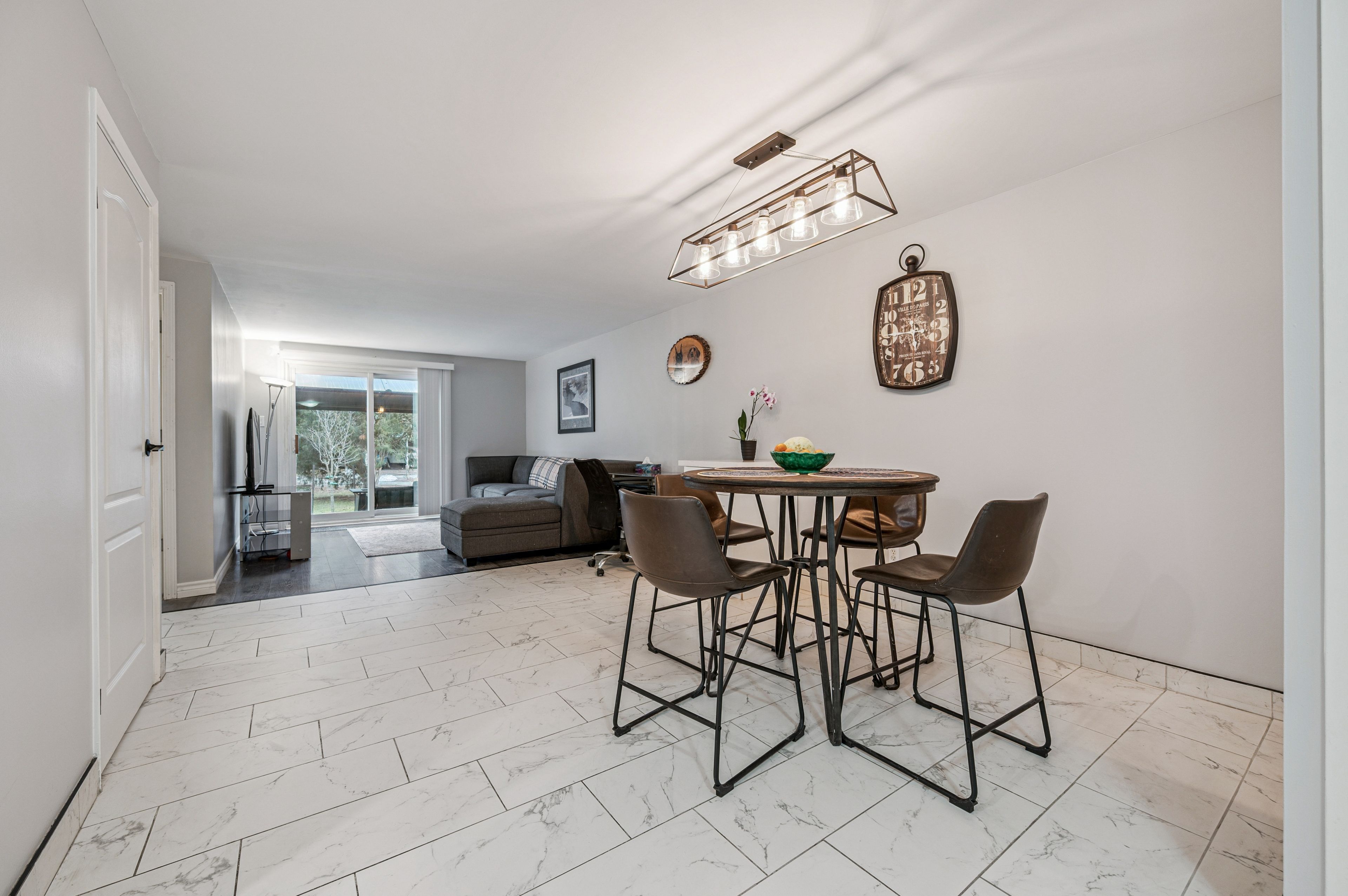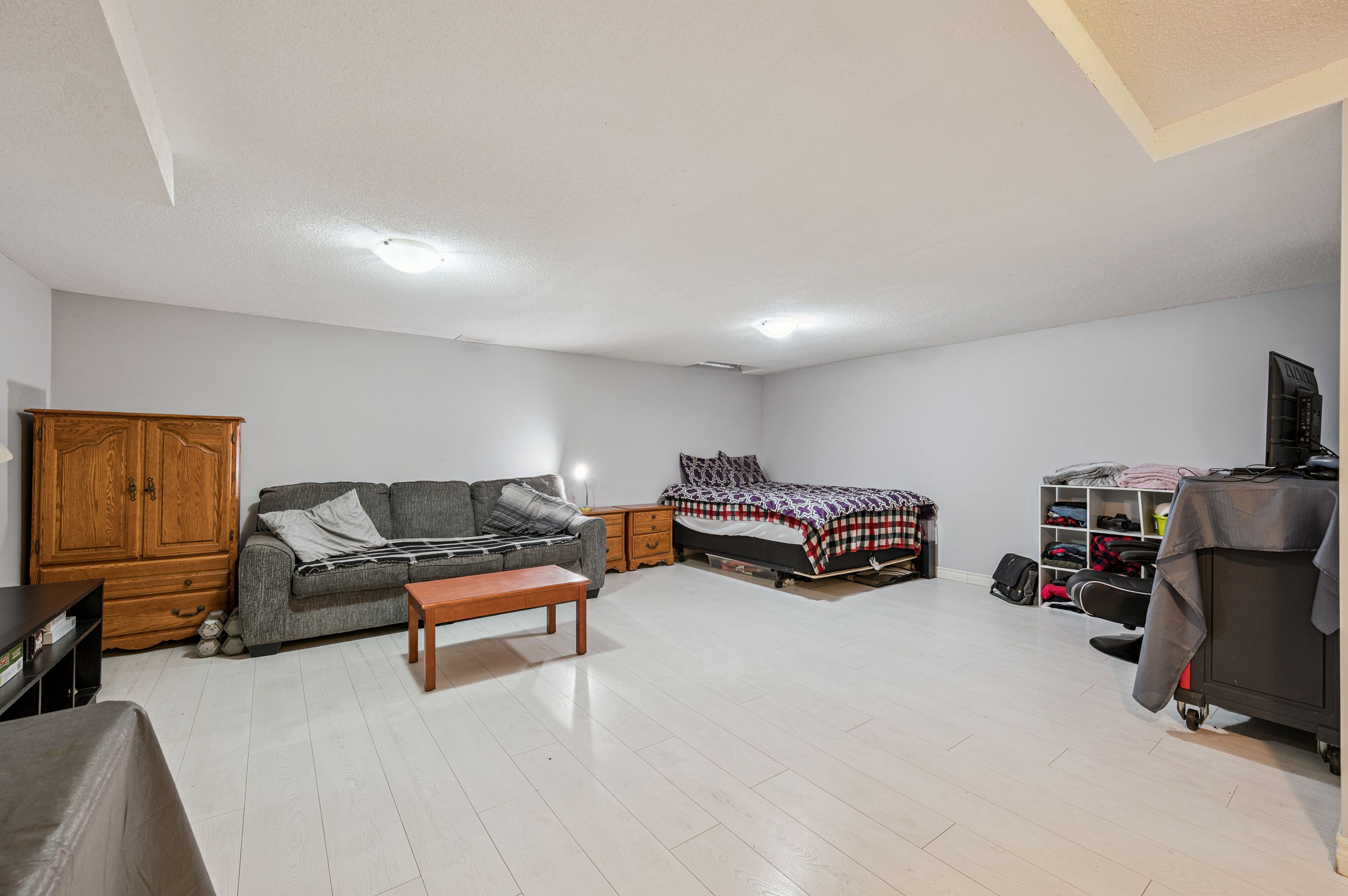• Finished basement with rec room, laundry area, and additional bathroom.