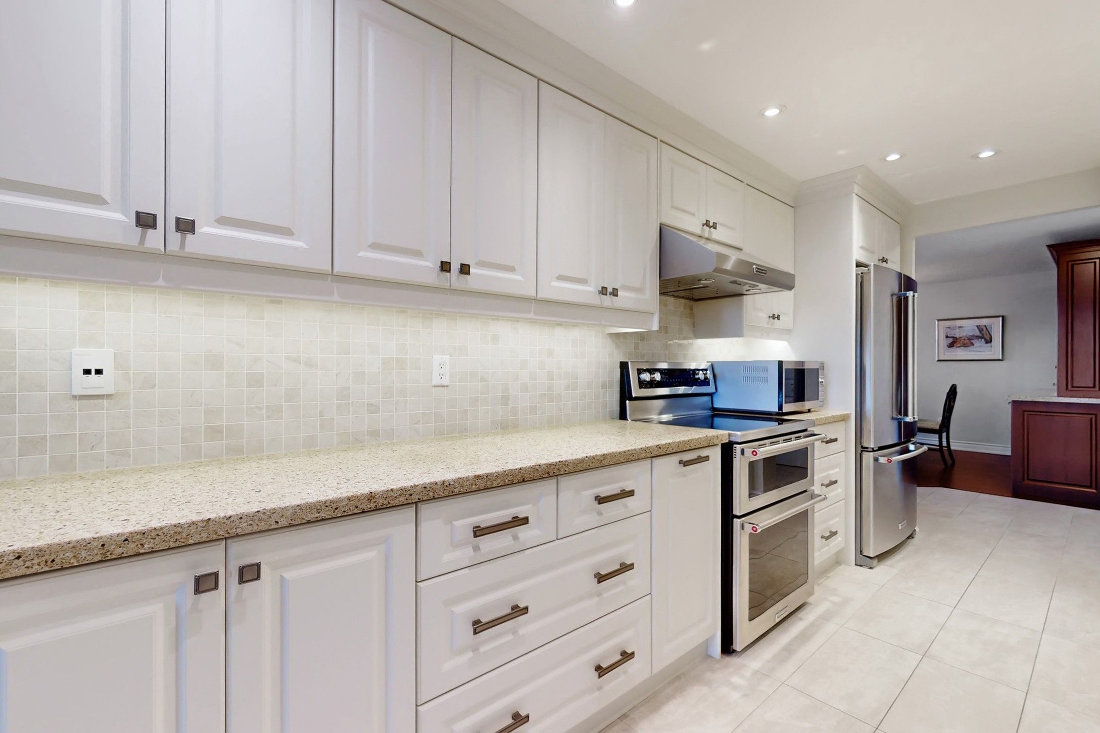 • Gourmet kitchen equipped with stainless steel appliances and quartz countertops.