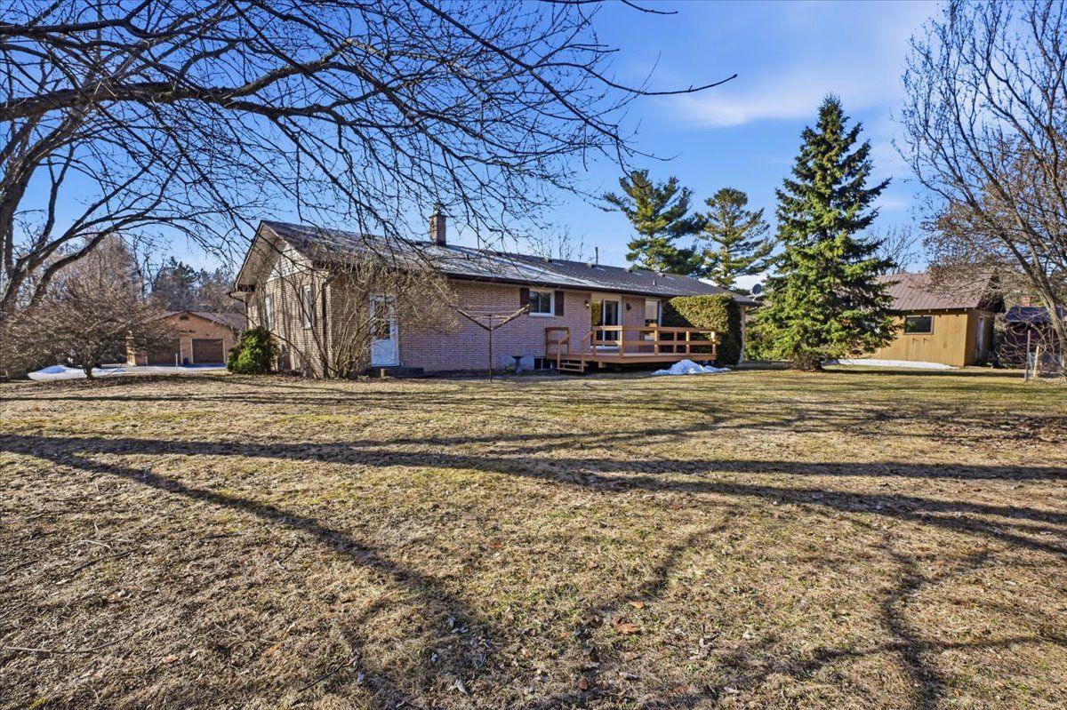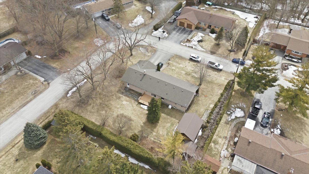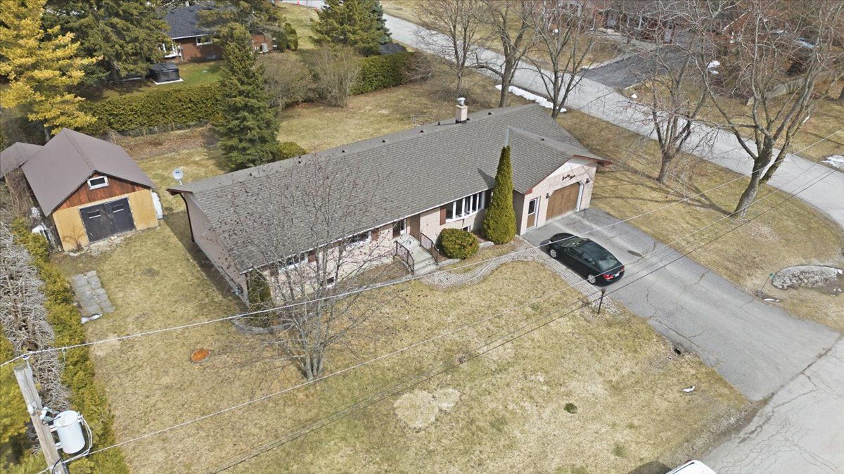 Welcome to easy, comfortable living in this charming ranch-style brick bungalow, perfectly set on a mature corner lot! Enjoy true main floor living at its best, featuring a bright and inviting living room with a beautiful bay window overlooking the front yard. The spacious kitchen is a standout, offering an abundance of cupboard space, a stylish backsplash, a chef's island, and plenty of counter space for cooking and entertaining. The dining room walks out to a deck, making indoor-outdoor living a breeze. The main level also includes three good sized bedrooms, a full bathroom with a walk-in shower and a convenient 2-piece powder room. Downstairs, you'll find even more room to spread out with two large rec rooms, one highlighted by a cozy gas fireplace and brick feature wall. This level also provides a large fourth bedroom, a dedicated utility room, and a substantial storage room to keep your home organized and clutter-free. Stepping outside, the backyard is a private oasis framed by mature trees and lush hedging for ultimate privacy. The outdoor space is equipped with a large deck and two garden sheds for all your tools and hobbies. Parking is never an issue here, as the property features an attached garage and a generous driveway with plenty of room for multiple vehicles. Ideally located just off the 115, this home offers incredible commuter access to both the 401 and 407, keeping you connected to everything you need while enjoying the peace of a established neighborhood.