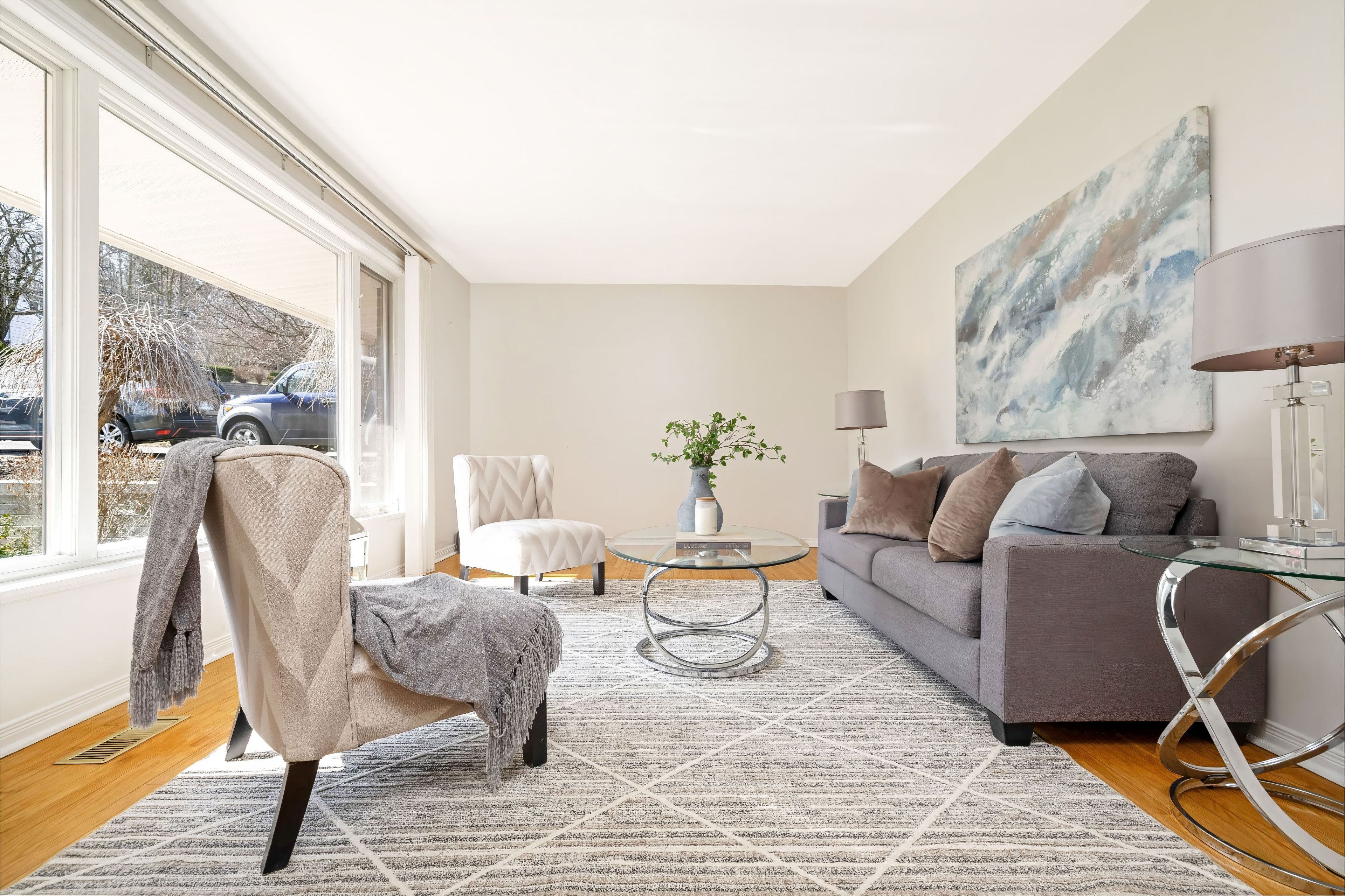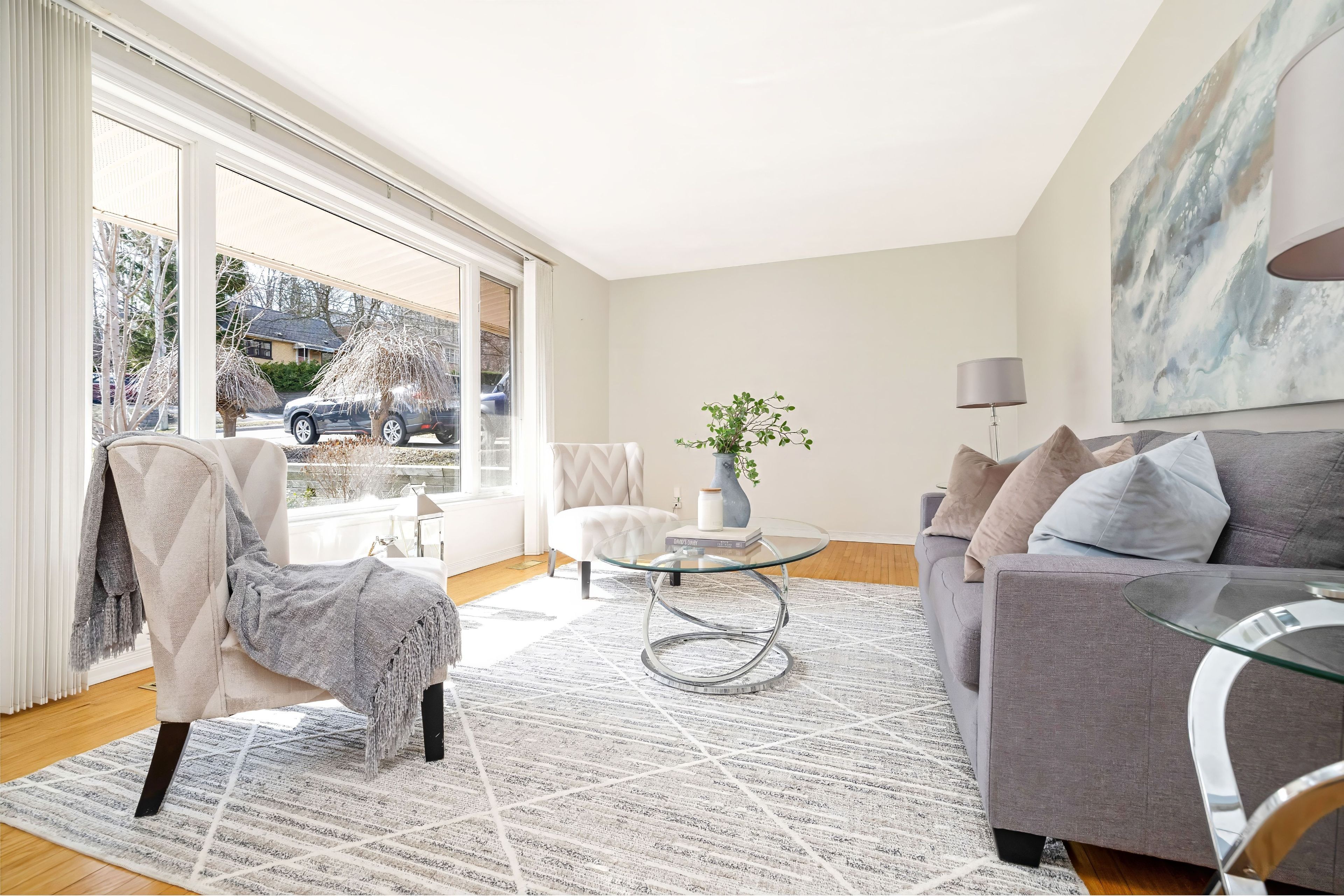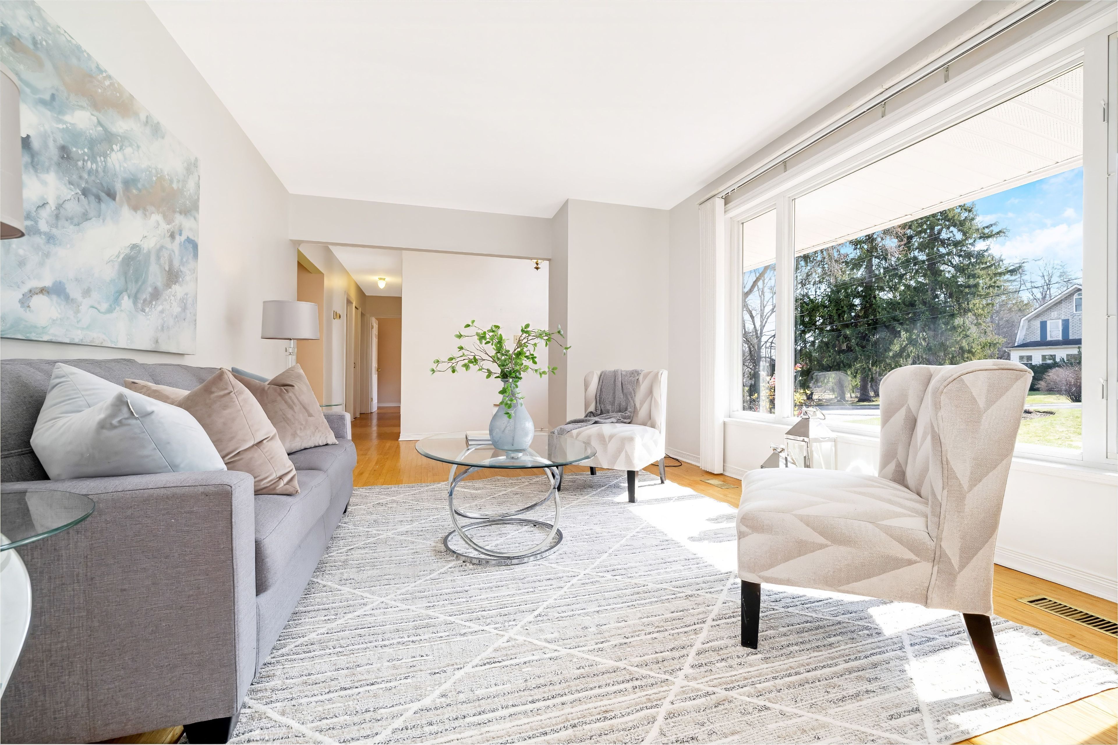• Bright living room and dining area filled with natural light.