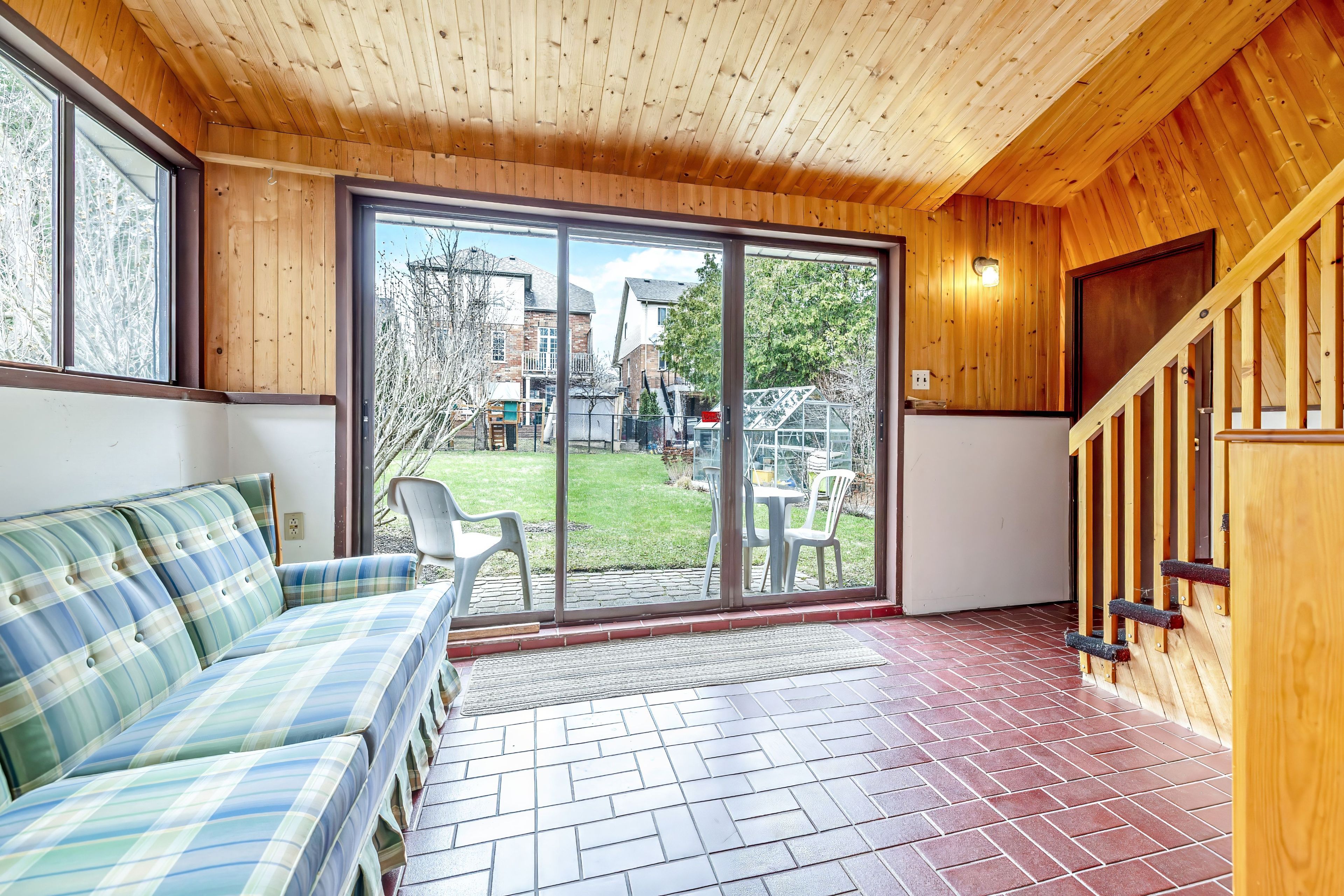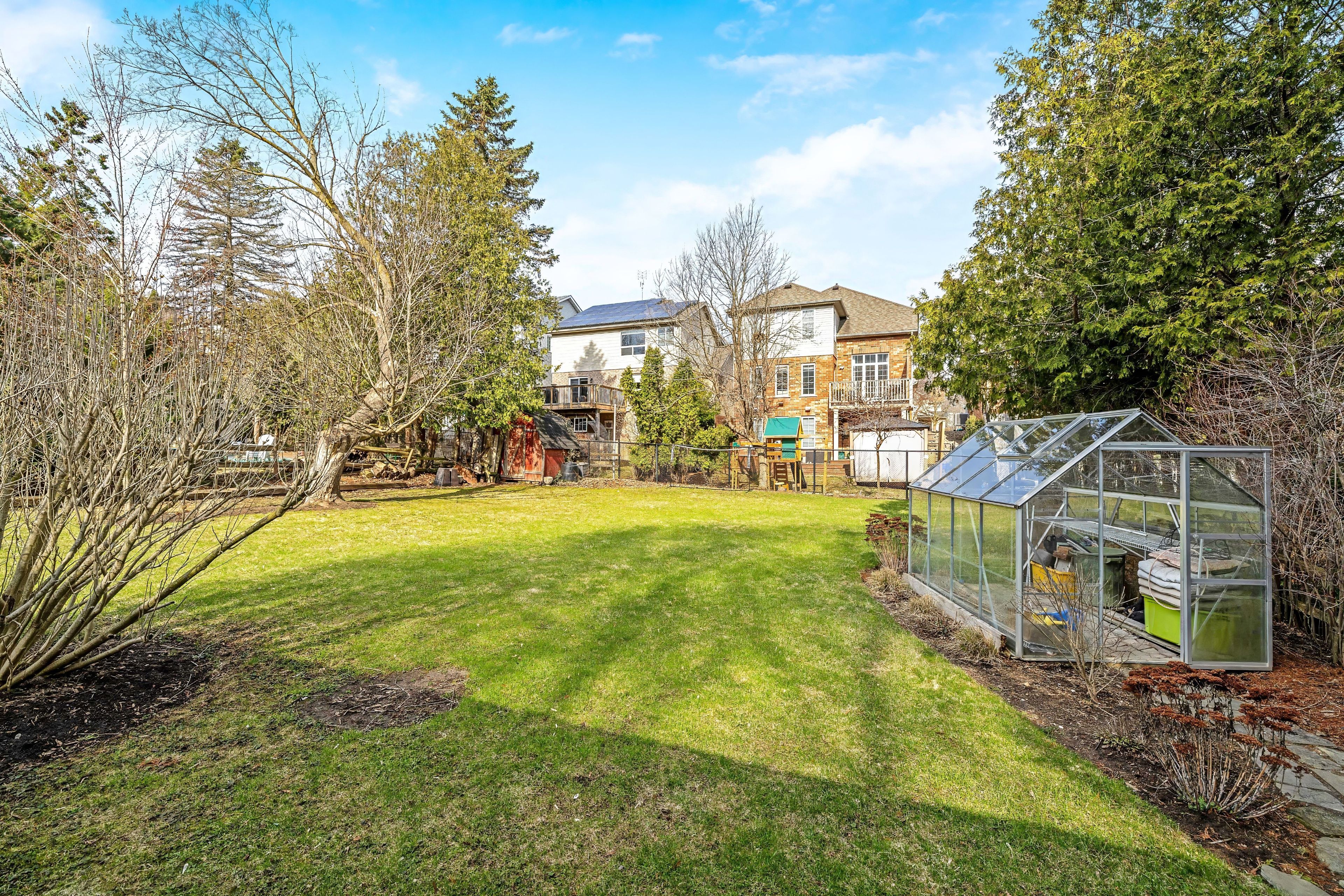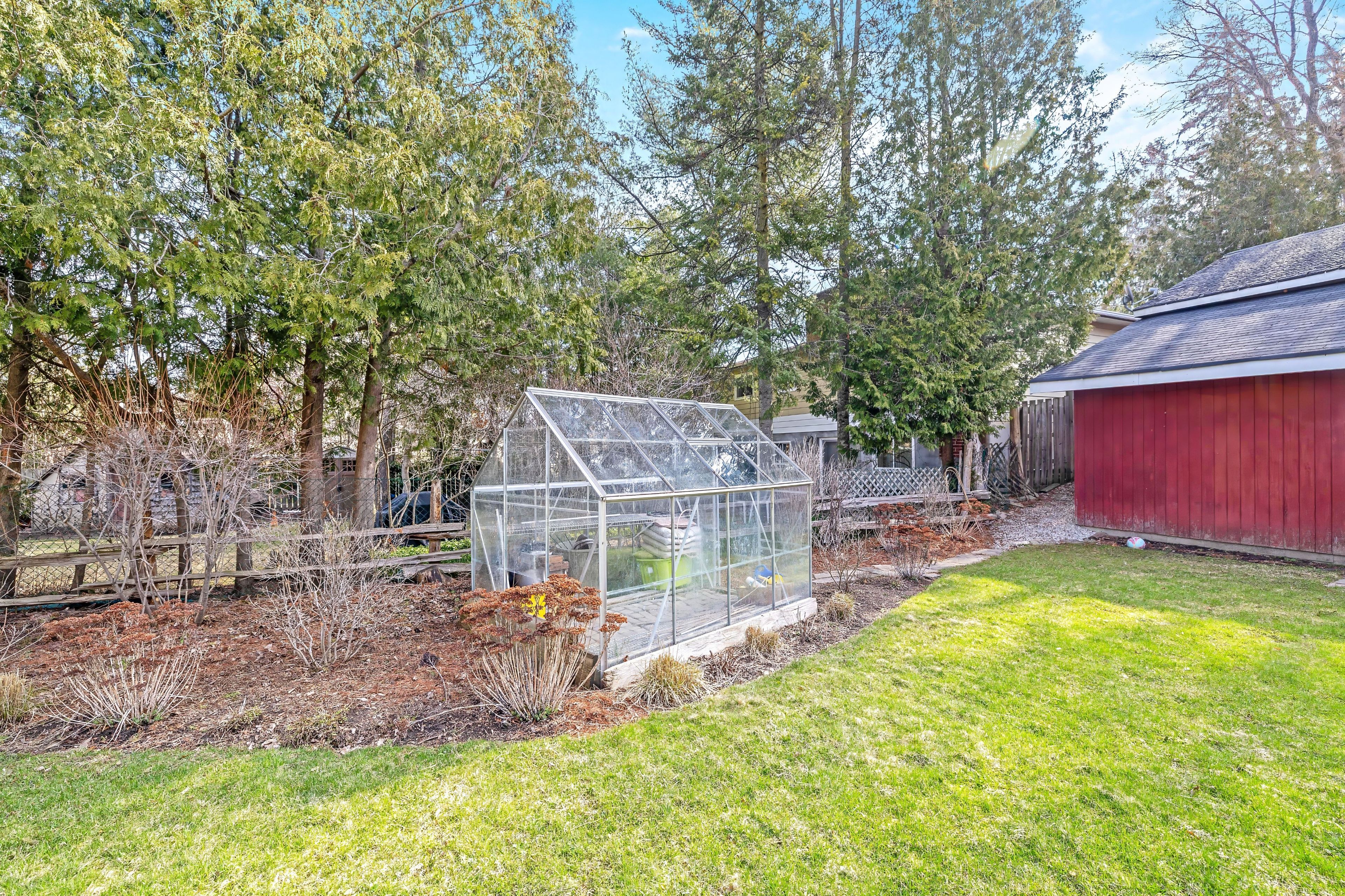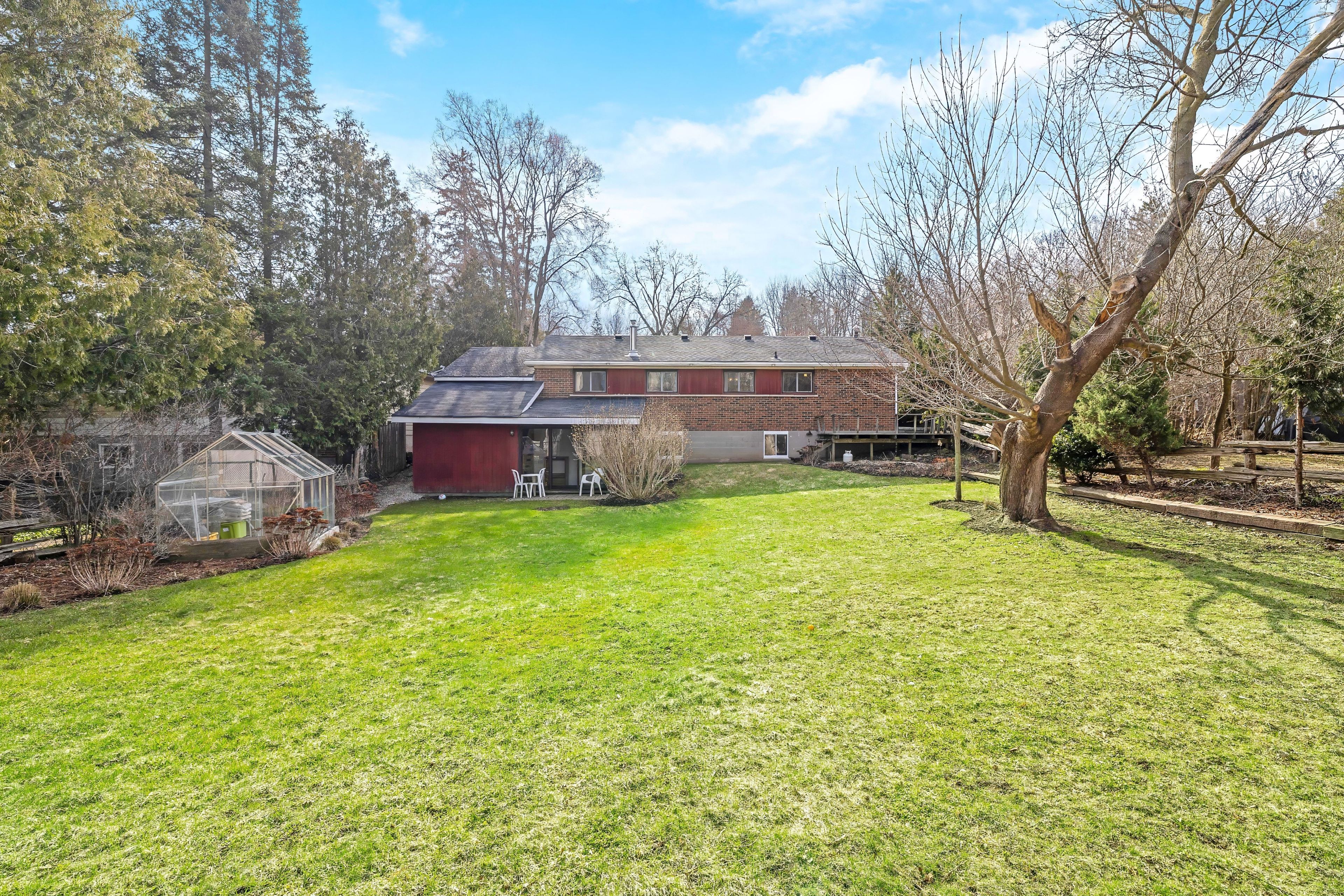 • Beautifully landscaped backyard with deck, patio, and greenhouse.