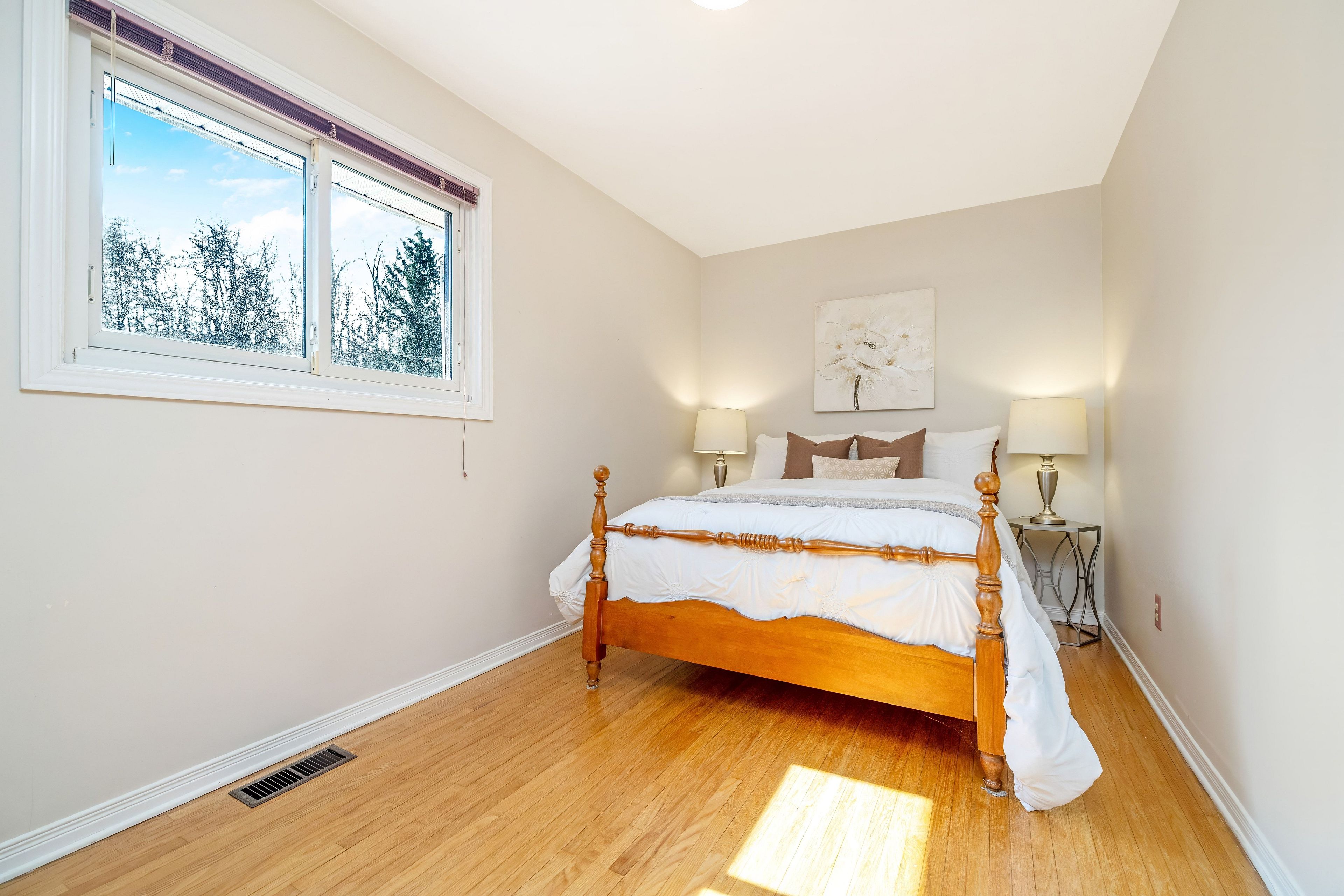 Welcome to this charming and well cared for bungalow offering a functional layout, warm finishes, and a beautifully landscaped backyard retreat. The main level features hardwood flooring throughout the living, dining, and all three bedrooms, creating a seamless and inviting flow that feels both comfortable and cohesive. A bright living room with a large picture window overlooks the front yard, filling the space with natural light, while the dining area offers a peaceful view of the backyard, making it ideal for both everyday meals and hosting family and friends. The eat in kitchen provides great functionality with ample cabinetry, laminate counters, and a convenient side door walk out to the yard for easy access. All three bedrooms are well sized and include closets and hardwood flooring, offering flexibility for families, guests, or a home office setup, with a full 3 piece family bathroom nearby. The lower level offers a mix of finished and unfinished space, adding flexibility to suit a variety of needs. Enjoy a finished rec room with exposed wood beams, a gas fireplace with brick surround, and above grade windows that bring in natural light. A finished 3 piece bathroom and laundry area add everyday convenience, while the unfinished workshop and additional storage space provide room for hobbies or future customization. Step into the bright 3 season sunroom with cedar wood ceilings and large windows, offering a beautiful transition to the outdoors and a space to enjoy year round in every season. The backyard is a true highlight, featuring a wood deck, interlock patio, greenhouse, mature trees, and established gardens, all within a fully fenced setting, ideal for relaxing, gardening, or entertaining. A double wide driveway with parking for four, plus a carport with tandem parking, provides ample space for vehicles and added everyday convenience. A wonderful opportunity to enjoy comfortable living both inside and out in a peaceful setting.